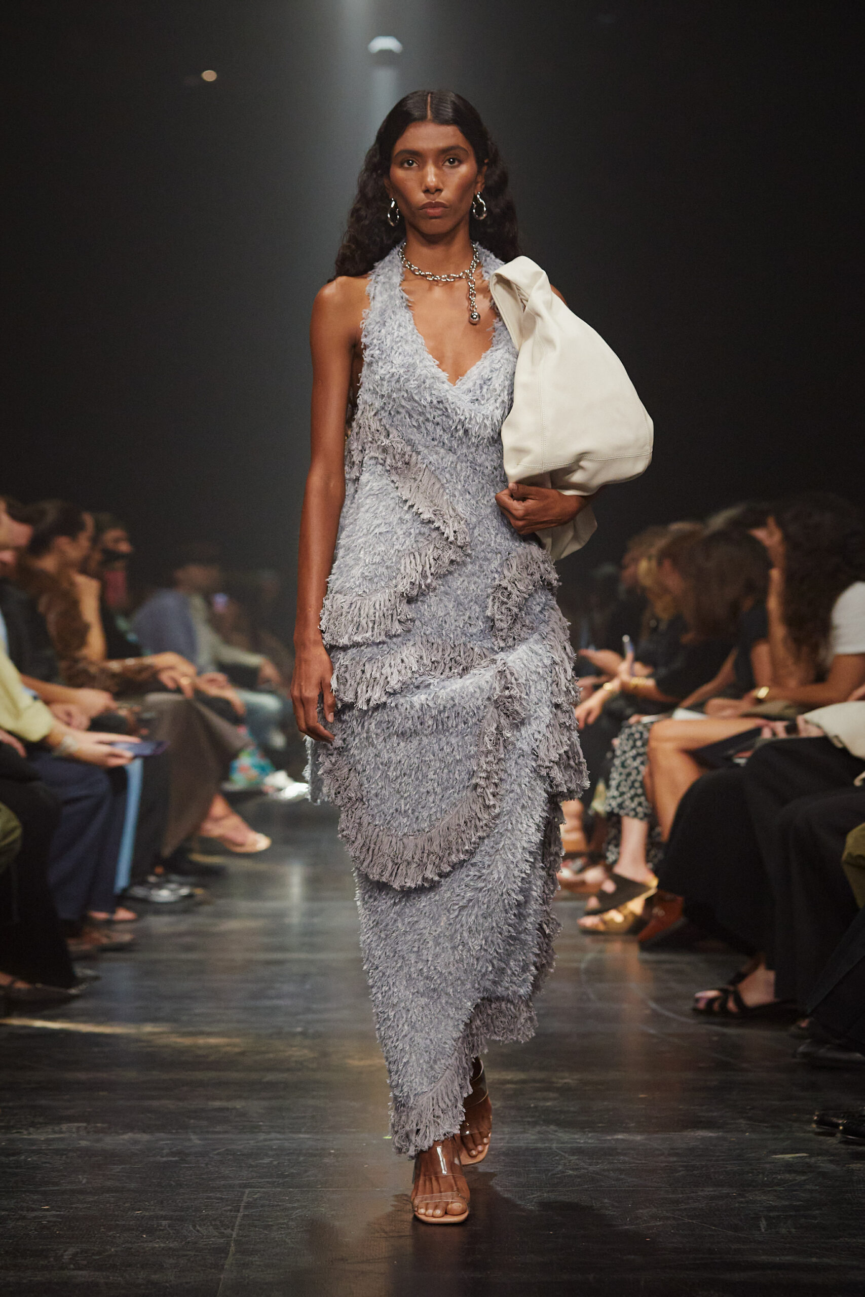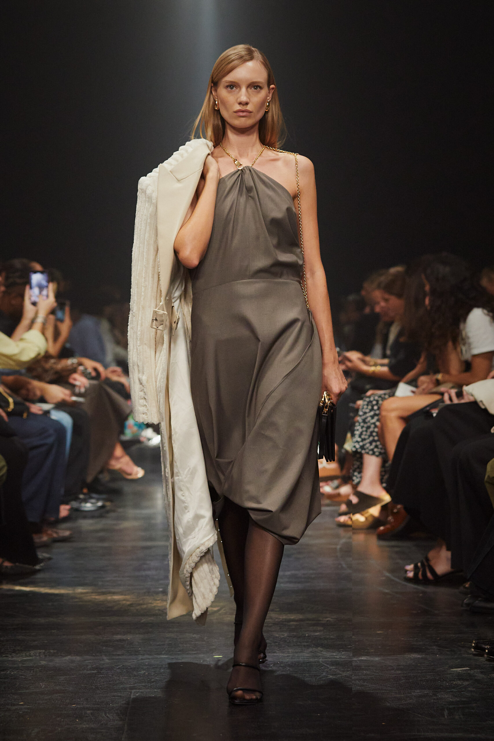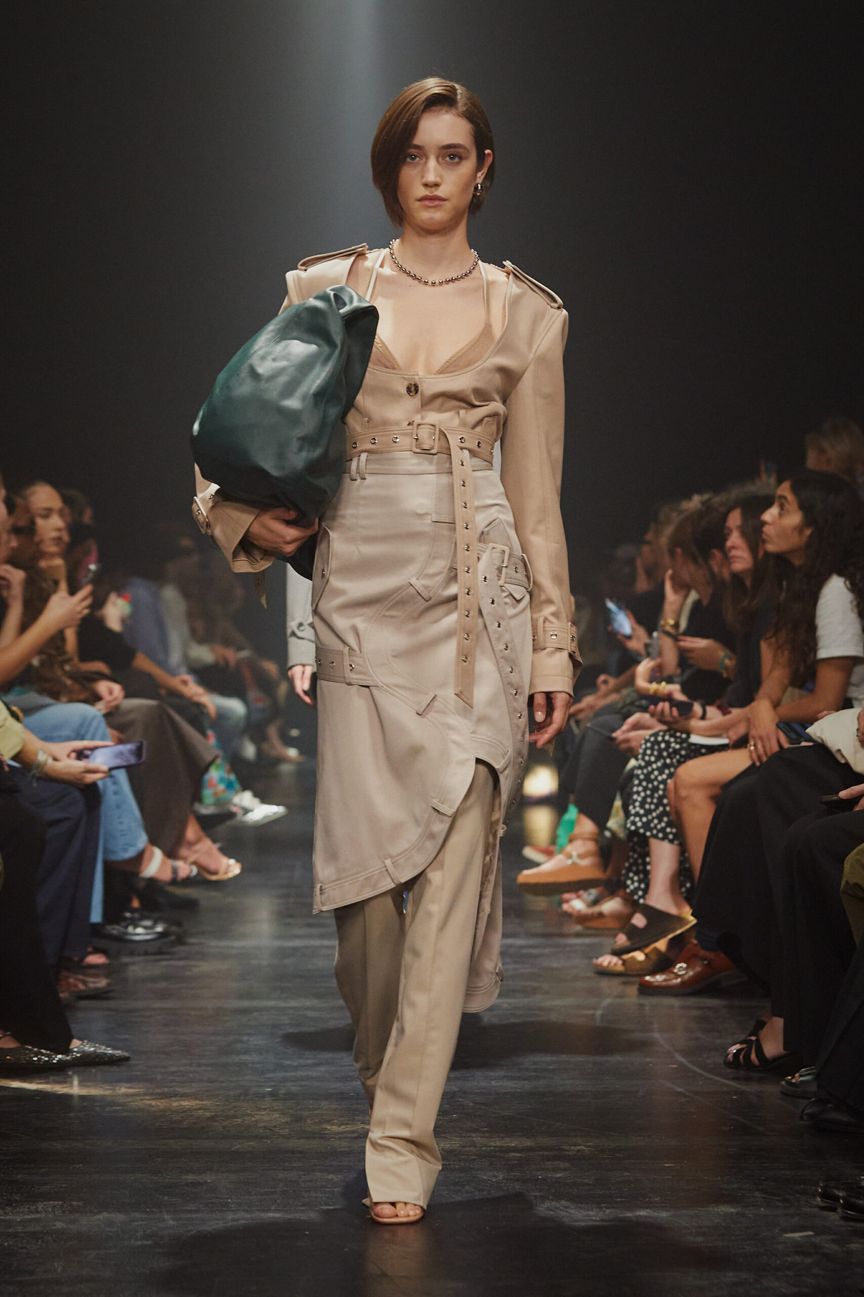 Côté accessoires, on retrouve un ample sac en cuir vintage au toucher doux, rehaussé de dorures et coloris végétaux. Les bijoux s’inspirent d’éléments vintage ou automobiles, avec des finitions chromées évoquant l’univers rétro.