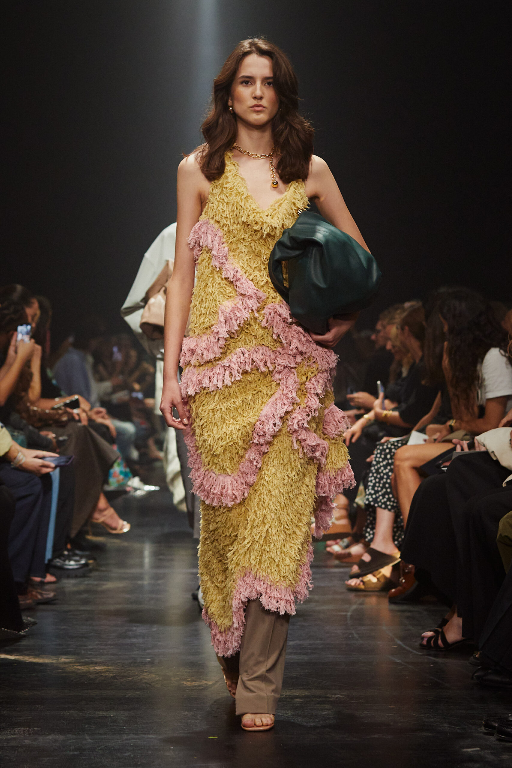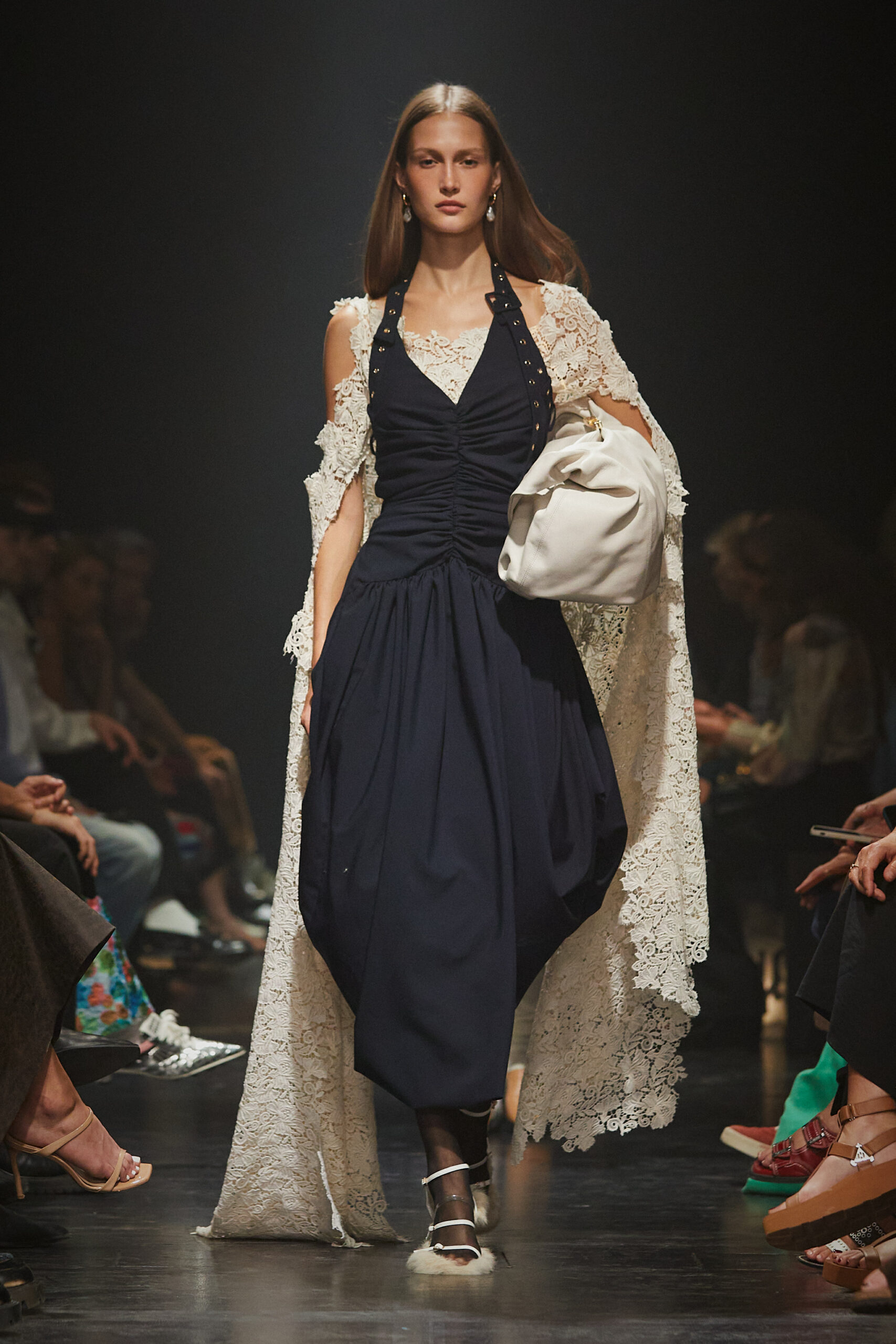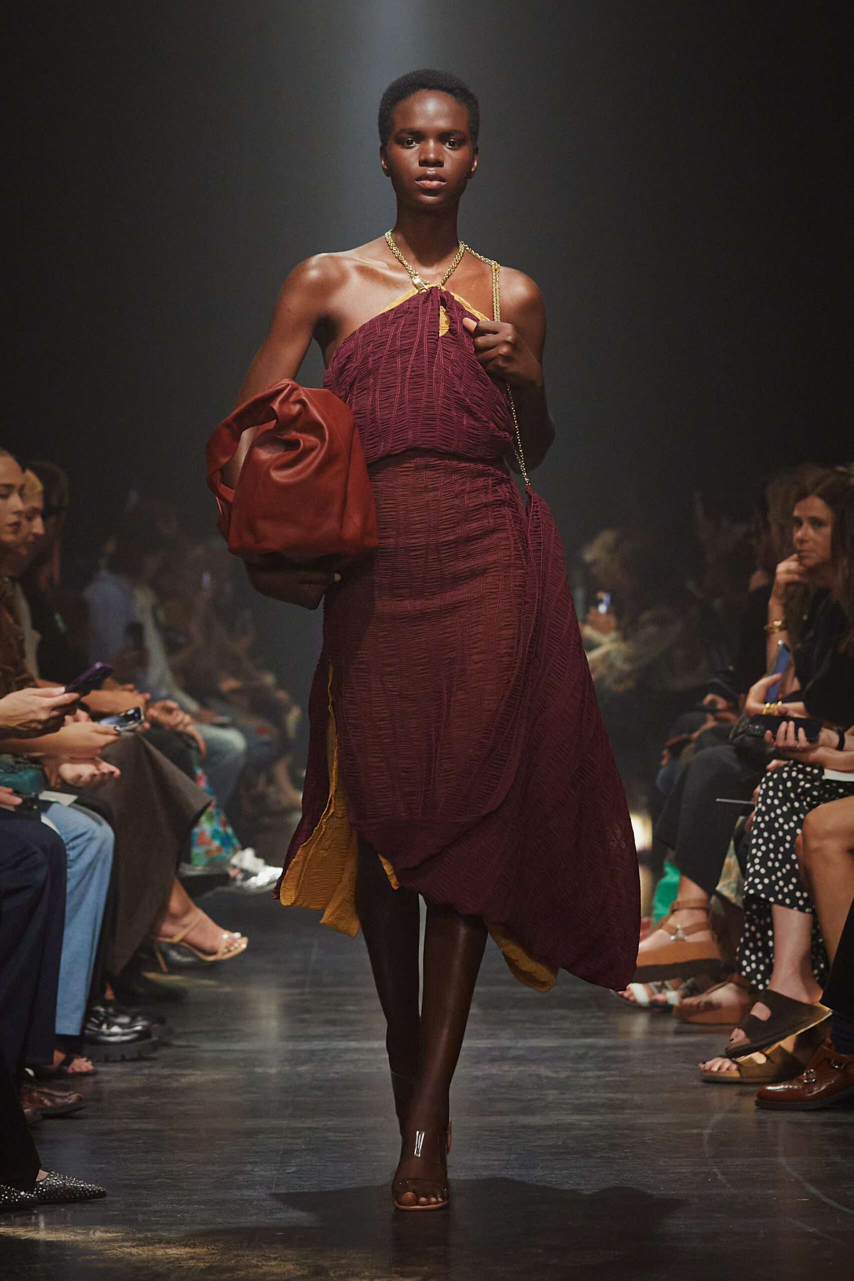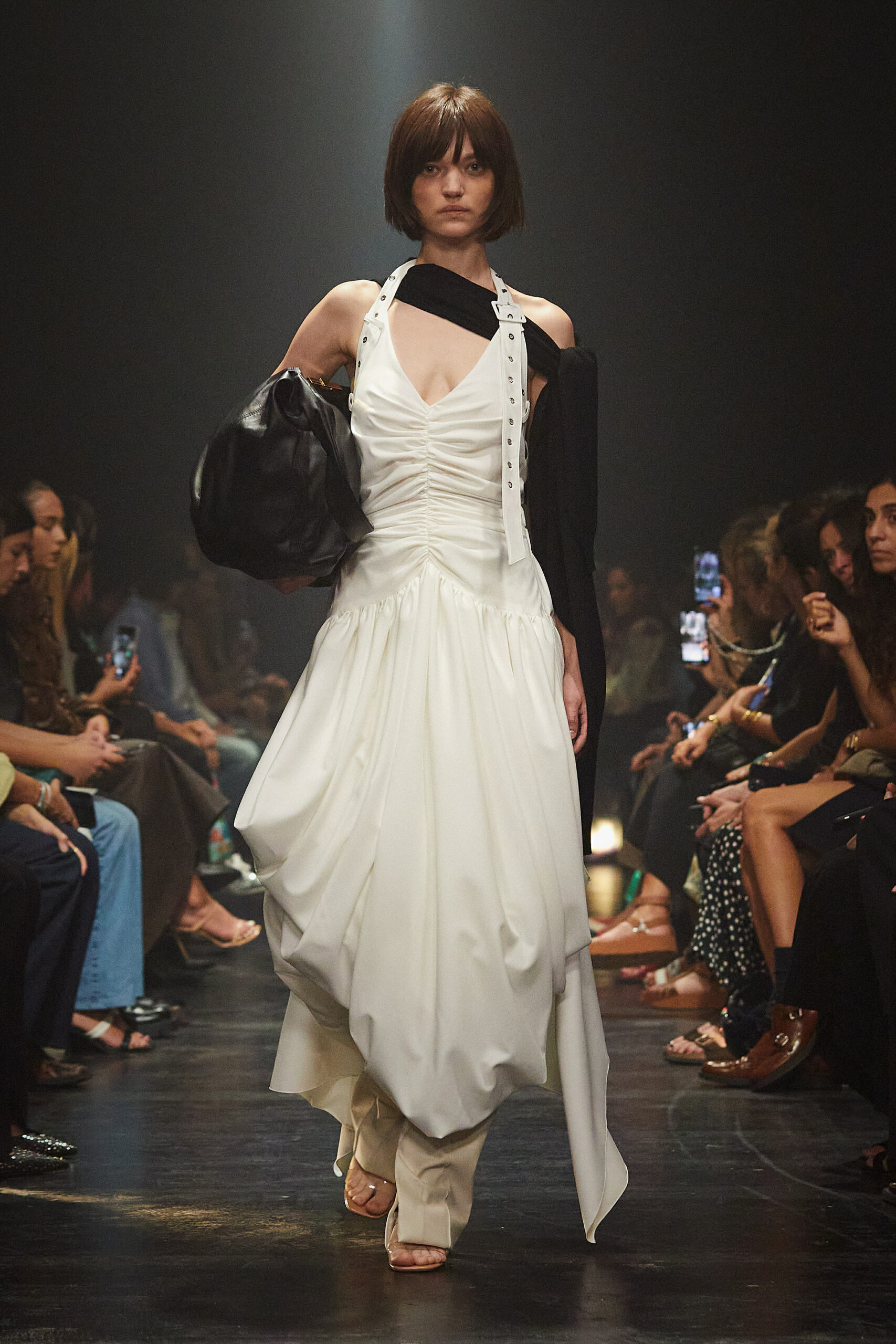 Côté accessoires, on retrouve un ample sac en cuir vintage au toucher doux, rehaussé de dorures et coloris végétaux. Les bijoux s’inspirent d’éléments vintage ou automobiles, avec des finitions chromées évoquant l’univers rétro.