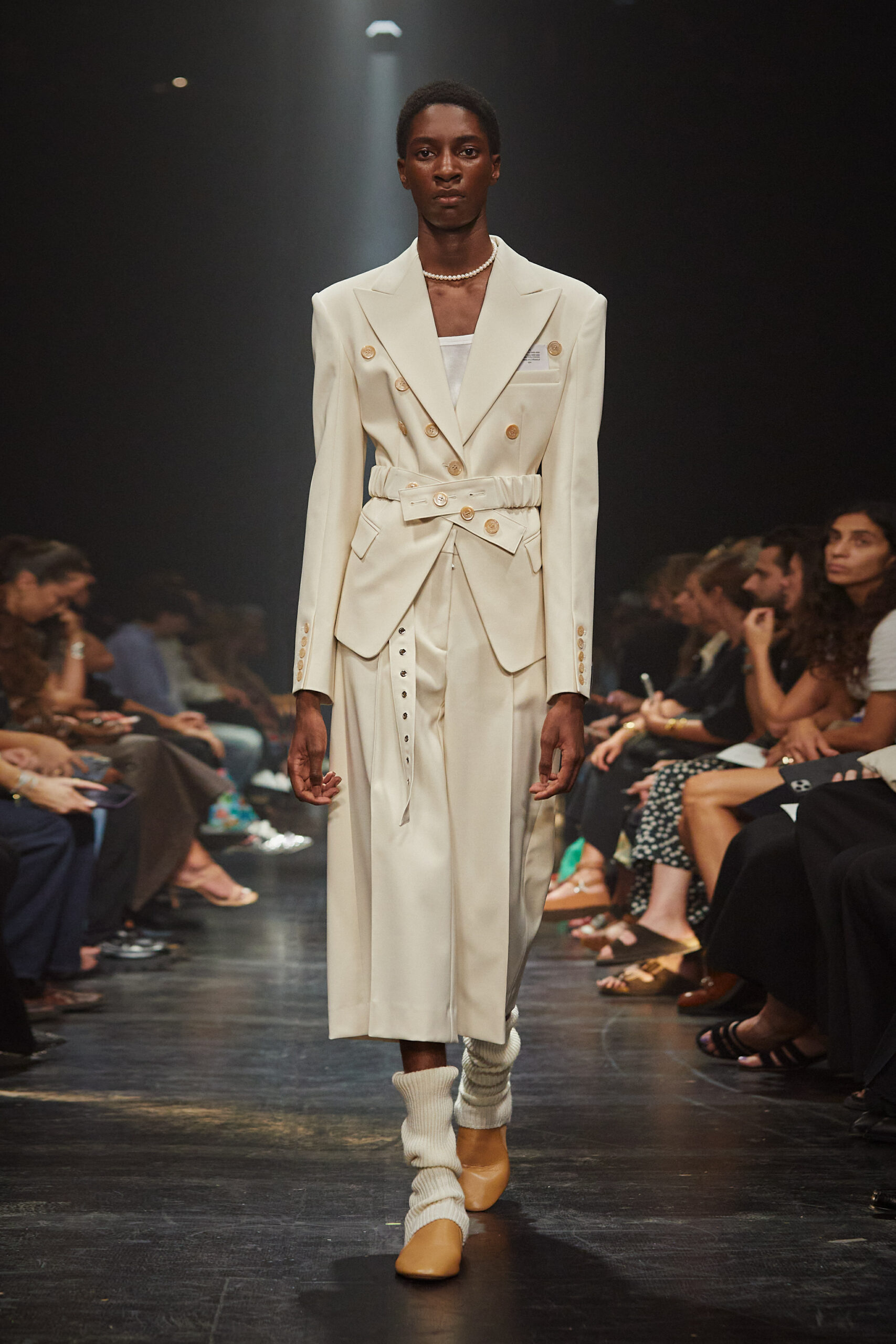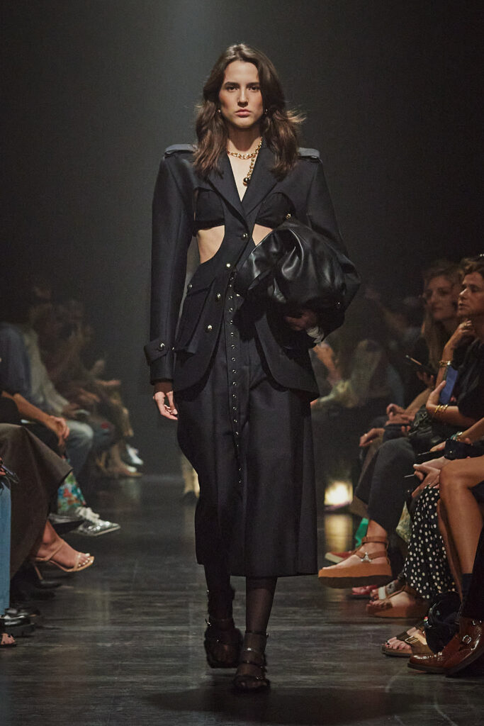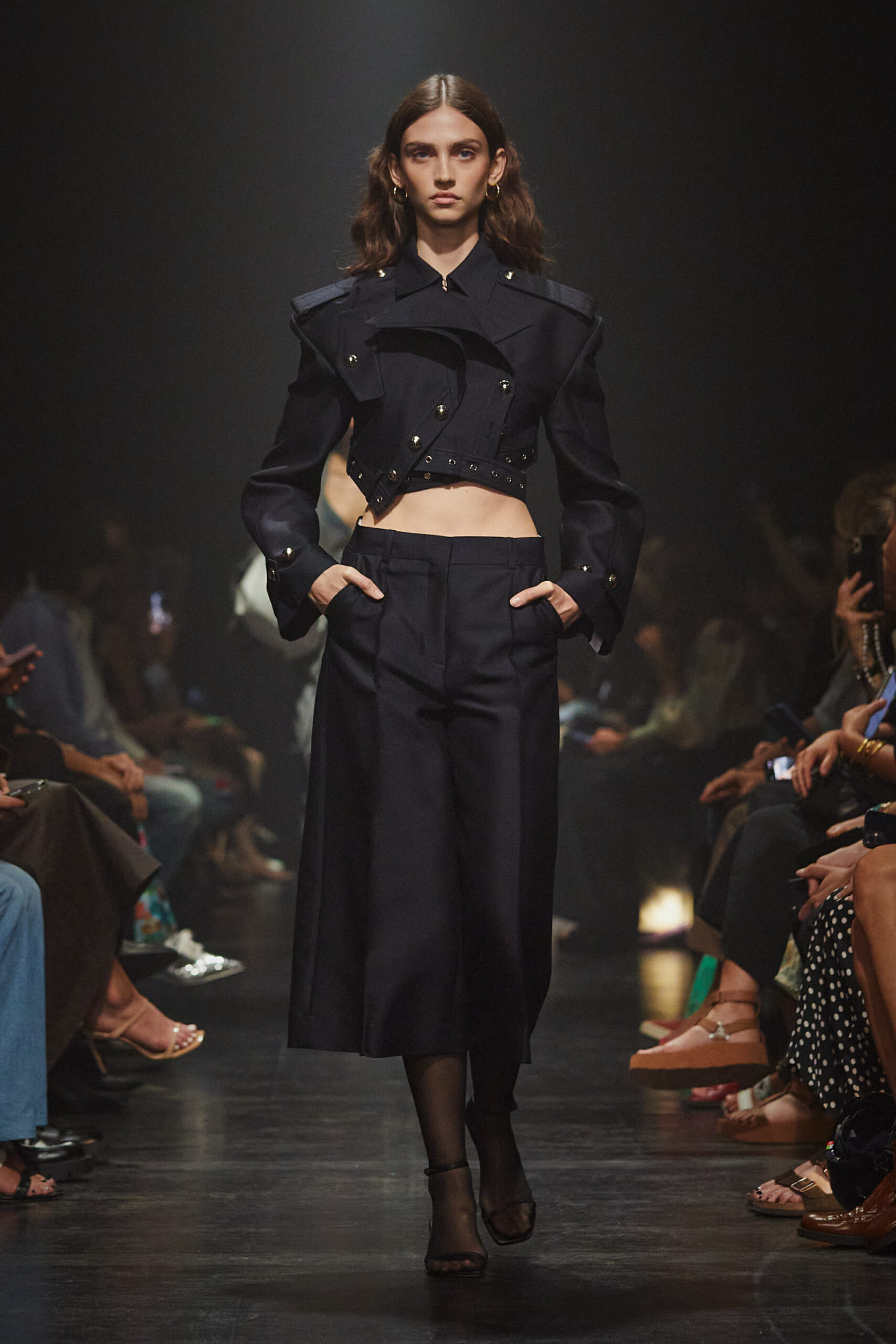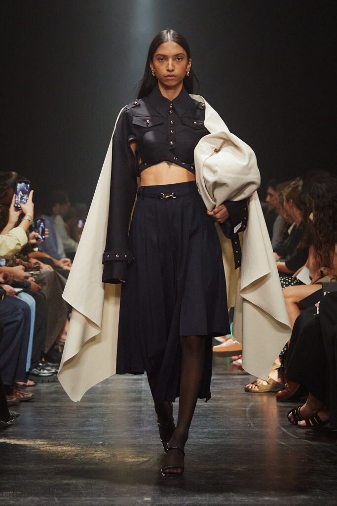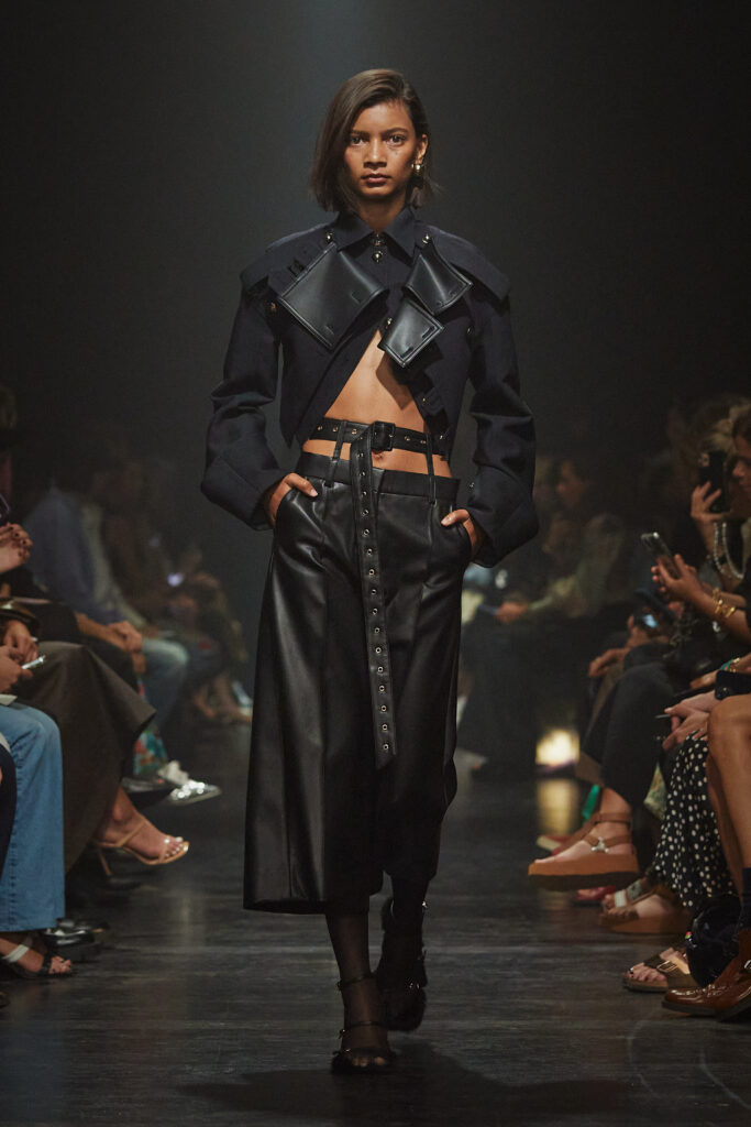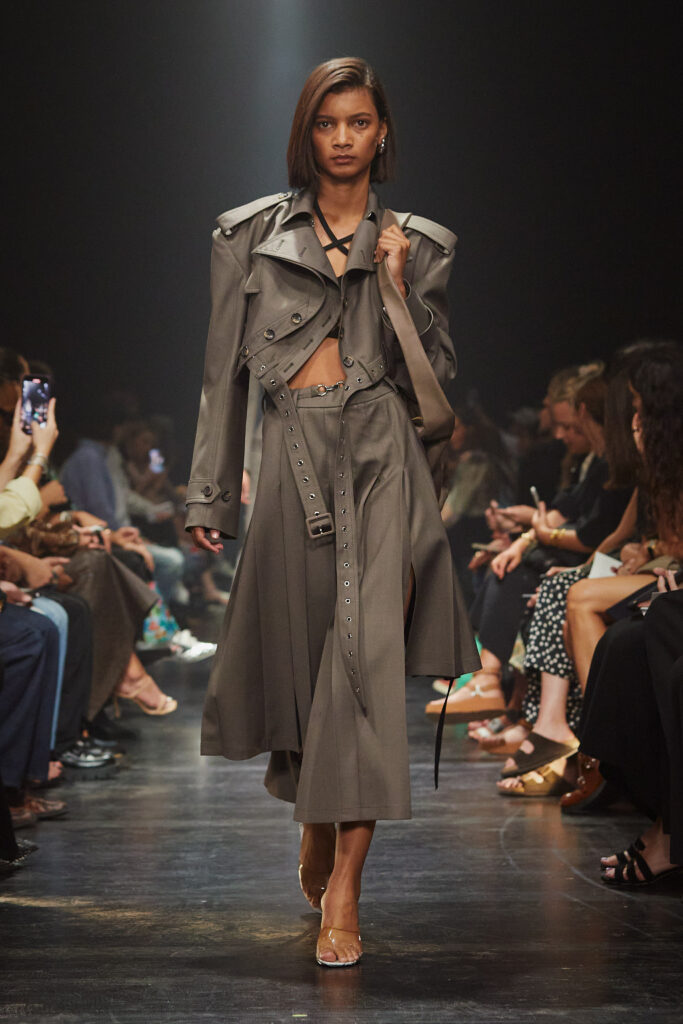 Le fil rouge de cette collection réside dans les techniques de déconstruction, appliquées aux pièces incontournables d’une garde-robe complète. Le tailleur militaire se fait plus fluide pour épouser les courbes du corps. Les pantalons et jupes-culottes jouent la carte du tombé impeccable pour une silhouette racée.