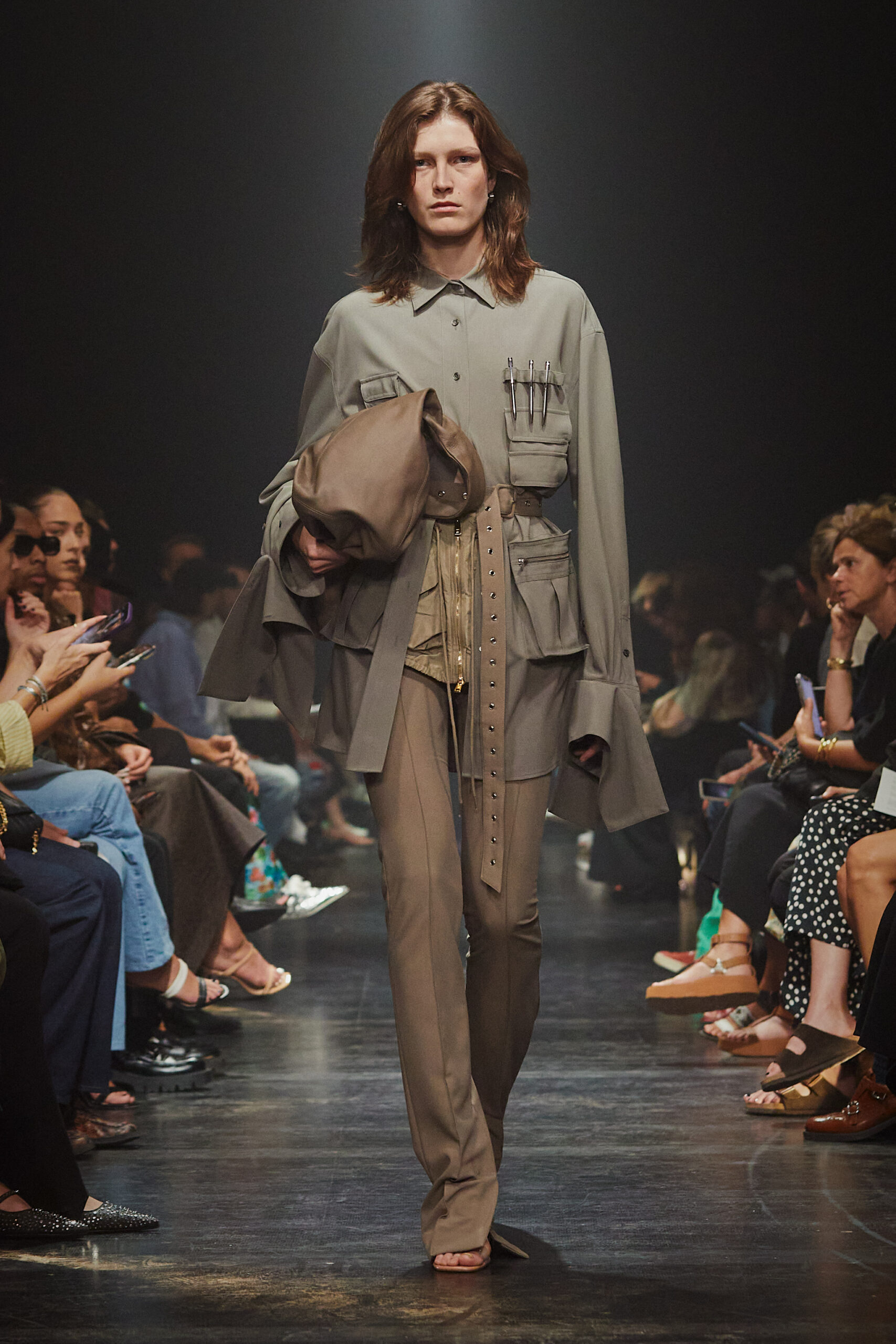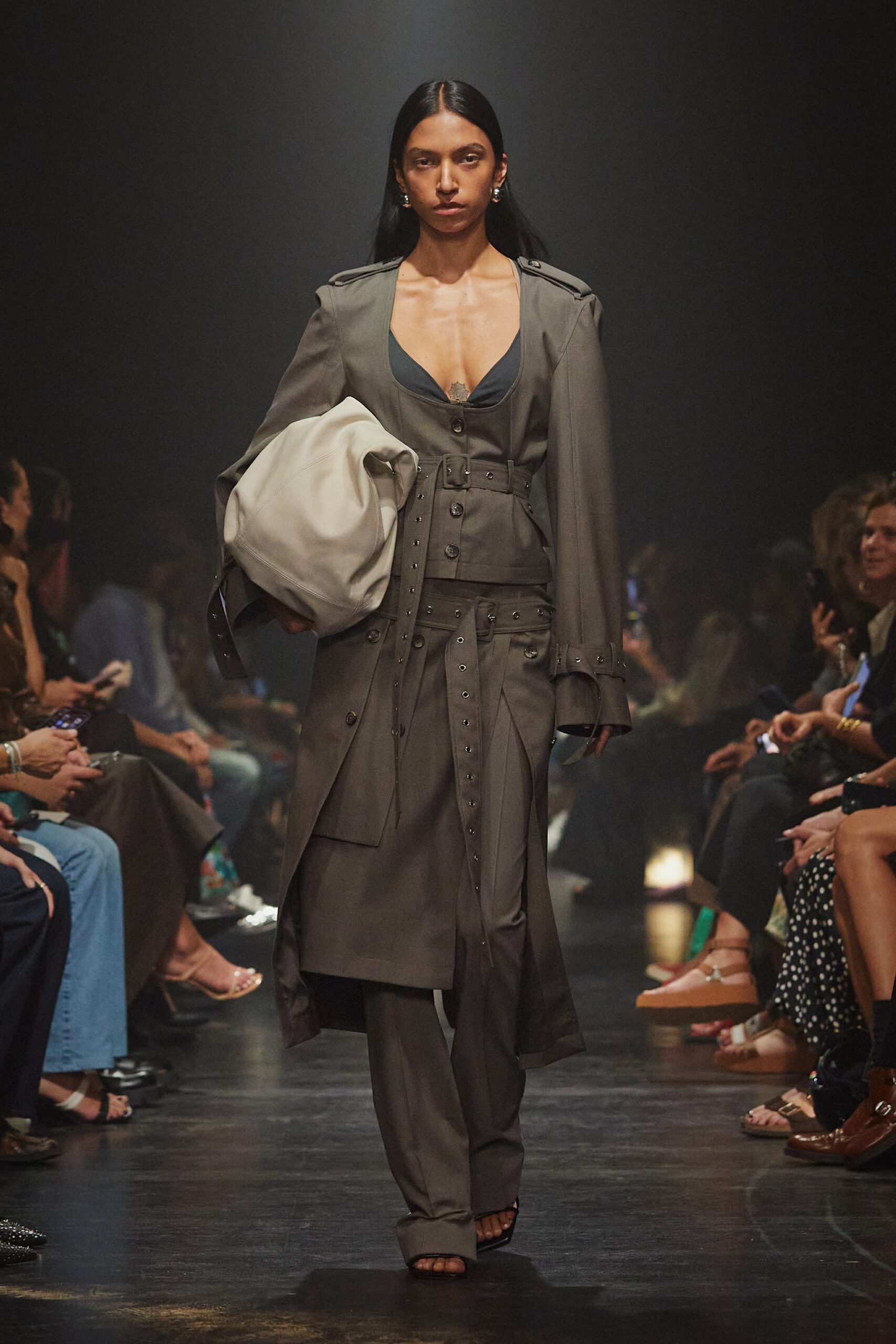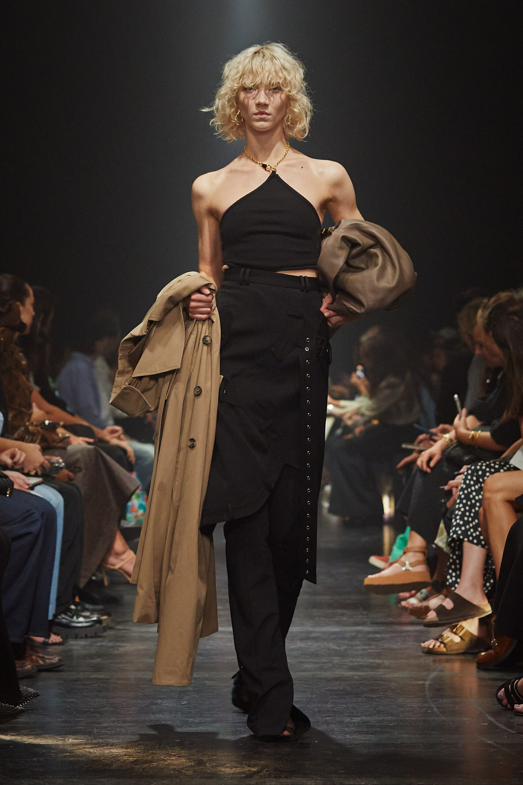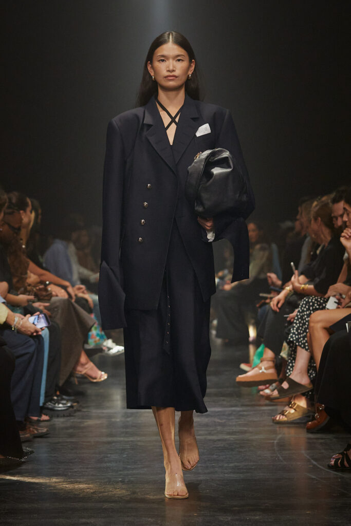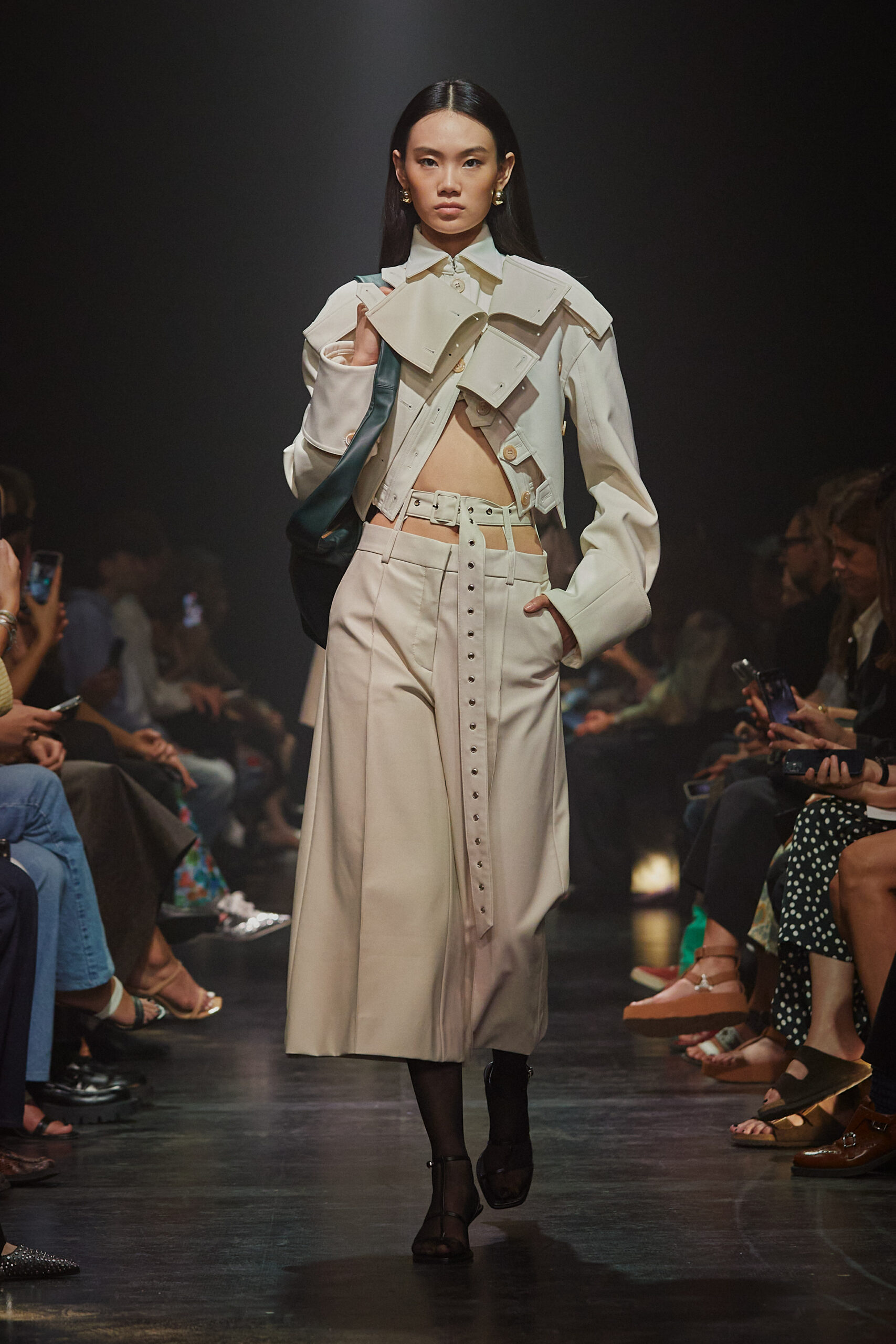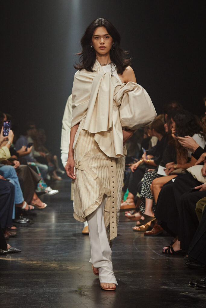 Le fil rouge de cette collection réside dans les techniques de déconstruction, appliquées aux pièces incontournables d’une garde-robe complète. Le tailleur militaire se fait plus fluide pour épouser les courbes du corps. Les pantalons et jupes-culottes jouent la carte du tombé impeccable pour une silhouette racée.