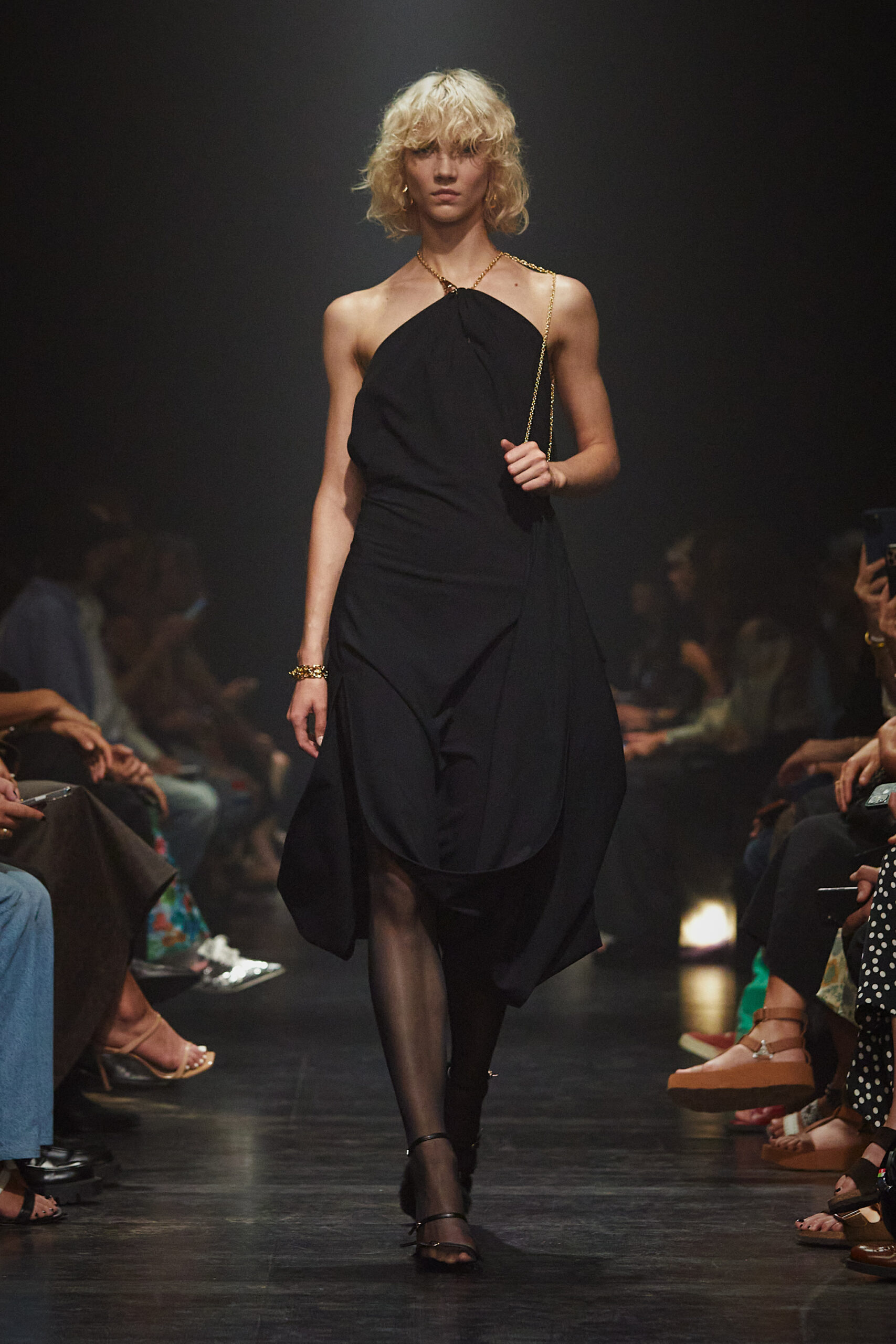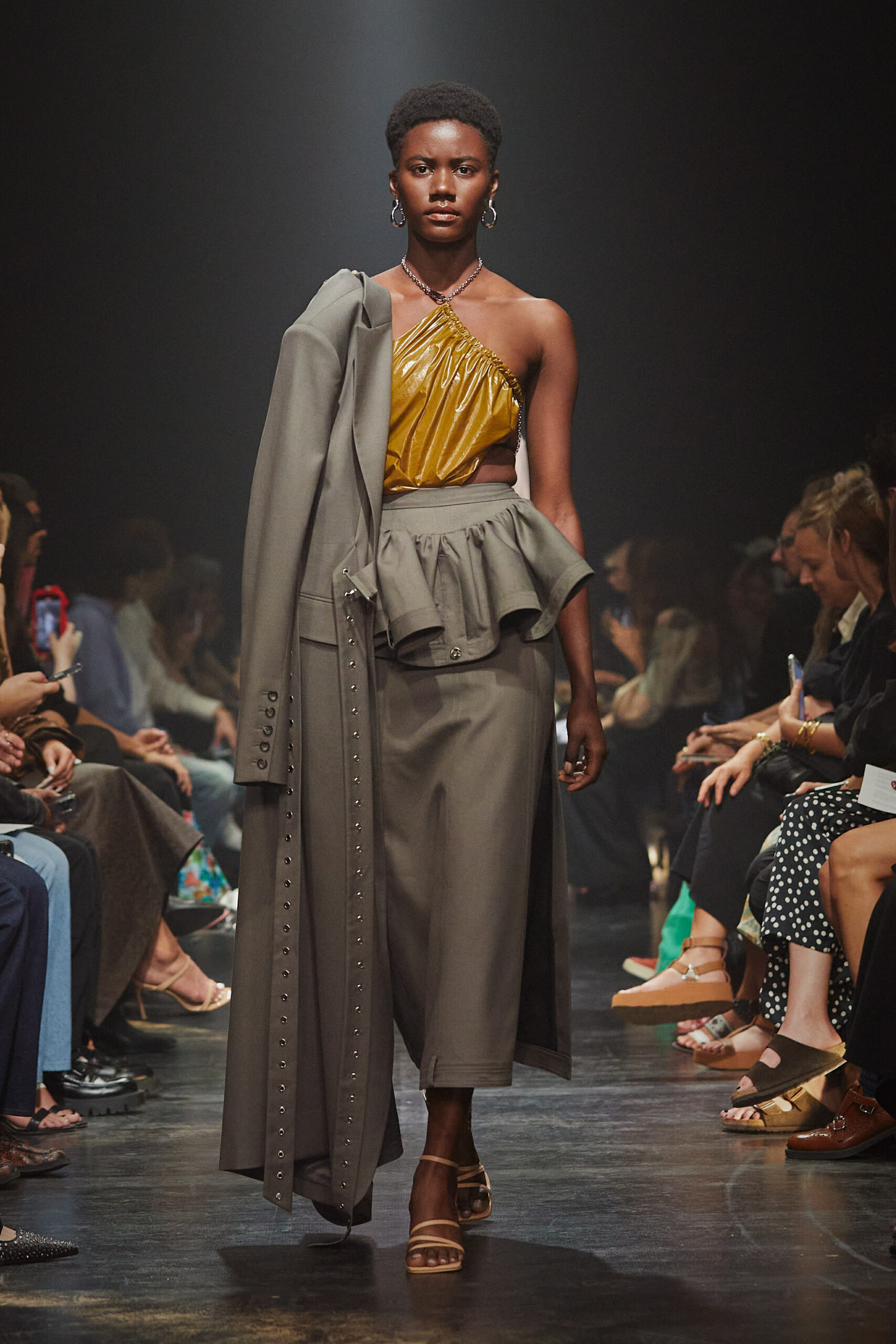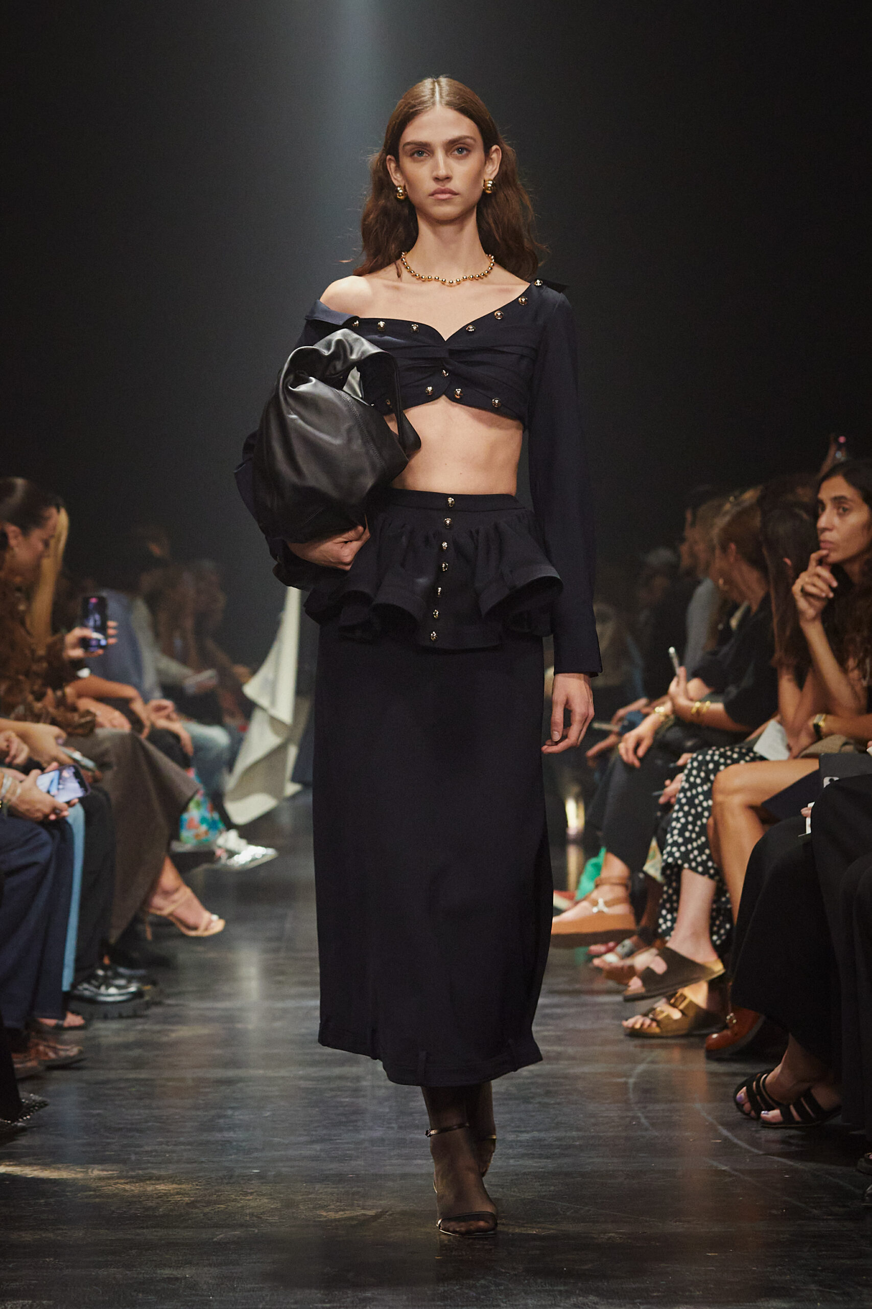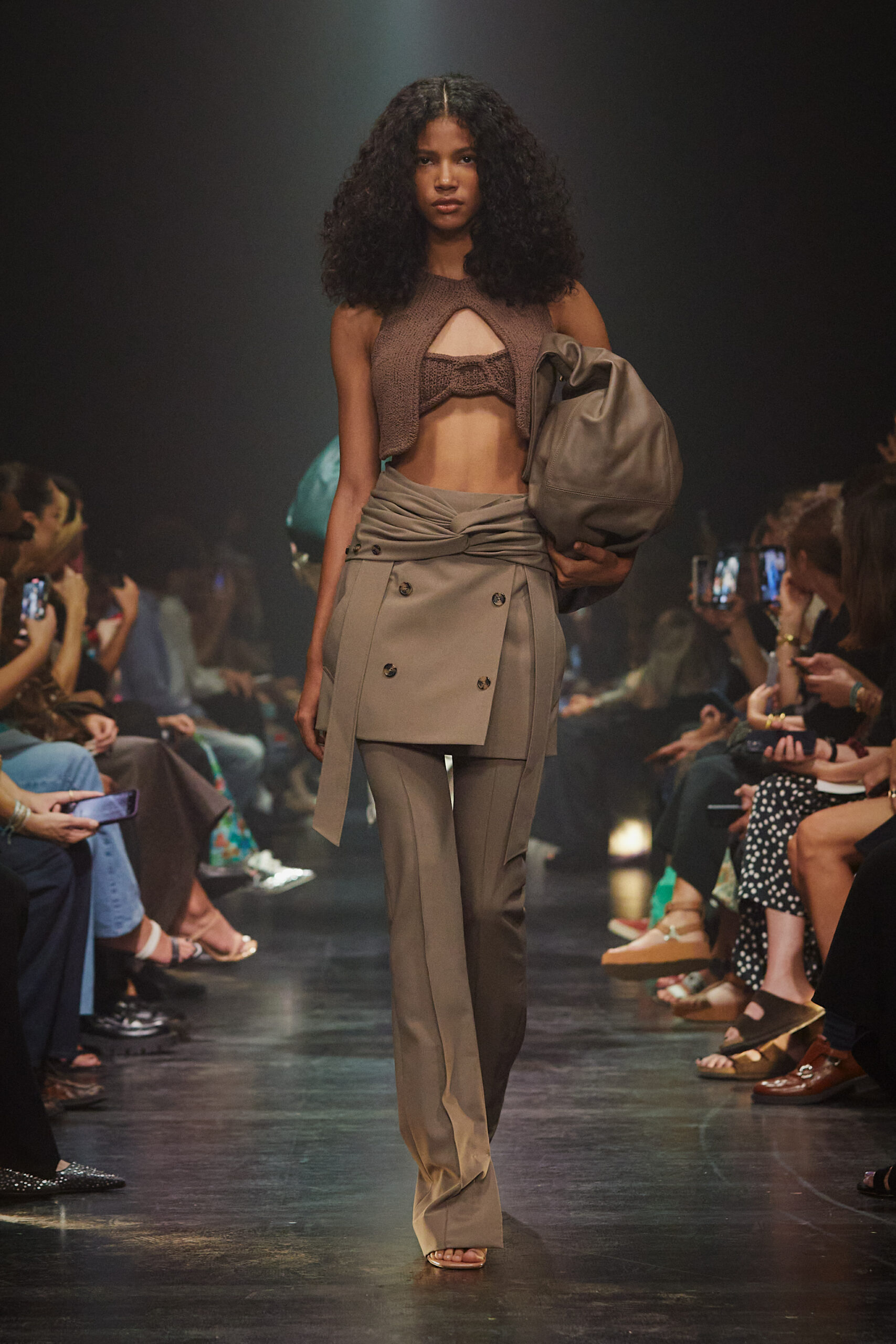 Le fil rouge de cette collection réside dans les techniques de déconstruction, appliquées aux pièces incontournables d’une garde-robe complète. Le tailleur militaire se fait plus fluide pour épouser les courbes du corps. Les pantalons et jupes-culottes jouent la carte du tombé impeccable pour une silhouette racée.