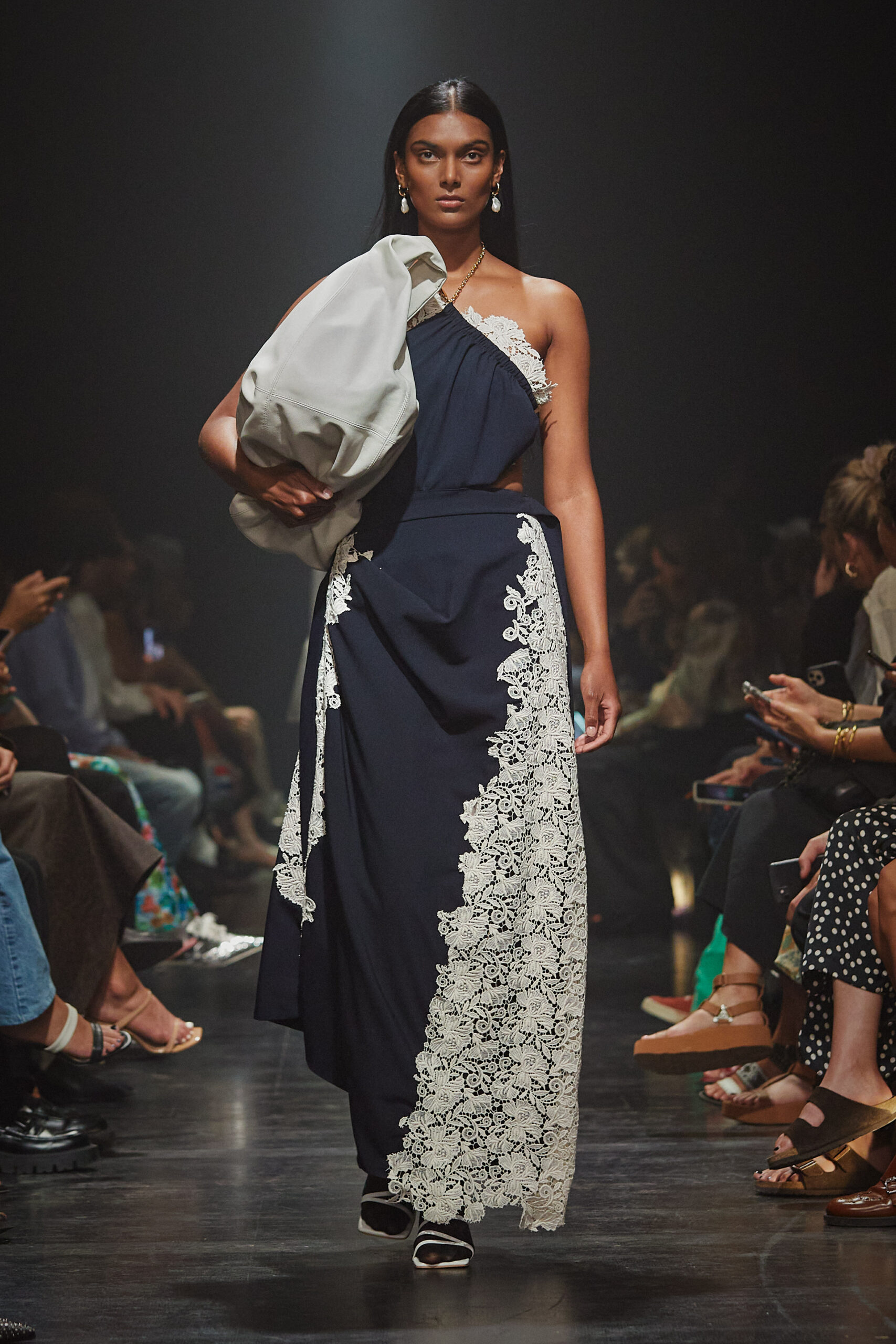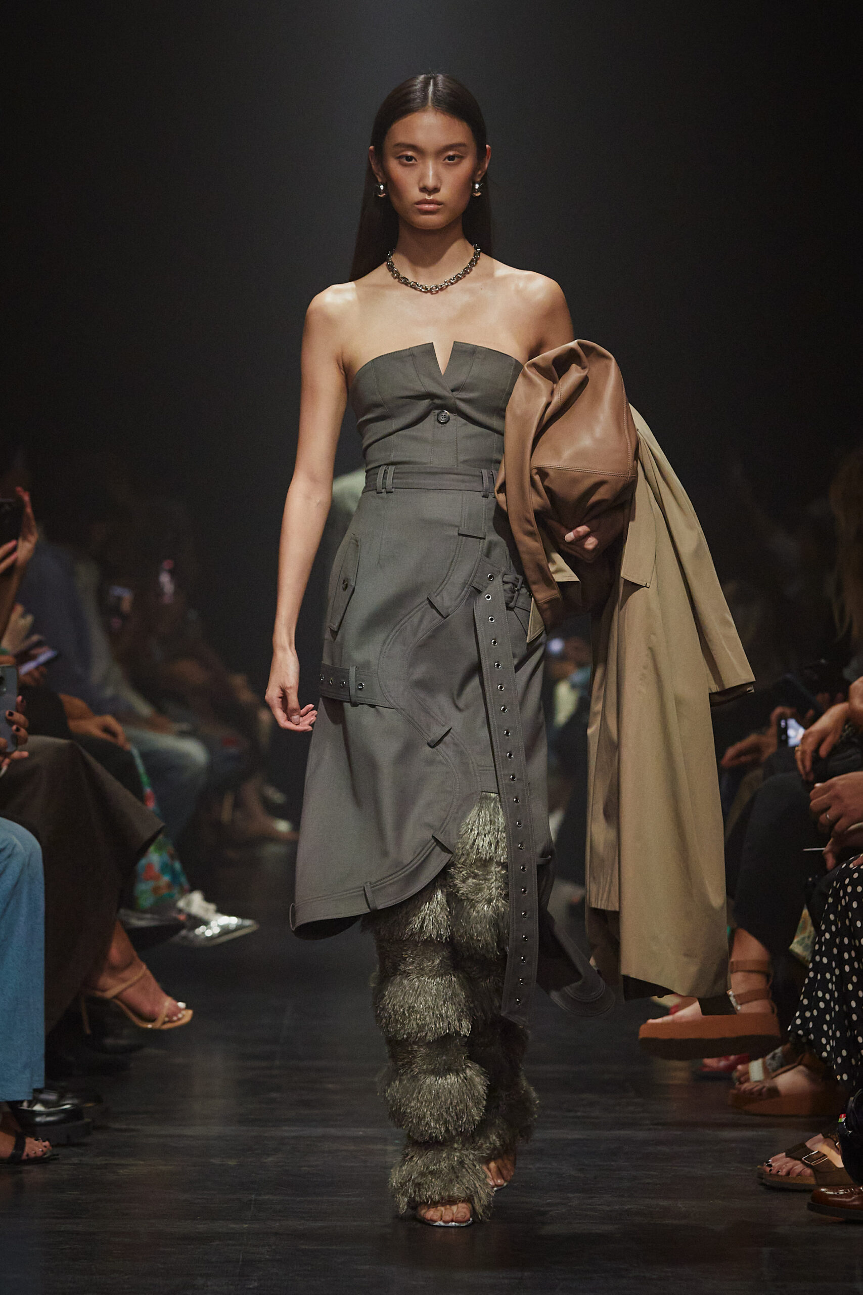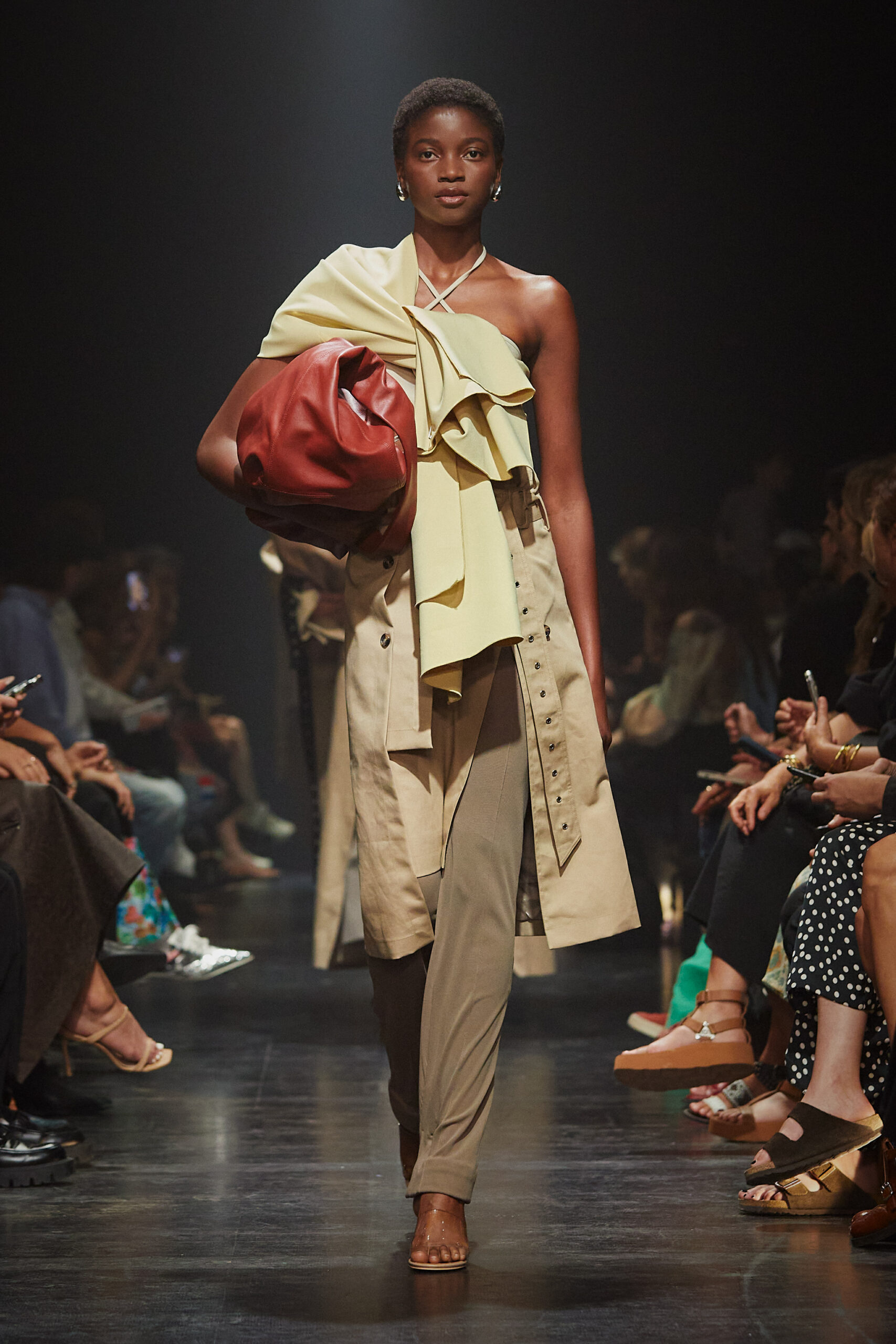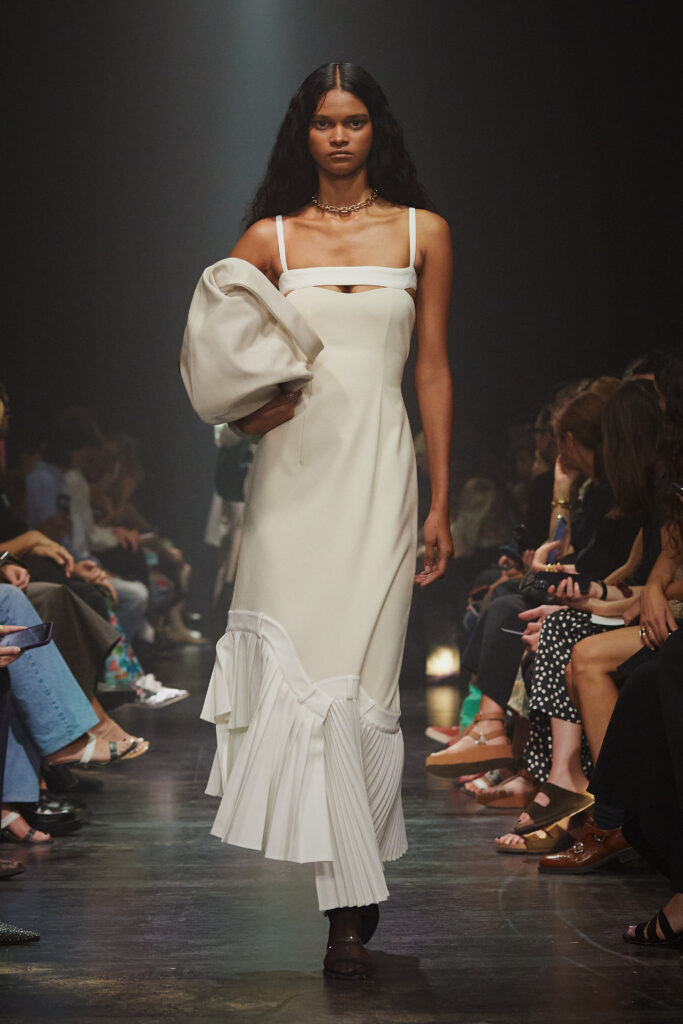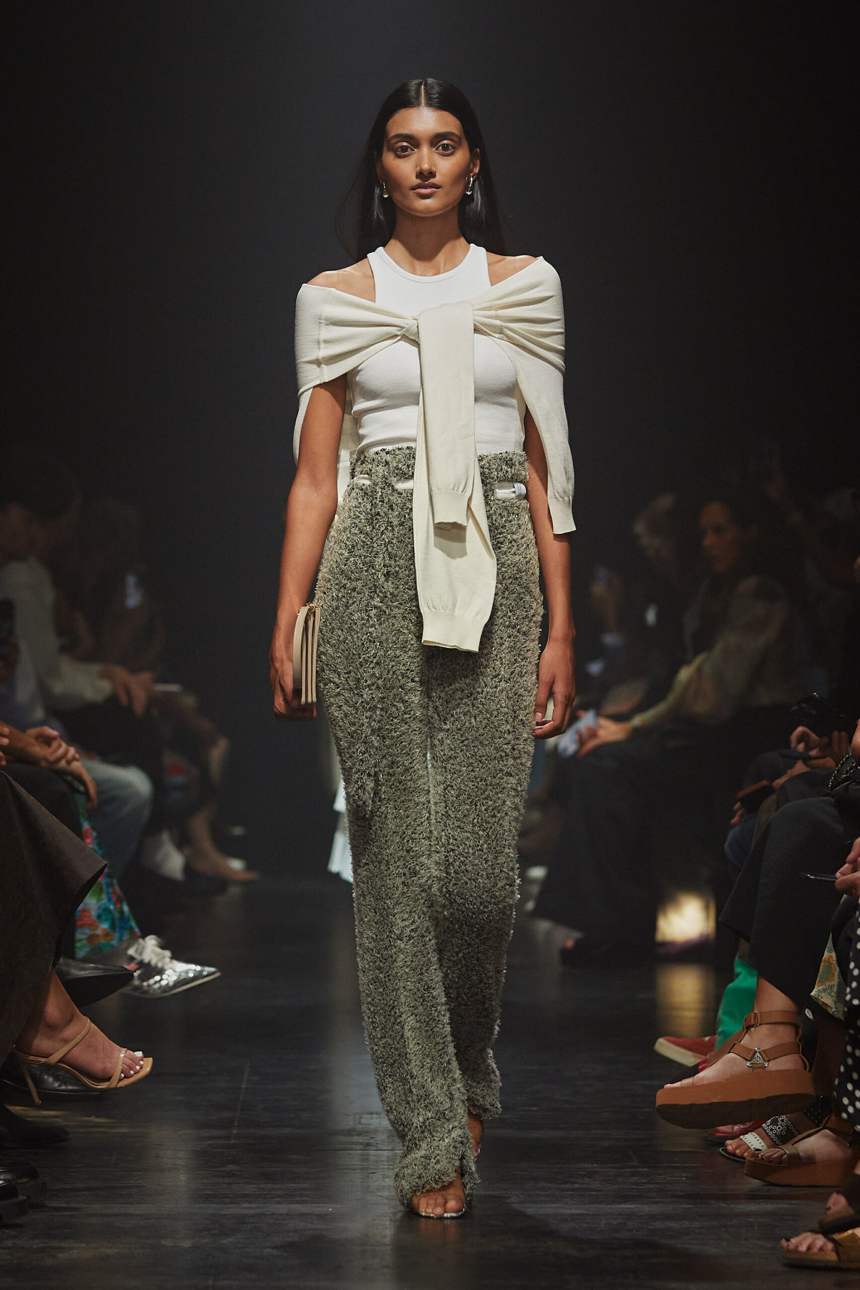 Le fil rouge de cette collection réside dans les techniques de déconstruction, appliquées aux pièces incontournables d’une garde-robe complète. Le tailleur militaire se fait plus fluide pour épouser les courbes du corps. Les pantalons et jupes-culottes jouent la carte du tombé impeccable pour une silhouette racée.