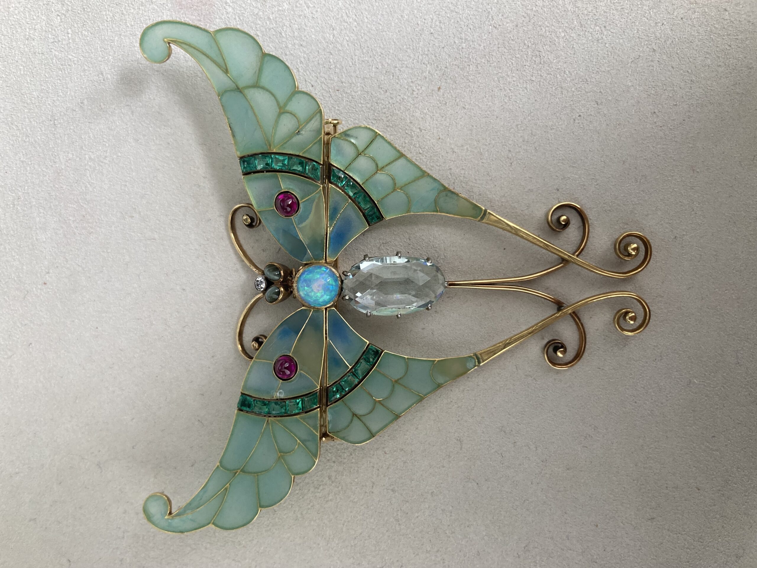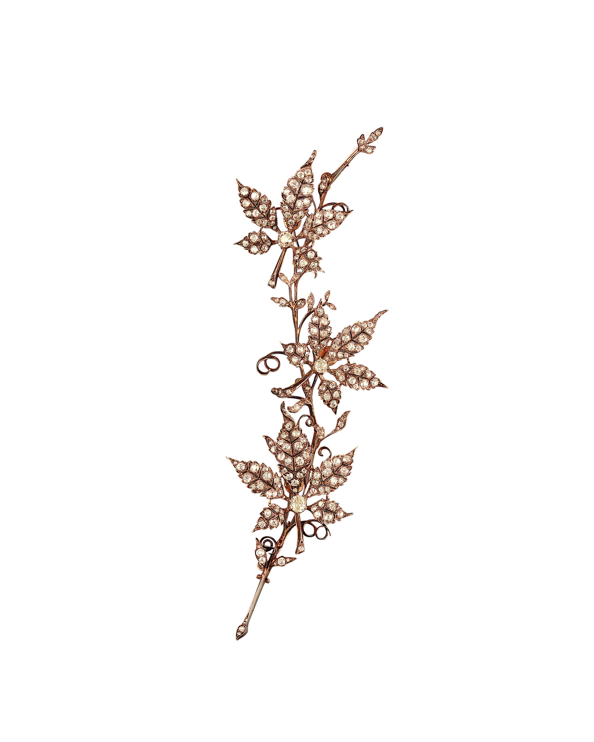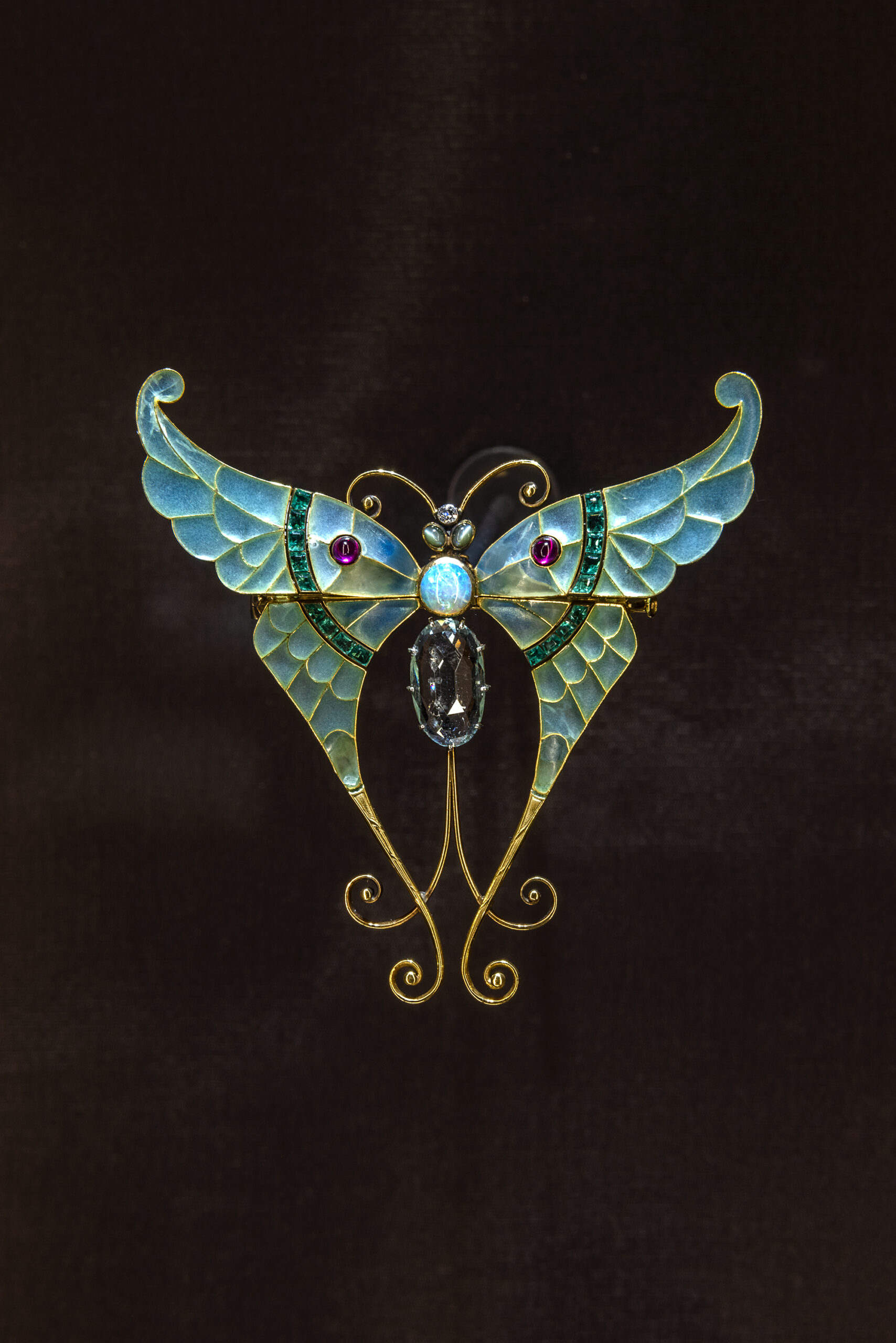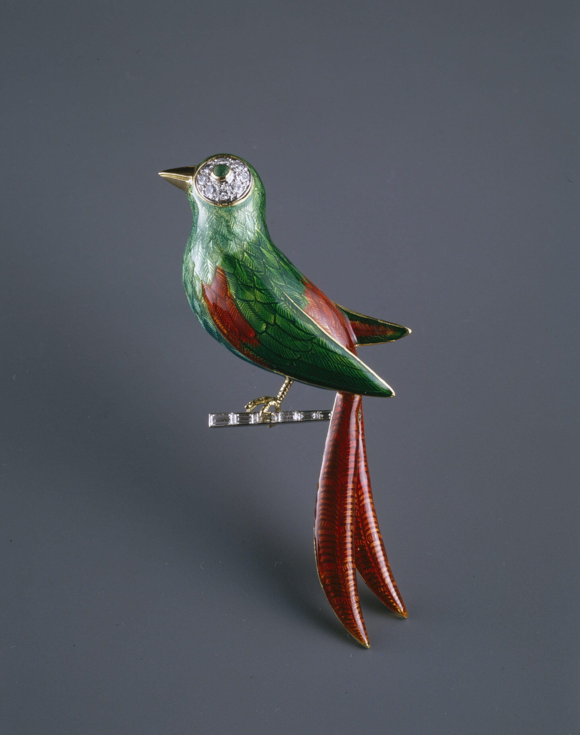 Entre les vitrines aux reflets dorés, quatre pièces d’archives illustrent l’inspiration naturaliste de Frédéric Boucheron. Une broche papillon de 1900 ayant appartenu à Elizabeth Taylor côtoie ainsi un oiseau multicolore des années 1950. De précieux témoins du patrimoine de la maison.