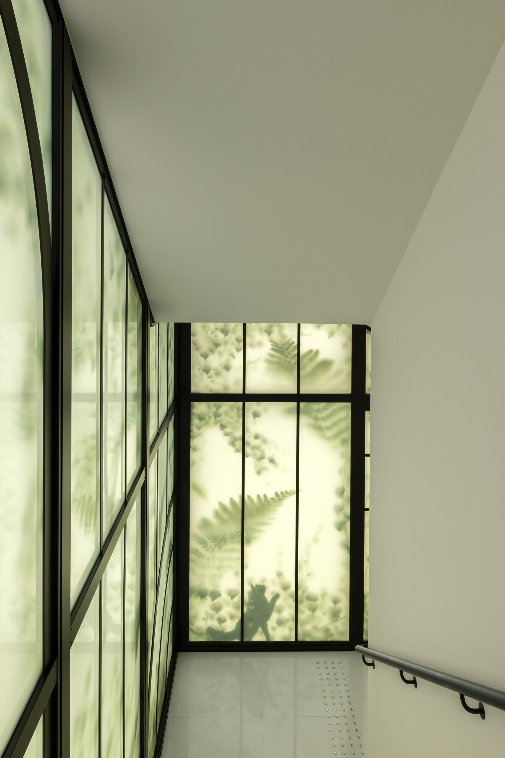 L’escalier central prolonge l’immersion au fil des étages tel un jardin vertical, avec vue plongeante sur la nature imaginaire. Une invitation à la contemplation et à la promenade, cherchant à susciter émotion et rêverie à chaque instant.