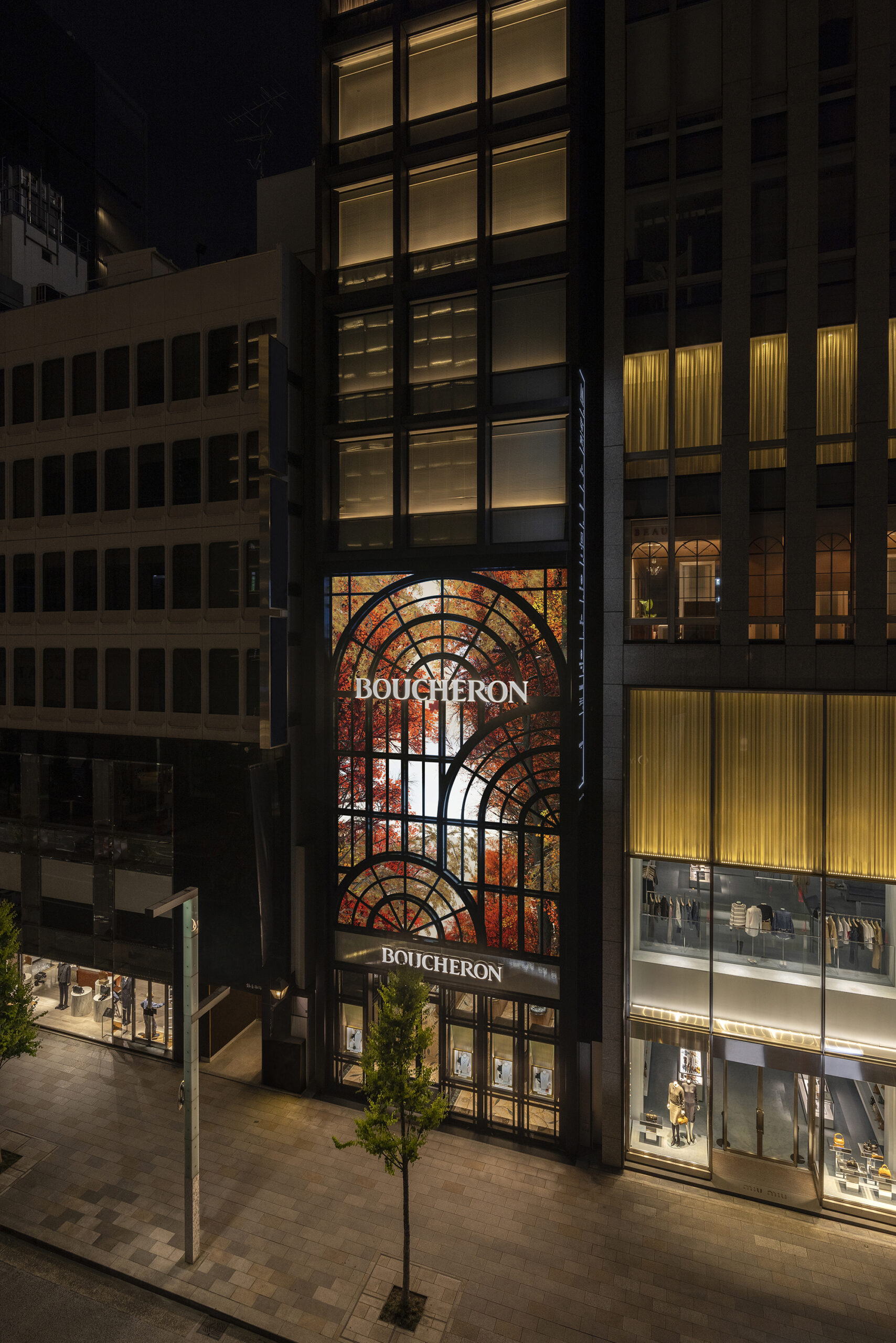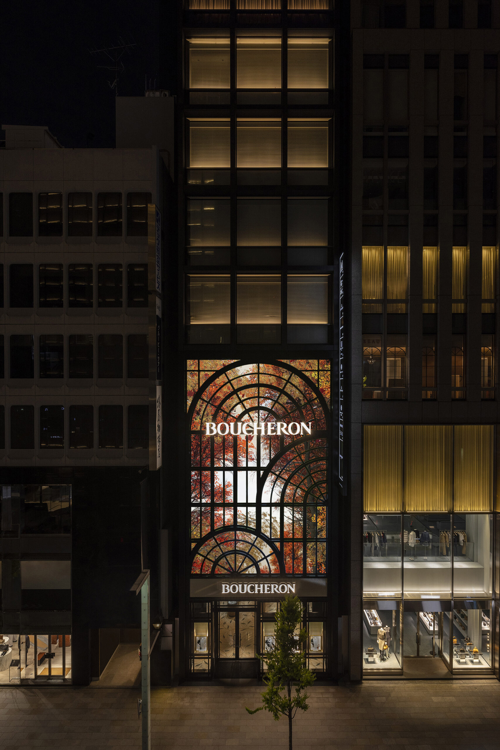 Cette projection évolutive au fil des heures et des saisons plonge dans un interlude poétique, au cœur de l’effervescence citadine. Elle annonce le parcours immersif qui attend le visiteur, célébrant la beauté éphémère de la nature. Une thématique chère à Boucheron depuis 1858, qui résonne en écho avec l’amour des Japonais pour la contemplation de la nature.