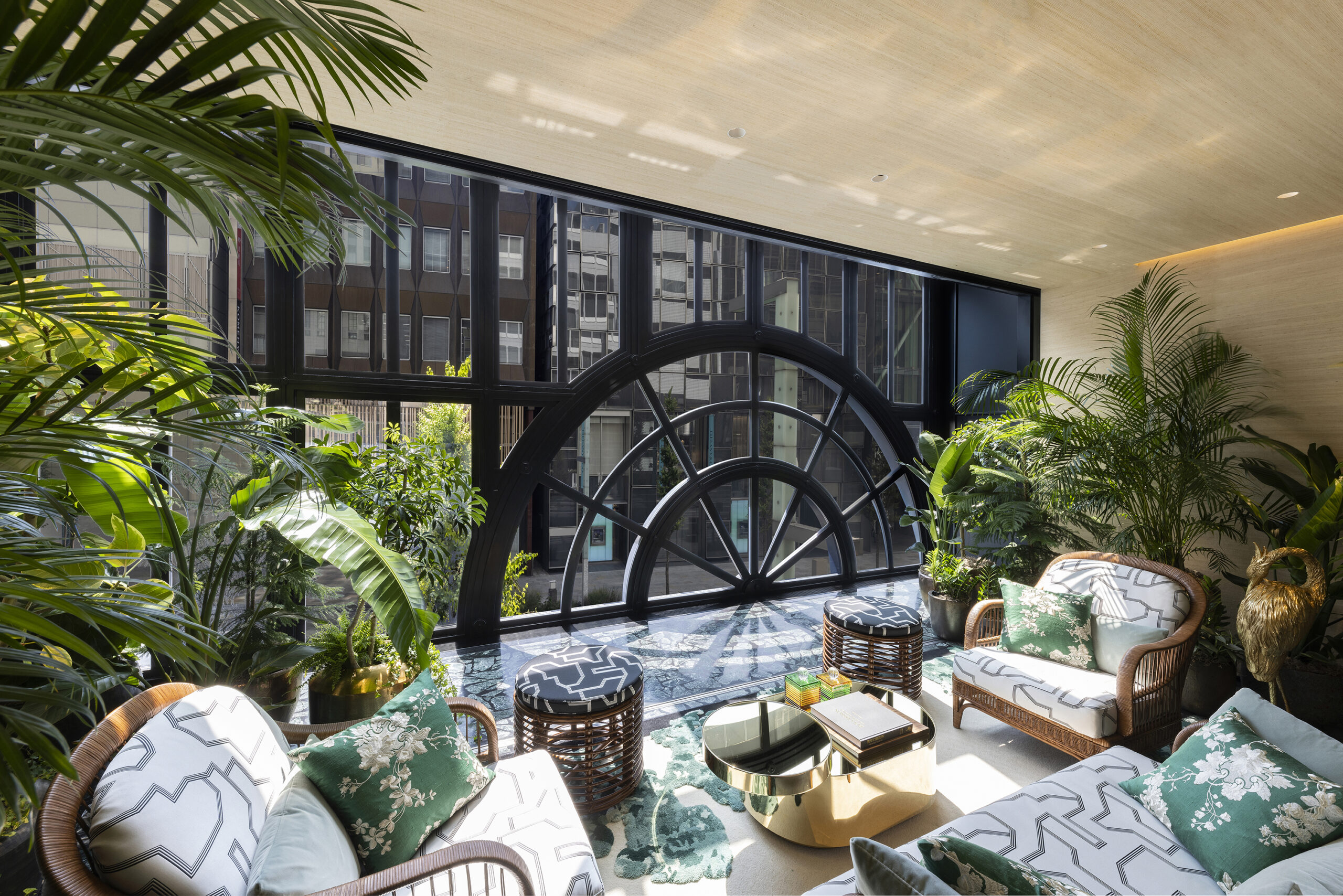 À l’étage, l’intimité douce du salon VIP évoque le raffinement de la boutique parisienne. Pour parfaire l’illusion d’une véranda, les artisans de TOHO LEO ont reproduit la lumière naturelle et disposé une sélection de plantes locales. L’expérience client se veut ainsi authentiquement japonaise.