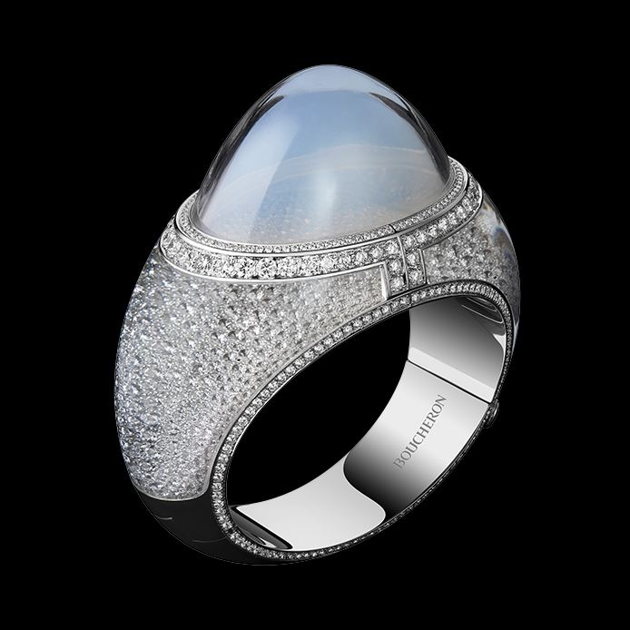 En point d’orgue, le dernier étage met à l’honneur les pièces d’exception développées par Boucheron. Dans un écrin futuriste baptisé Innovation Lab, les visiteurs pourront observer de près les matériaux high-tech employés, comme l’aérogel ou le Cofalit.