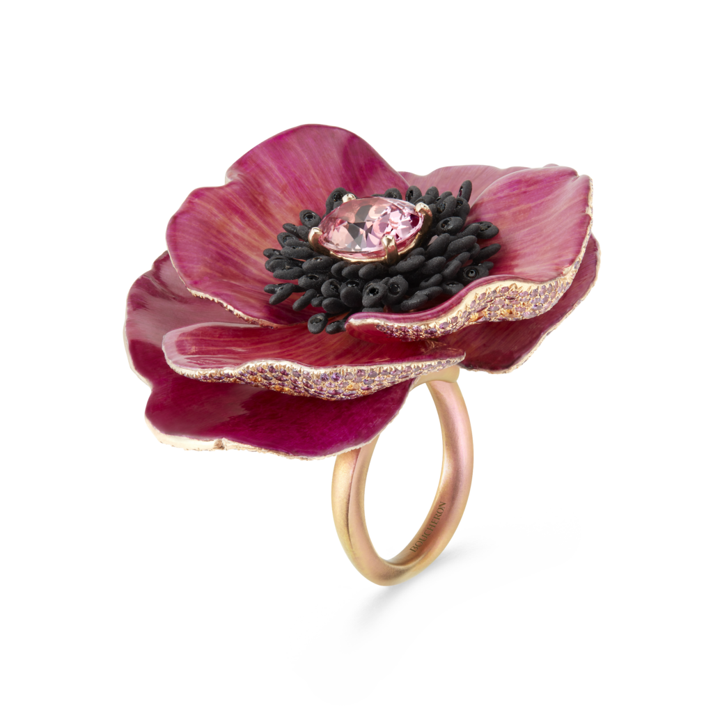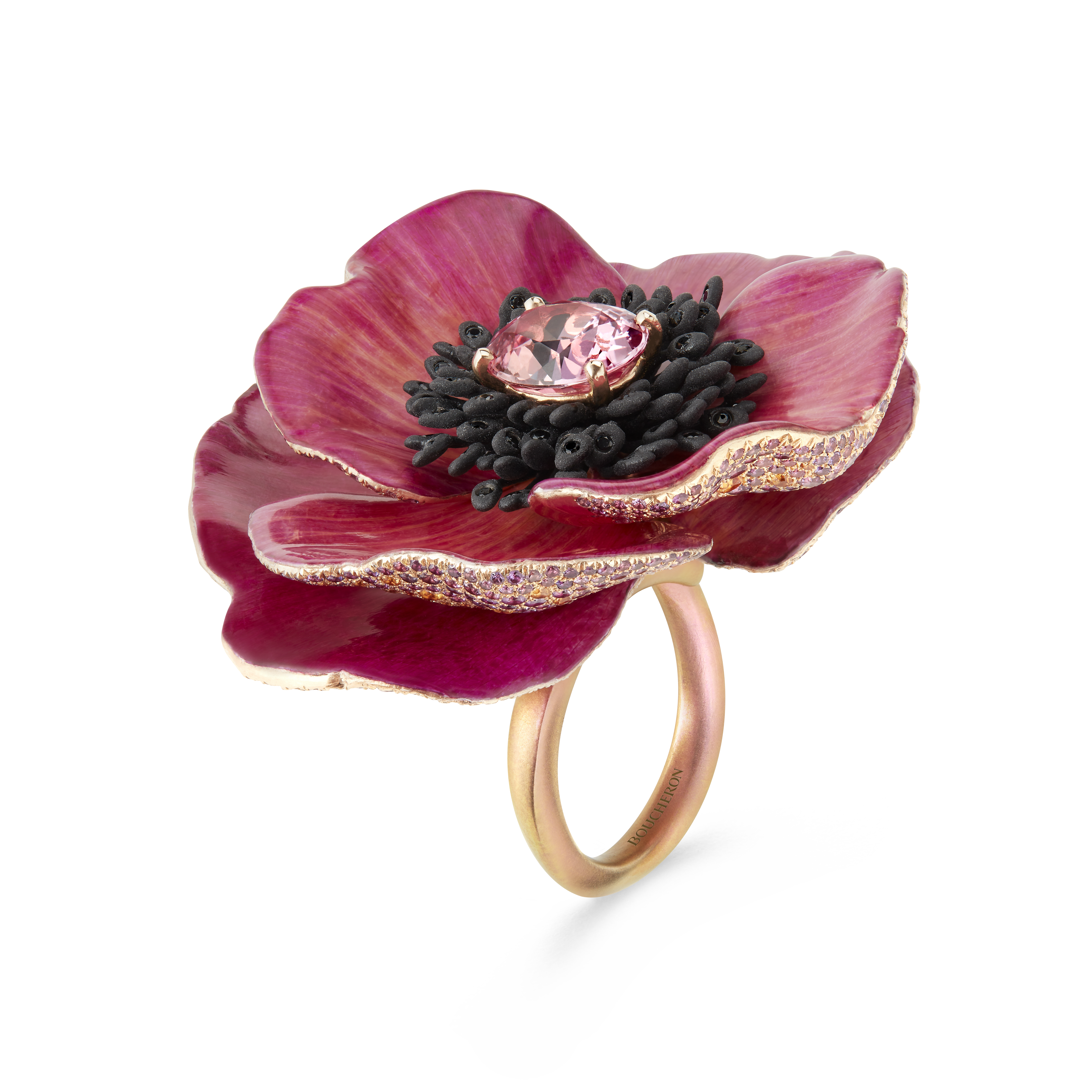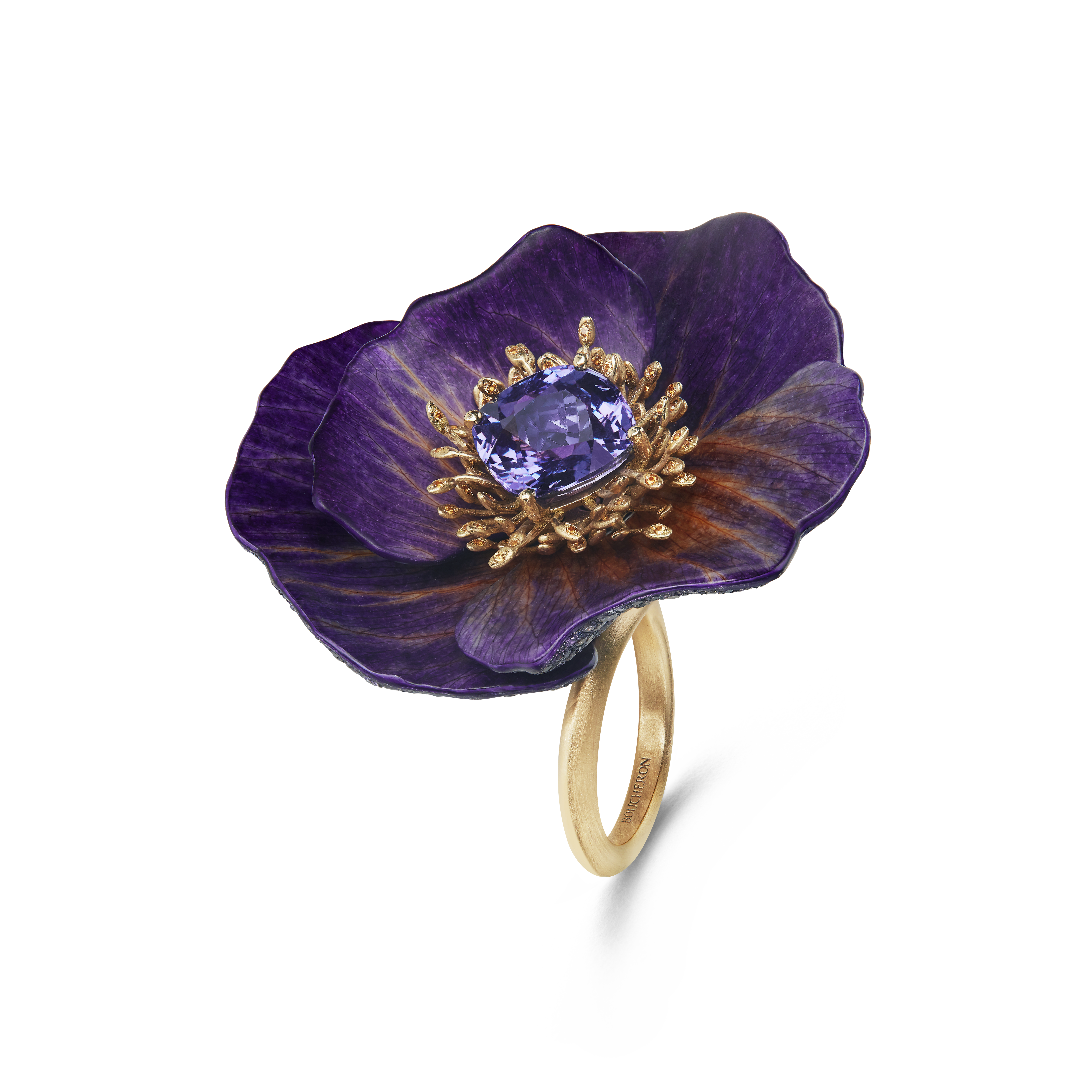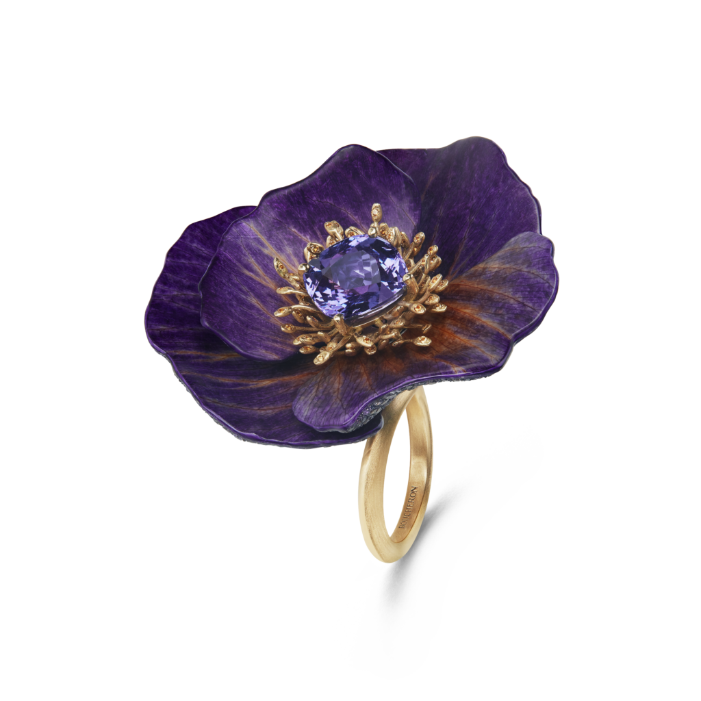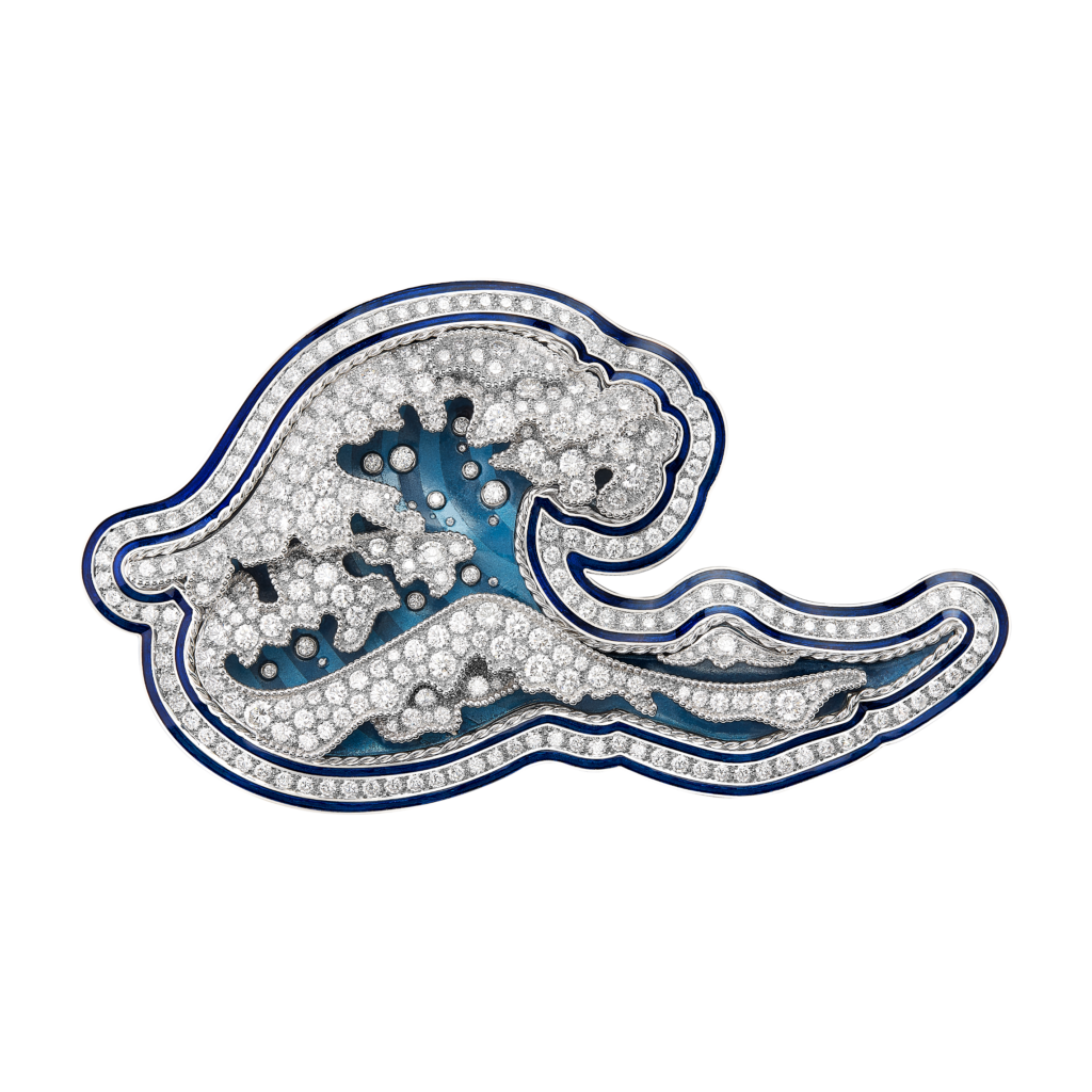 Ici, la haute joaillerie se vit comme un art en perpétuel mouvement, à la recherche de nouveaux territoires d’expression. Pour l’inauguration, trois broches de la collection More is More imaginent un dialogue avec le Japon, mêlant laques, saphirs et nacre.