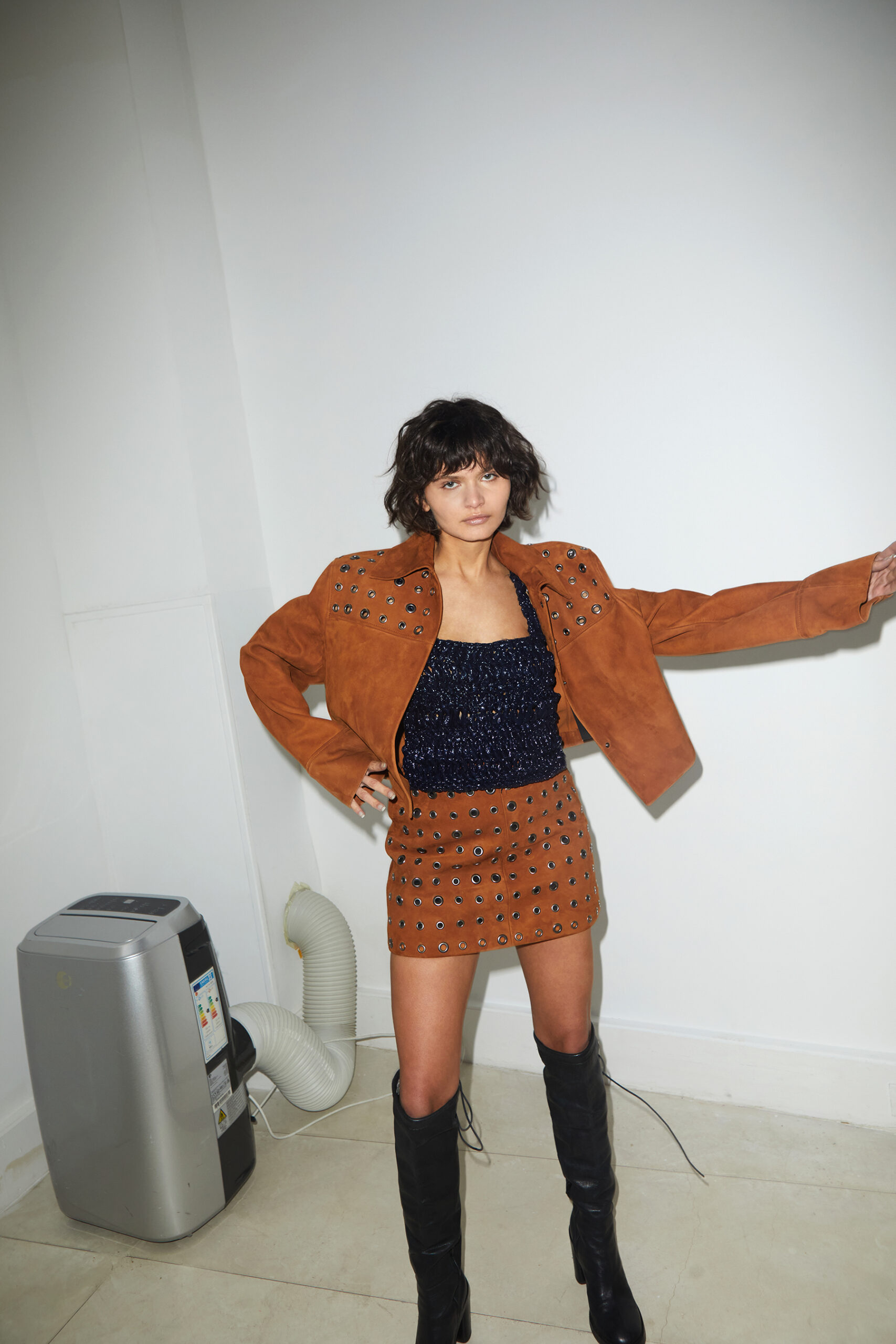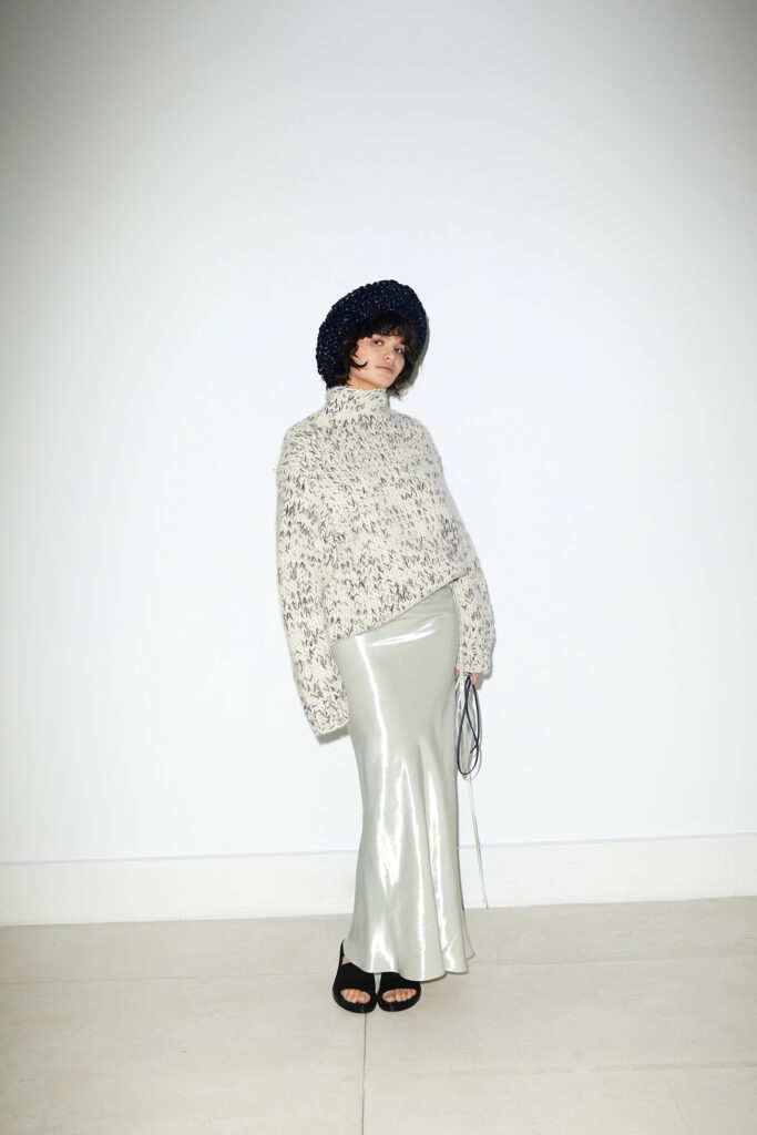 La collection se distingue par des robes slinky et des pièces de soirée, entrelacées de silhouettes plus androgynes, intégrant des éléments masculins et des vestes en cuir robustes. Arbellot vise à créer des vêtements qui incarnent un équilibre unique d’élégance, de malice et d’esprit rebelle, destinés aux femmes qui vivent du matin au soir, qui sont sensuelles, espiègles, amusantes et qui s’habillent pour elles-mêmes.
