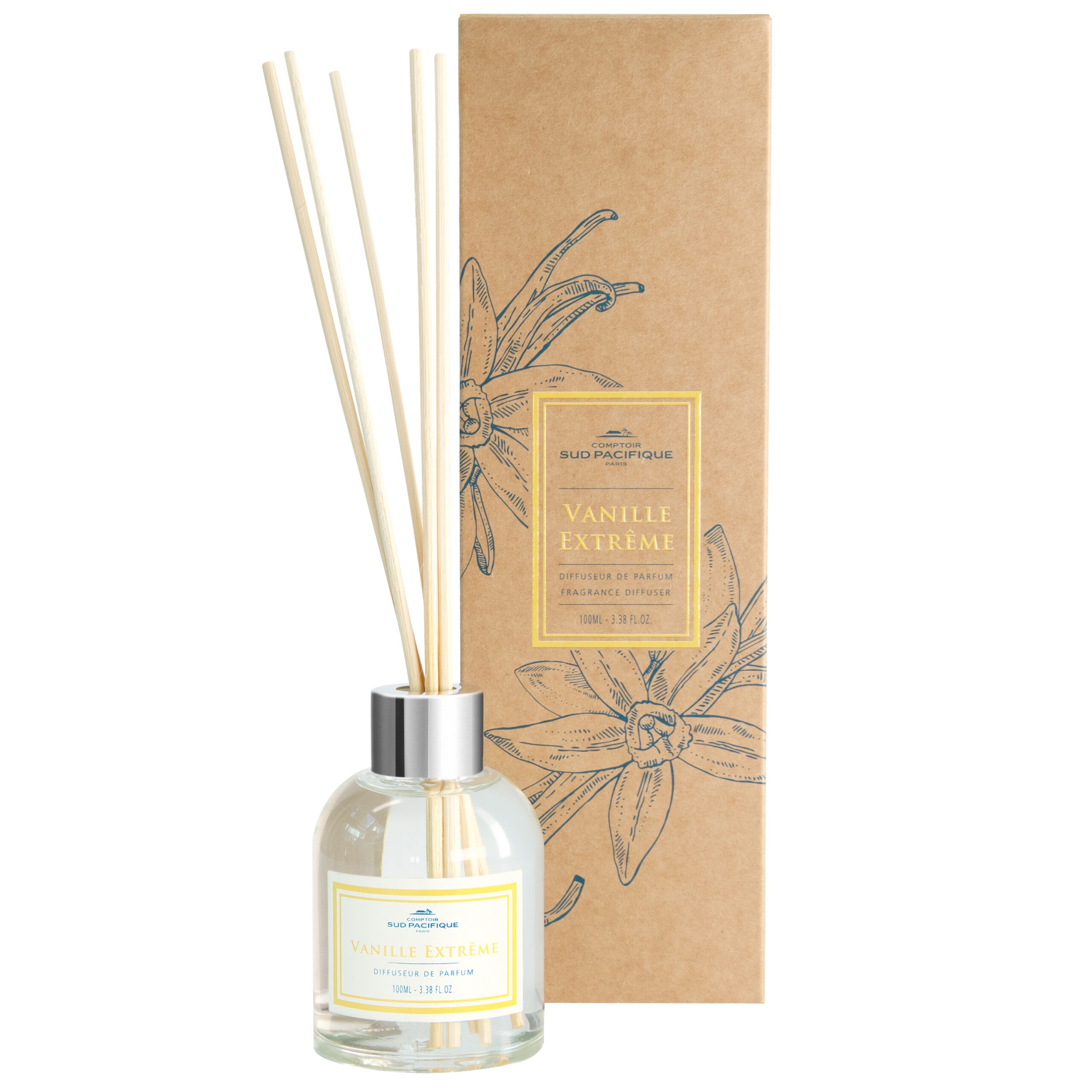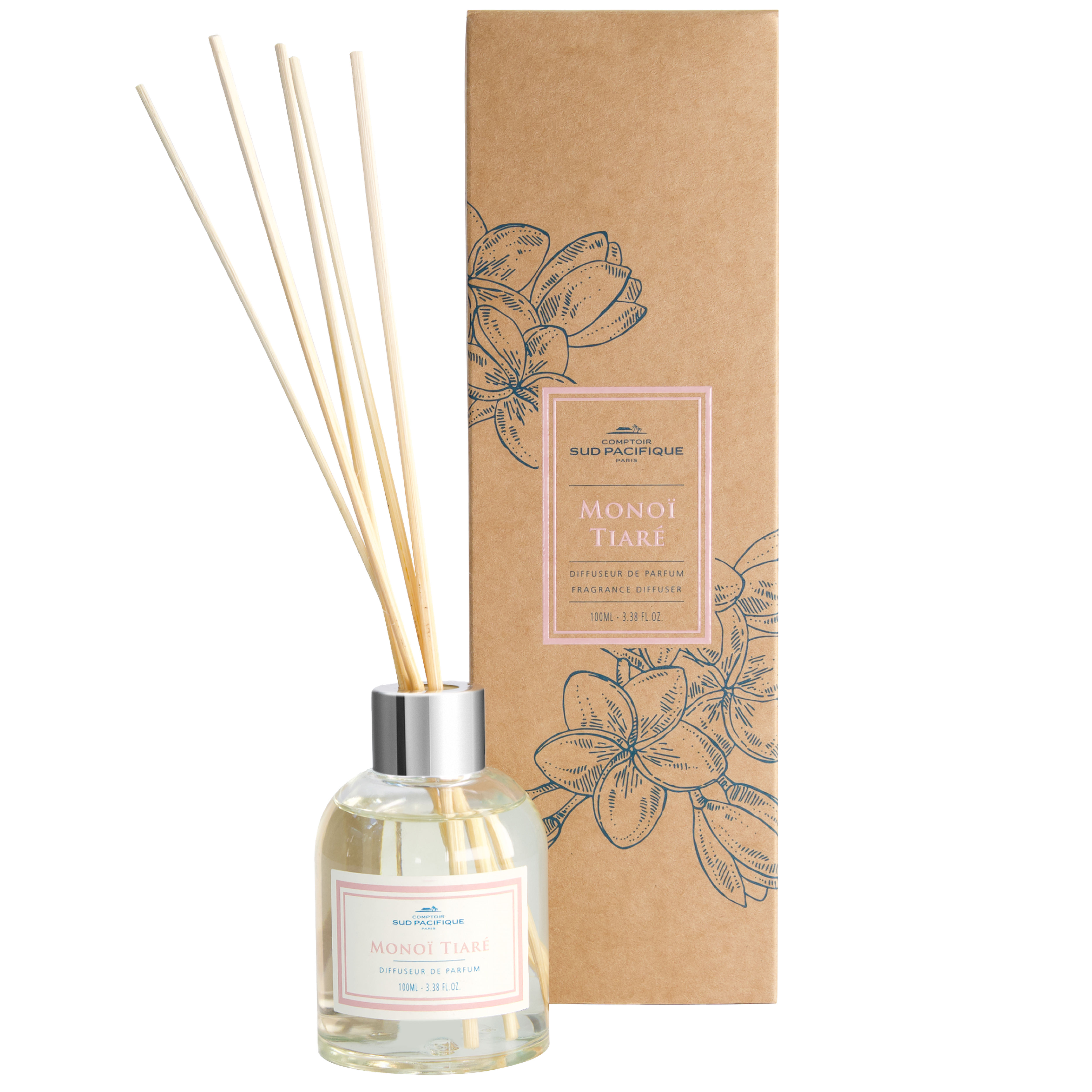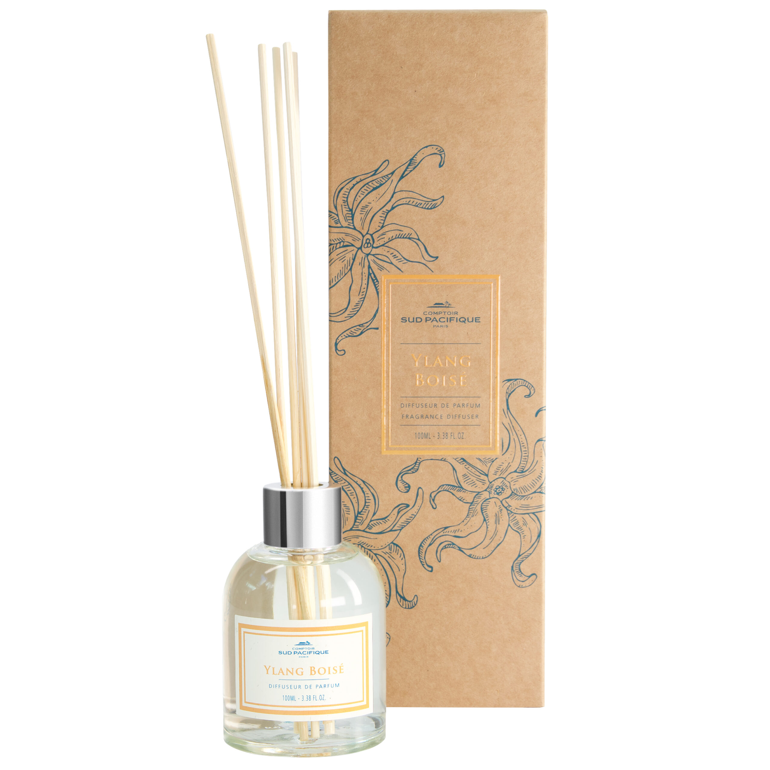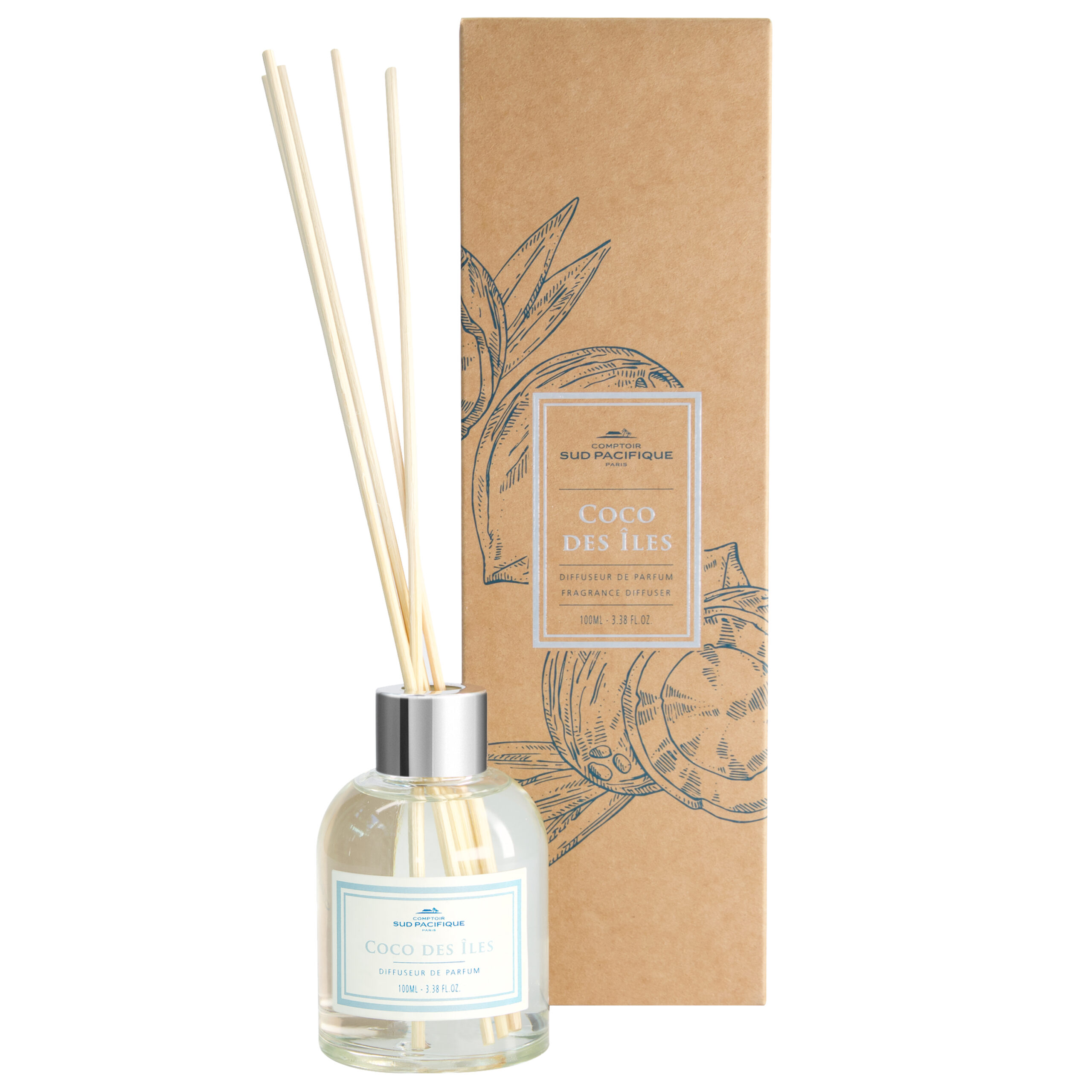 Dans un monde où le luxe et la responsabilité écologique sont souvent considérés comme incompatibles, Comptoir Sud Pacifique brise le moule. Pour cette première ligne de diffuseurs, l’enseigne a fait un choix méticuleux de matériaux qui non seulement évoquent l’élégance mais également la durabilité. Le contenant en verre transparent rechargeable et l’étiquette en papier recyclable soulignent la philosophie de l’entreprise : celle d’un luxe discret et responsable. Même le col en aluminium de finition argent est 100% recyclable, respectant ainsi les valeurs de ceux qui choisissent de consommer de manière plus consciente.