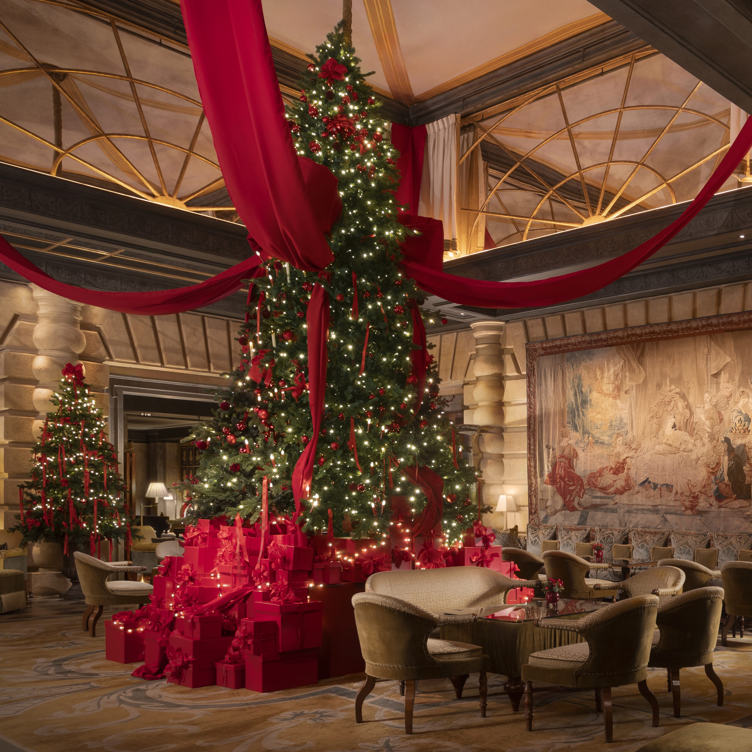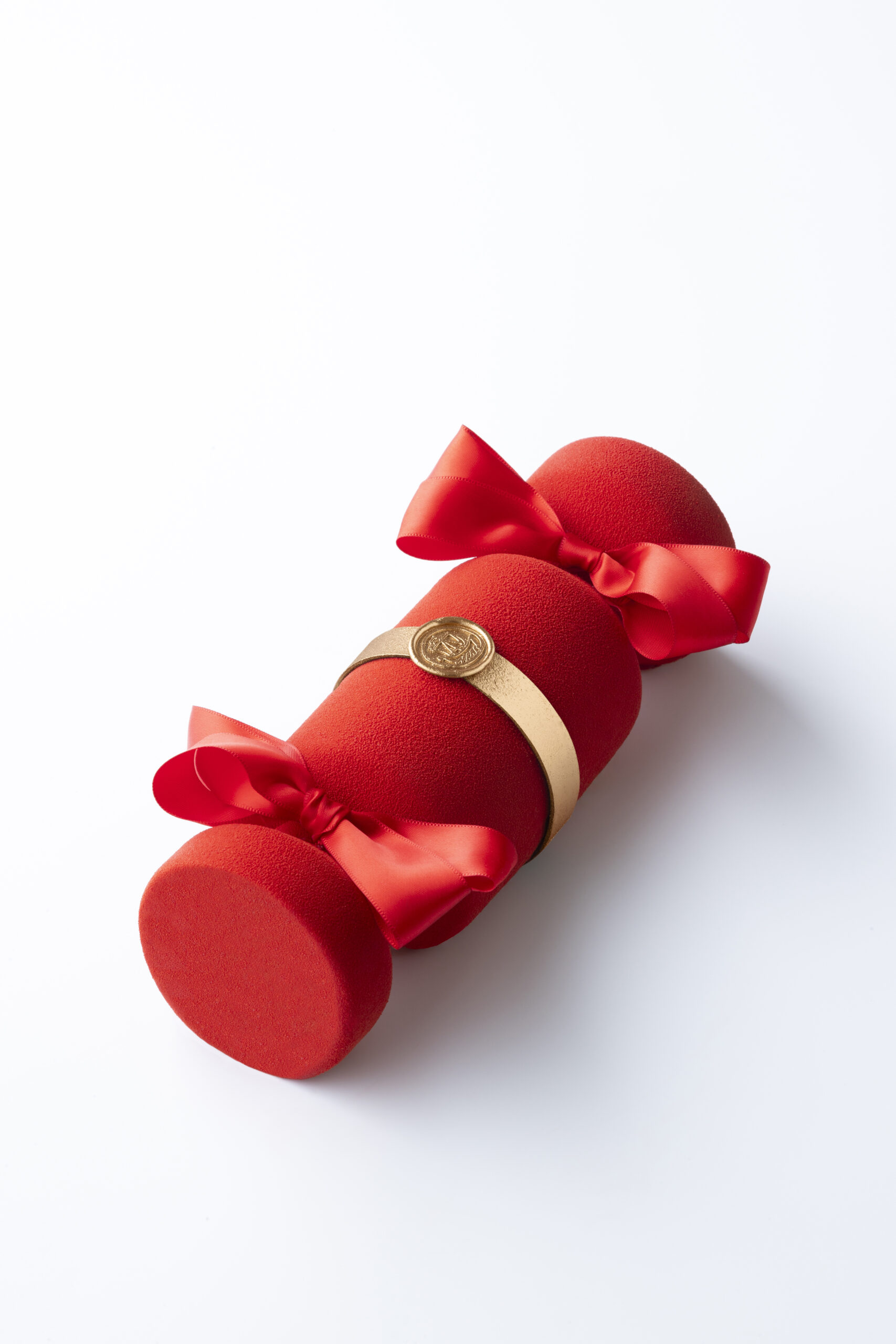 Vêtue d’un rouge éclatant, couleur emblématique de l’hôtel, cette bûche prend la forme d’un cracker, symbolisant la joie et le partage des fêtes de fin d’année. Le rouge vibrant du glaçage évoque la passion et la chaleur, faisant de cette création un véritable joyau visuel.