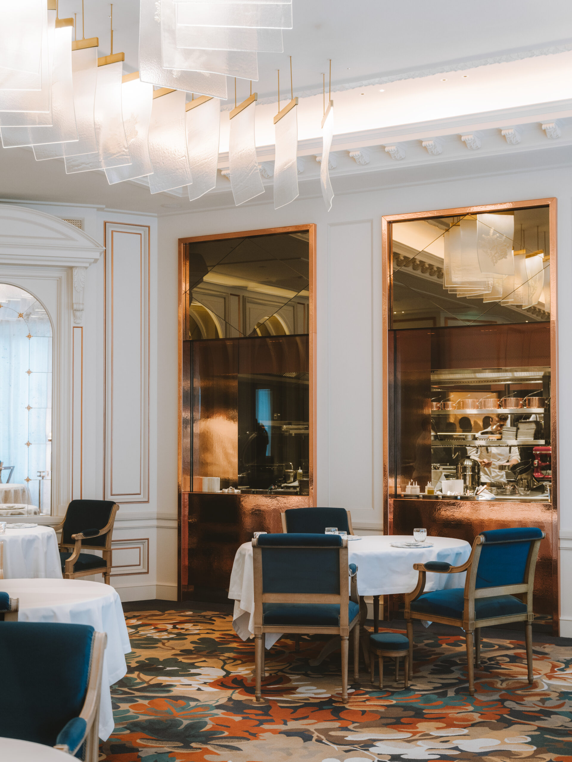 Le restaurant Espadon, situé au cœur du prestigieux Ritz Paris, est un écrin où l’atmosphère intimiste se marie harmonieusement avec l’approche gastronomique unique de la cheffe Béziat. La salle à manger, pensée pour immerger les convives dans un univers entre-deux-continents, invite à un voyage culinaire où se rencontrent les saveurs de la France, de l’Afrique et de la Méditerranée.