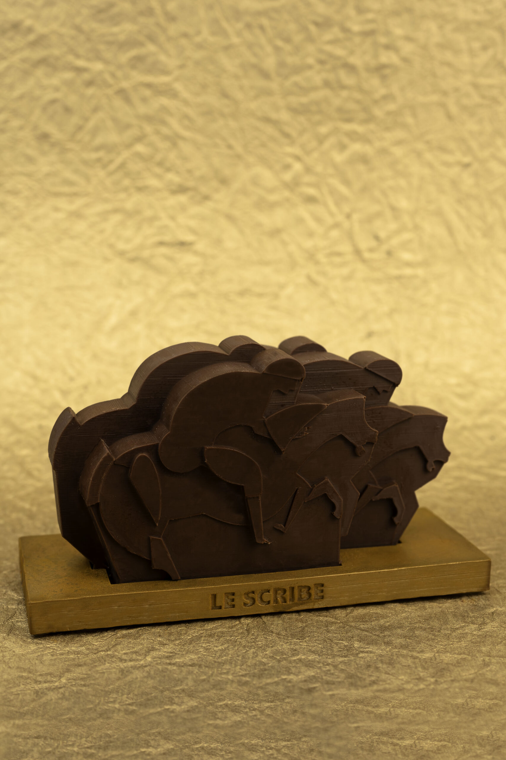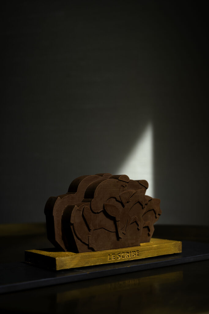 Le sous-chef pâtissier Antoine Bouchard a imaginé une œuvre culinaire qui évoque le prestige et l’élégance du Jockey Club. Les quatre jockeys et leurs chevaux, finement sculptés dans un chocolat au lait de qualité supérieure, sont le reflet d’un savoir-faire unique et d’une créativité sans bornes.