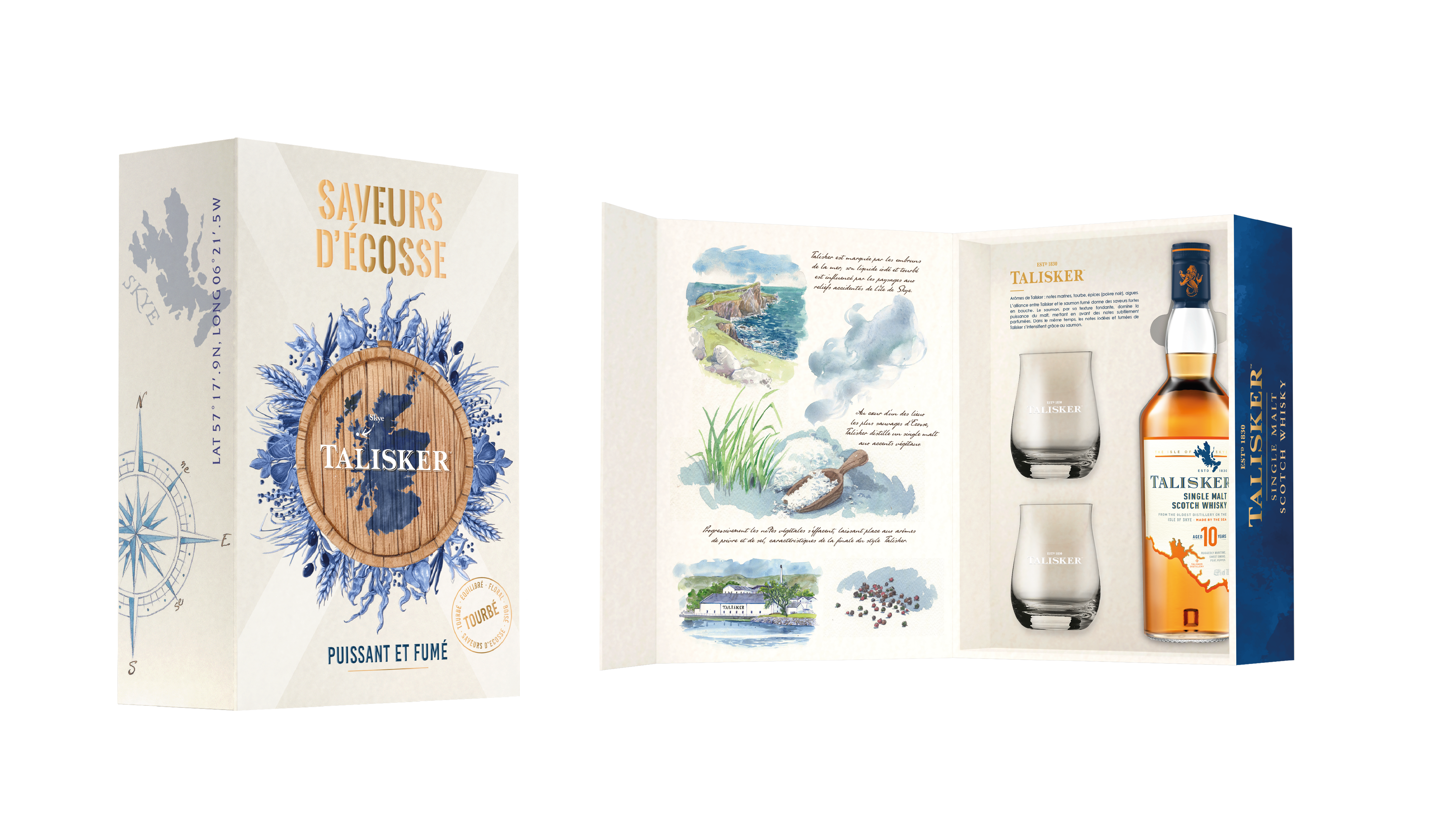 Portée par des aquarelles inspirées des paysages, chaque déclinaison met en lumière le style unique d’une distillerie. Talisker 10 ans fait souffler les embruns de l’île de Skye avec ses notes iodées caractéristiques. Sur Islay, Lagavulin 8 ans déploie son intensité tourbée onctueuse tandis que Caol Ila révèle sa signature fumée délicate. Le Speyside se dévoile à travers Cardhu Amber Rock, au caractère fruité et rond issu d’une double maturation sherry et bourbon. Enfin, le coffret Knockando 18 ans « Slow Matured » célèbre l’authenticité de cette centenaire du Nord par sa richesse douce et complexe.