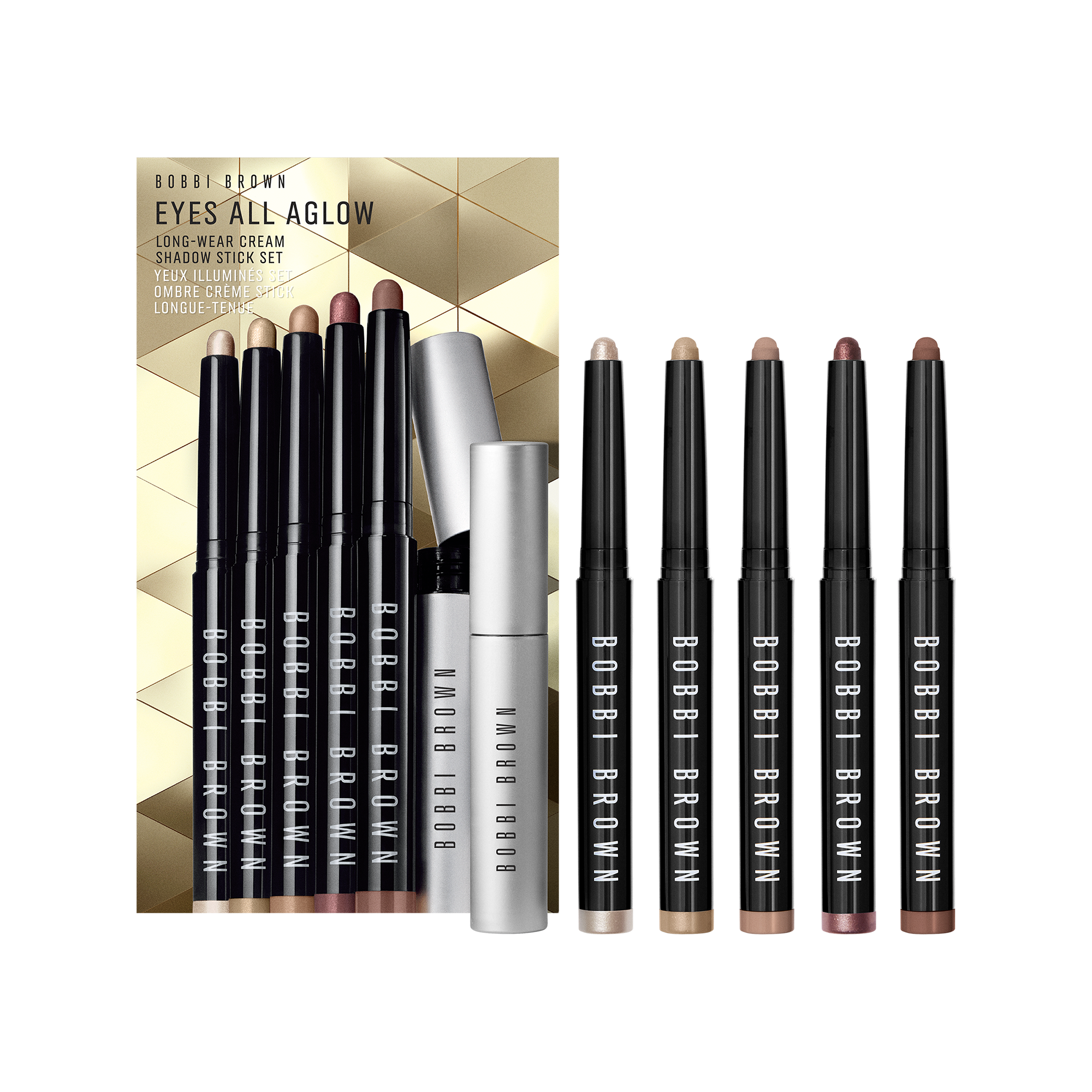 Coffret Eyes All Aglow Long-Wear Cream Shadow Stick : À 140 euros, ce coffret offre une palette de teintes irisées pour des yeux scintillants et un regard intensifié par le mascara Smokey Eye inclus.