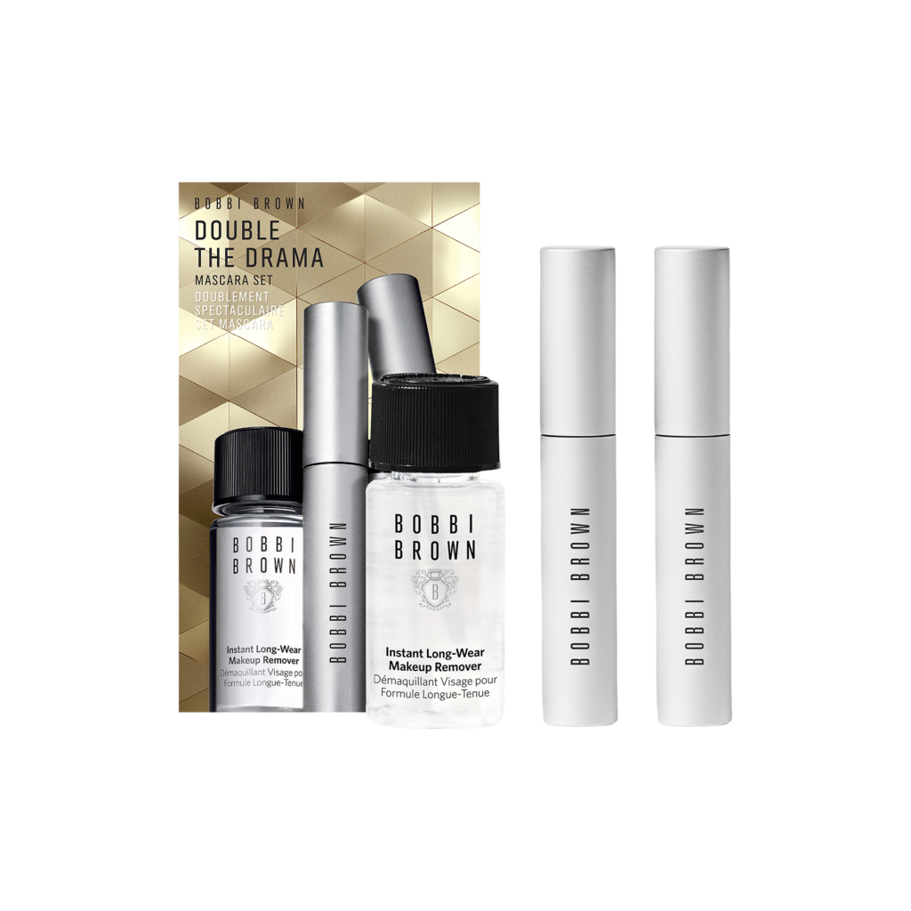 Coffret Double the Drama Mascara : Pour 49 euros, les adeptes de cils dramatiques trouveront dans ce coffret tout le nécessaire pour un regard de braise, facile à démaquiller grâce au mini Instant Long-Wear Makeup Remover.