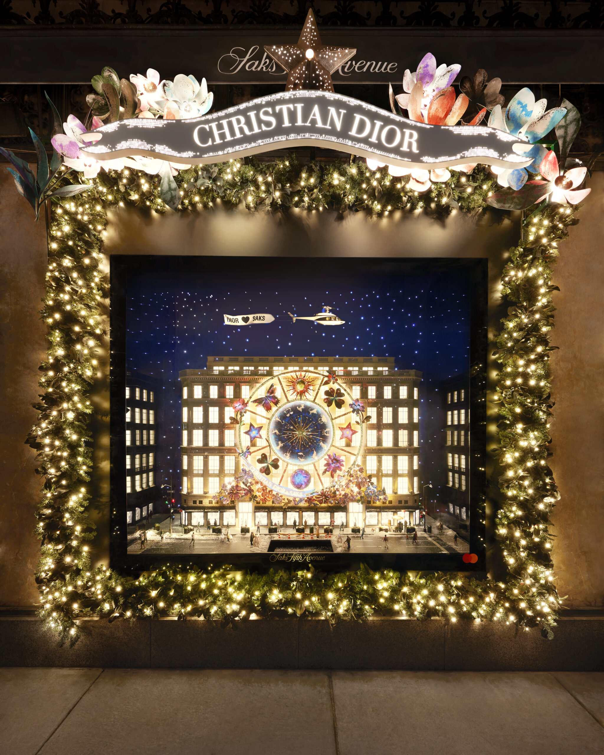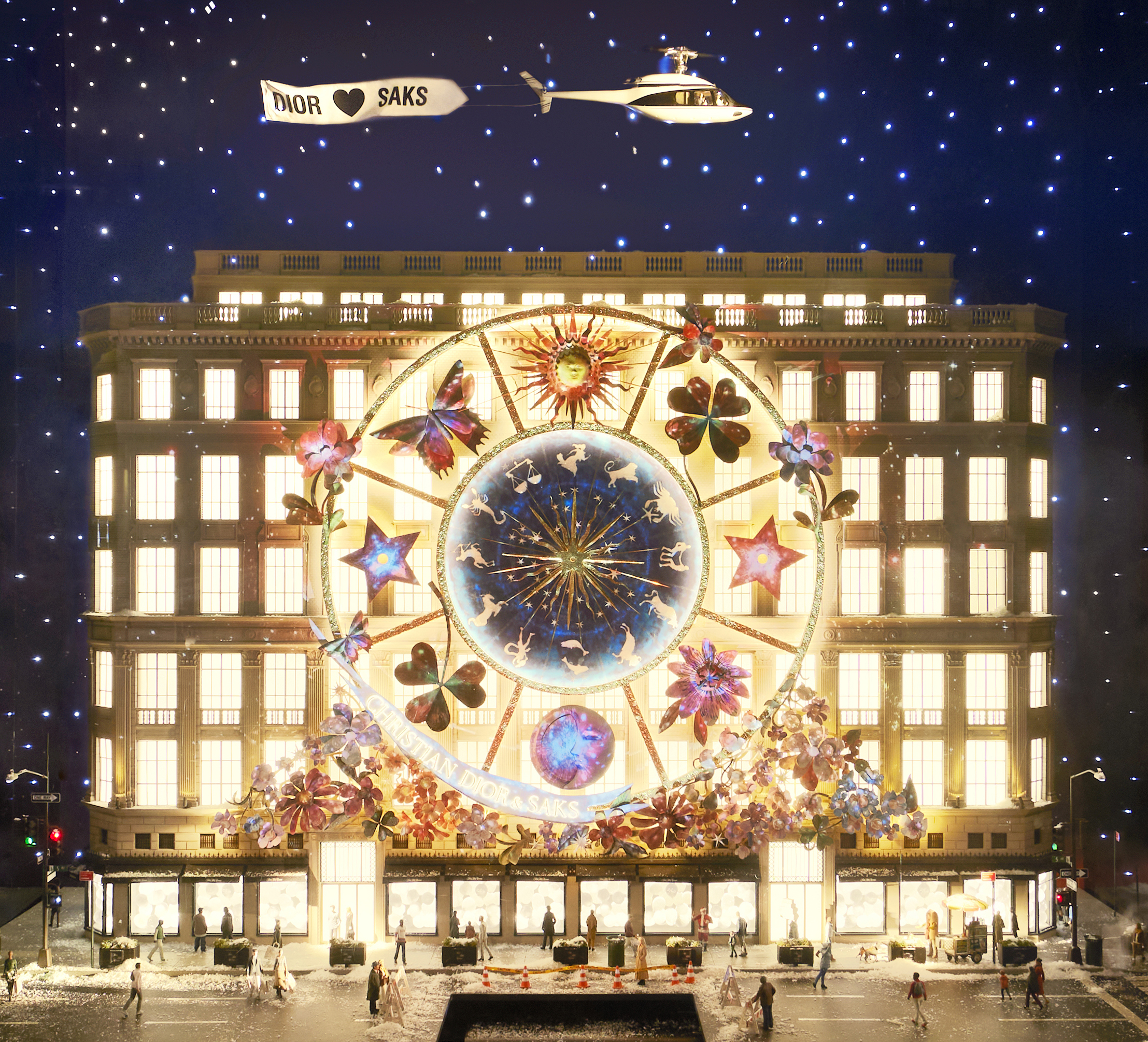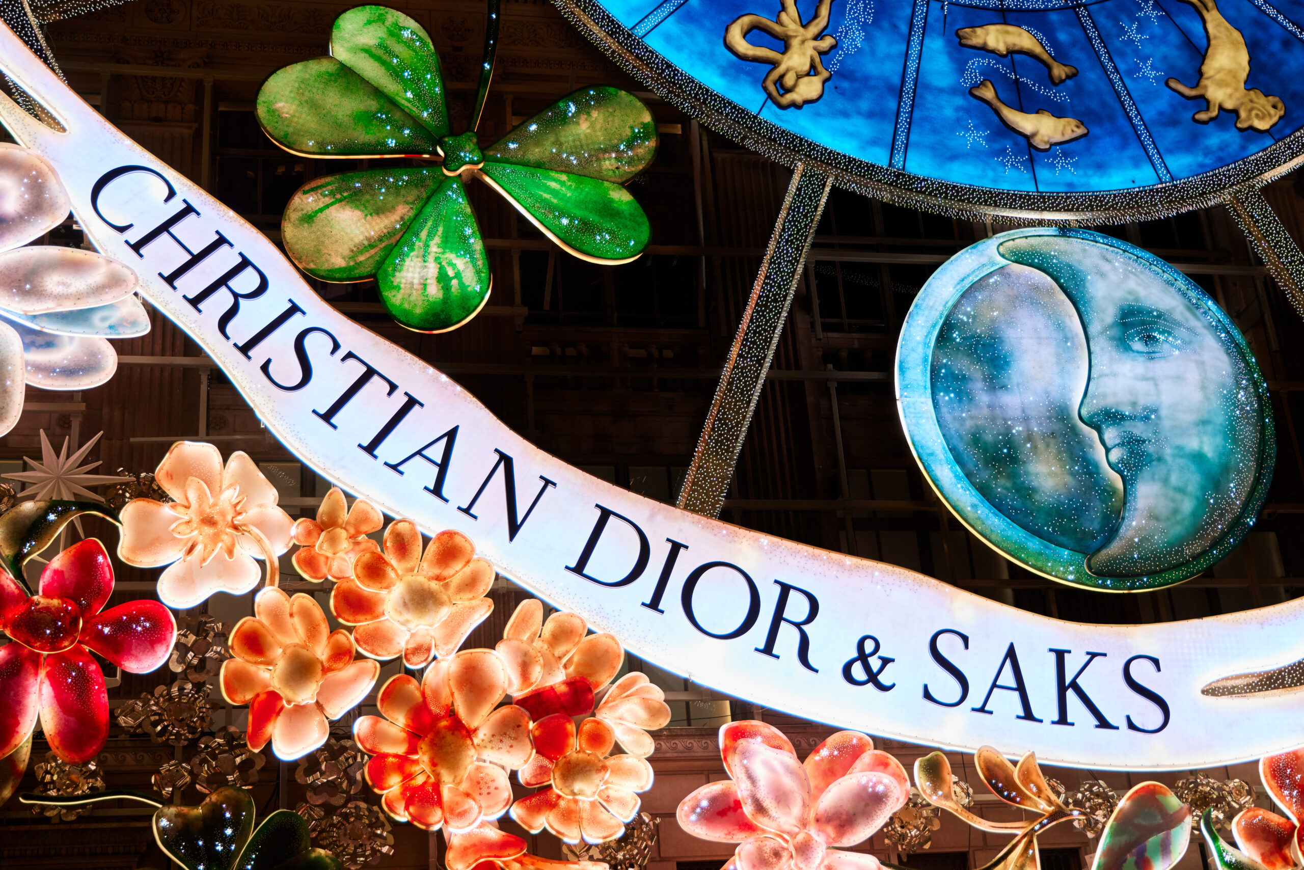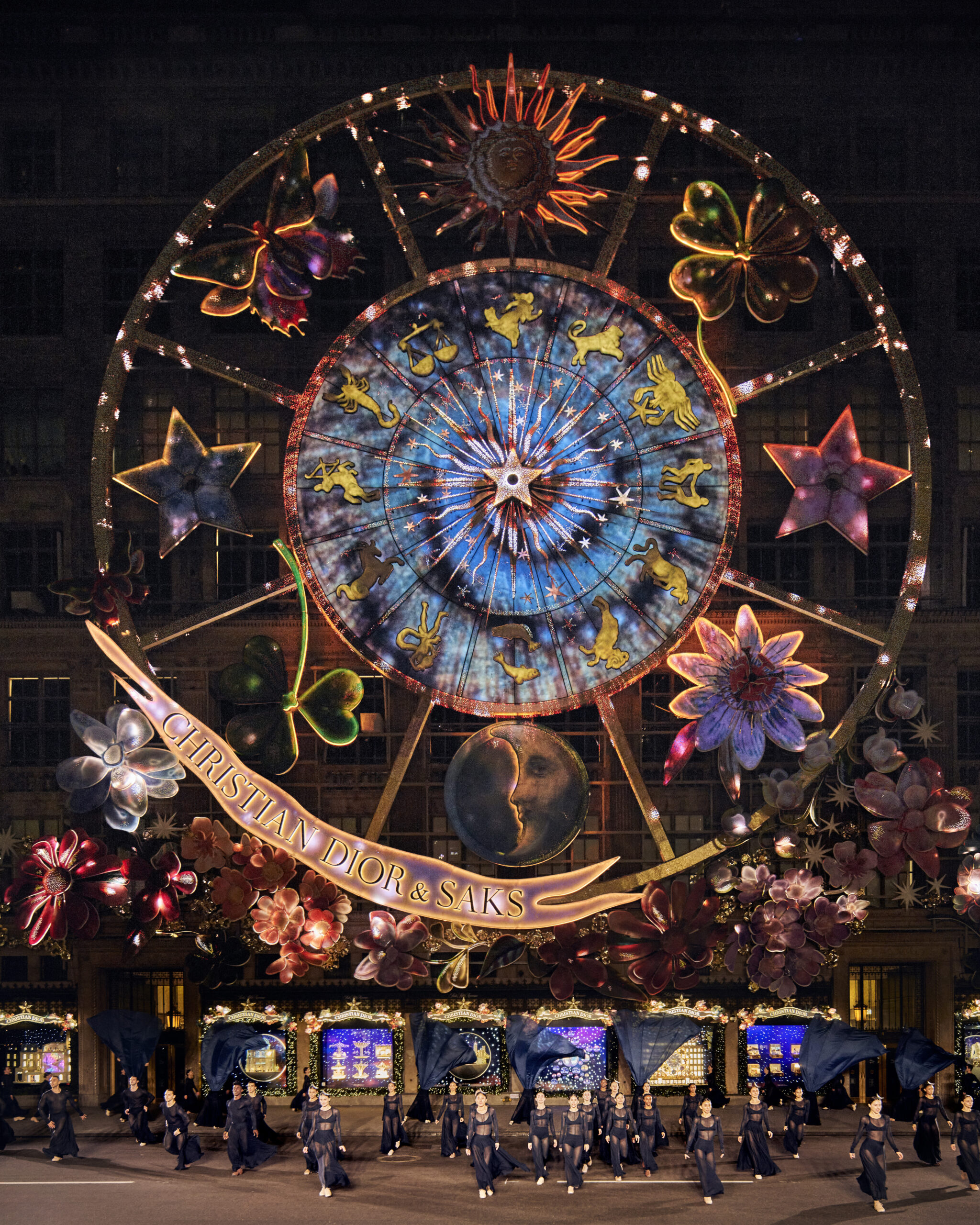 Du 20 novembre 2023 au 5 janvier 2024, la façade de Saks Fifth Avenue devient l’écrin d’une installation fabuleuse, mettant en lumière les codes emblématiques de Dior. Une roue de la Fortune géante, ornée d’étoiles, de trèfles et des signes du zodiaque, crée un décor féerique, animé chaque soir par des jeux de lumière spectaculaires. Cette mise en scène, pensée par Maria Grazia Chiuri et l’artiste Pietro Ruffo pour le défilé Dior croisière 2024, réinterprète l’essence créative de Dior dans une chorégraphie céleste.