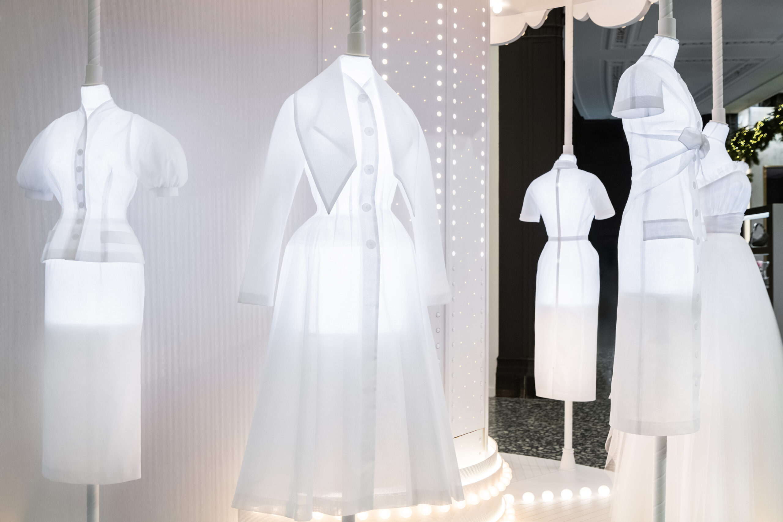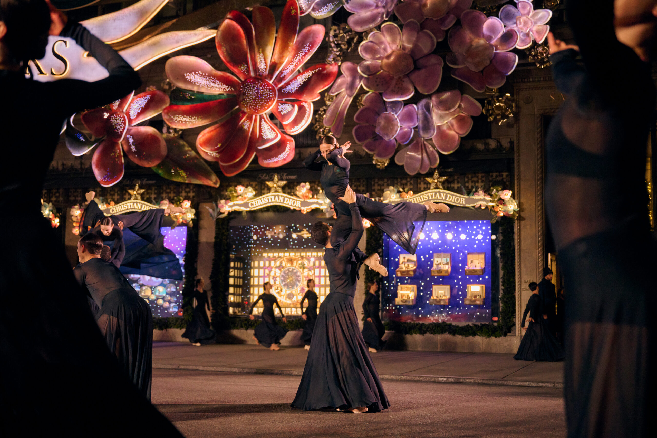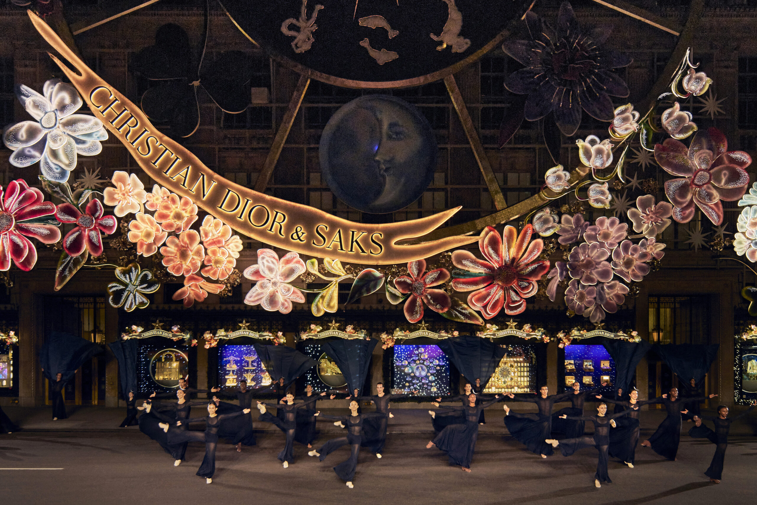 Les vitrines de Saks, ornées de la signature « Christian Dior », se transforment en petits théâtres magiques. Chaque vitrine raconte une partie de l’histoire de Dior, de son odyssée américaine à ses collections actuelles. Des animations en mapping vidéo ajoutent une dimension supplémentaire à ces scènes, créant un monde enchanté.