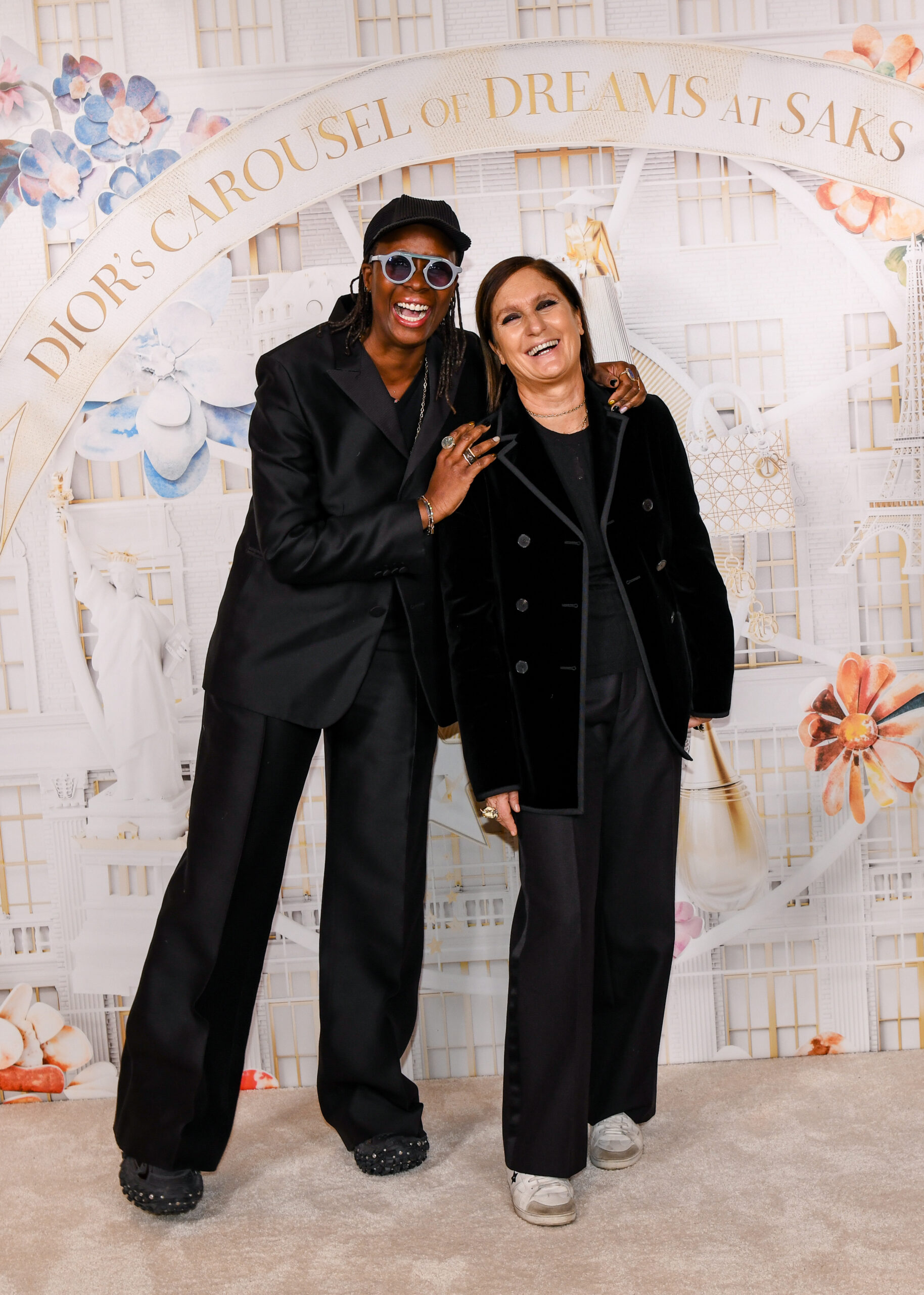 Dior a également créé des pièces exclusives pour Saks, notamment des réinterprétations du Saddle, du Dior Book Tote et des sneakers Walk’n’Dior, ornés d’une toile de Jouy revisitée avec des papillons dorés. La collection Dior Icons de Kim Jones, présentée en avant-première sur Saks.com, redéfinit l’élégance masculine.