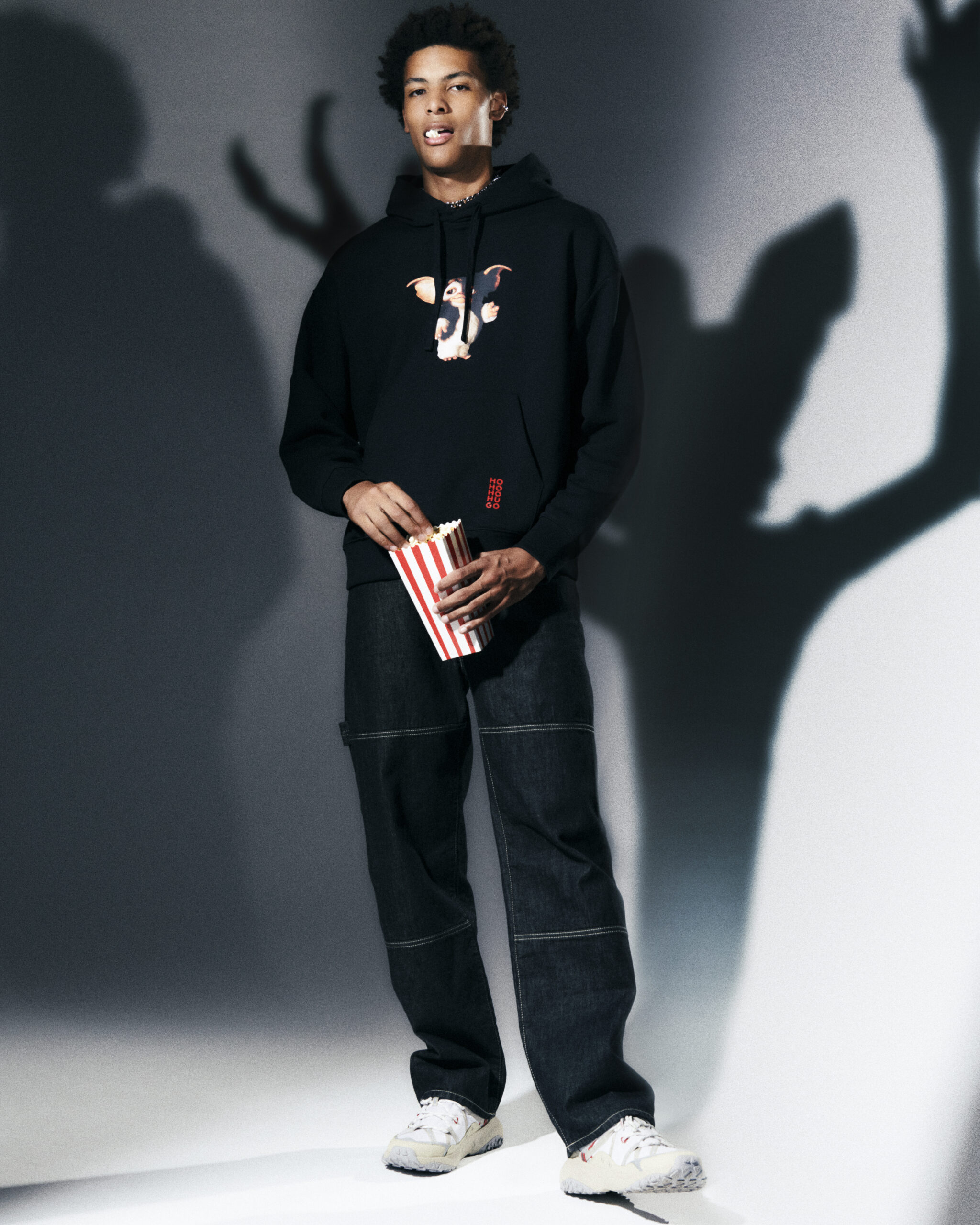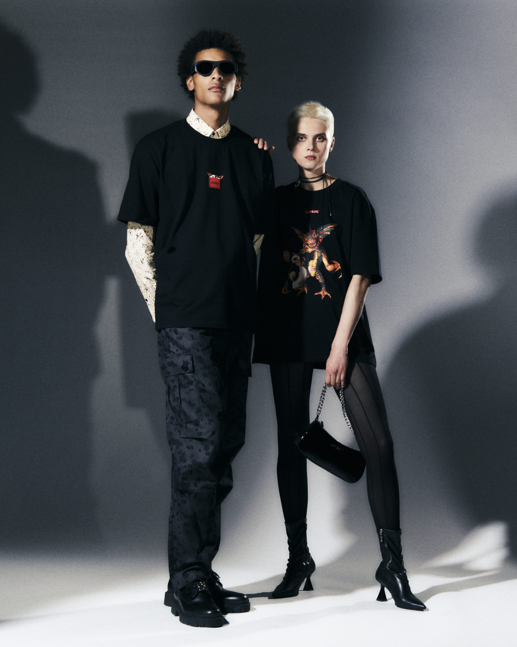 La collection HUGO x Gremlins se compose de deux T-shirts, d’un pull à capuche et d’une casquette de base-ball, tous fabriqués en noir et ornés des créatures emblématiques du film. Chaque pièce joue de manière ludique avec le logo HUGO, ajoutant une touche de nostalgie rétro tout en restant moderne et tendance.