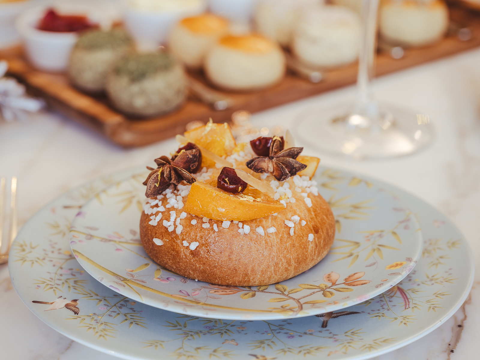 Pour les desserts, la bûche de Noël et la couronne des rois jouent les vedettes, disponibles tout au long de la période festive.