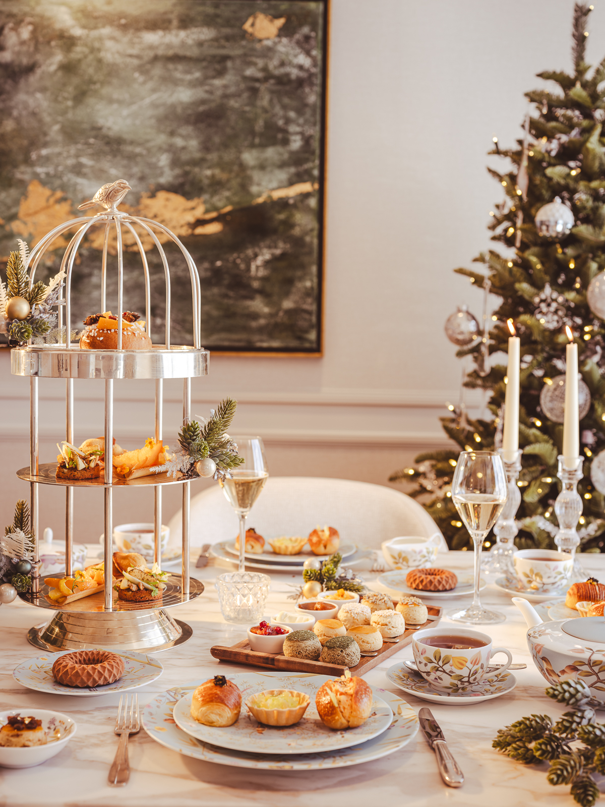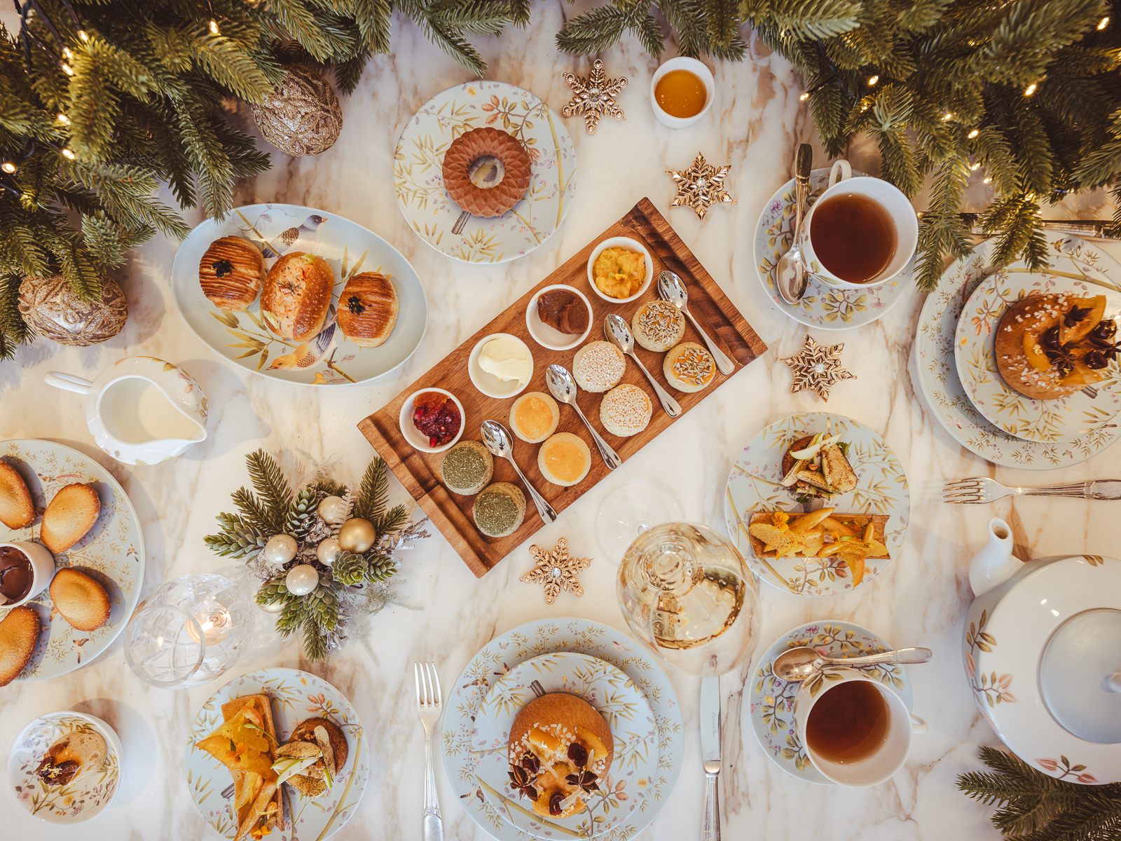 La féérie s’étend aux papilles avec une gastronomie festive, élaborée par des chefs inspirés. Le Carlton Tower Jumeirah offre un Afternoon Tea de Noël à 87€ par personne, où chaque bouchée est une ode aux traditions gourmandes. Les saveurs s’entremêlent, des notes sucrées et salées de la tarte aux châtaignes et aux canneberges, à la sophistication d’une brioche au saumon fumé et caviar, en passant par la chaleur d’une crème brûlée au fromage.
