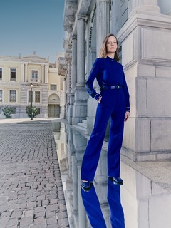 L’approche de ZEUS+ΔIONE est résolument tournée vers l’avenir, proposant un vestiaire varié composé de pièces phares : pantalons, robes, jupes. Pour les femmes, les foulards et les jeux d’asymétries géométriques ajoutent une touche de sophistication, tandis que pour les hommes, les cols en bandeau remplacent les revers traditionnels, apportant simplicité et modernité.