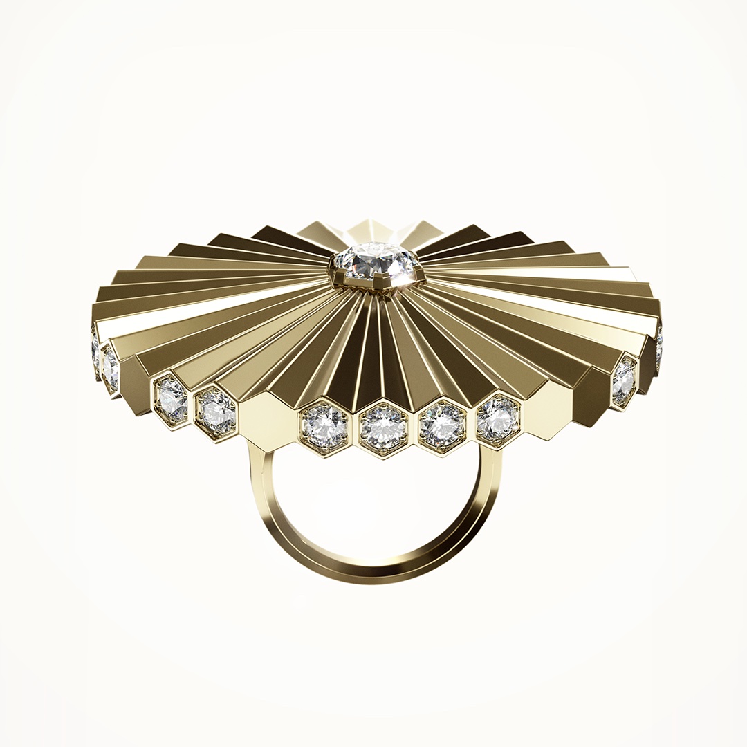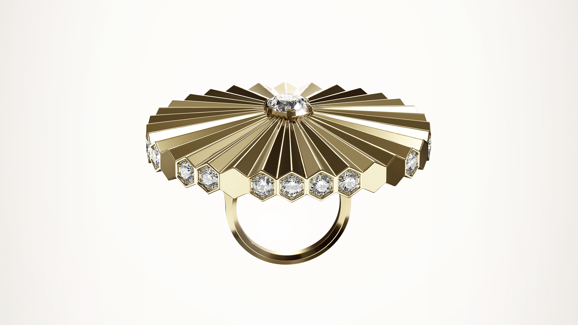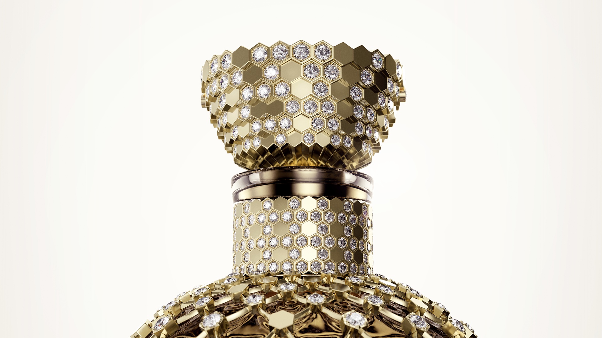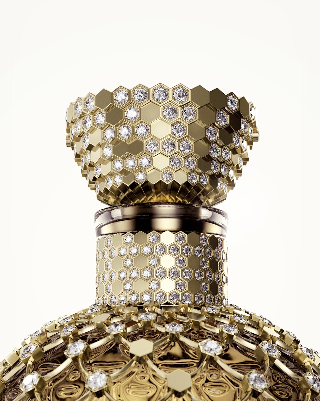 Afin de magnifier cette édition exceptionnelle, Chaumet décore le flacon d’une parure flamboyante composée de 658 grammes d’or et 336 diamants ronds, totalisant un poids de 55 carats. Mais la surprise ne s’arrête pas là. Le capot révèle une bague éblouissante couronnée d’un majestueux diamant de 2 carats. La pièce est finalisée par une plaque d’or ornée d’une abeille diamantée.