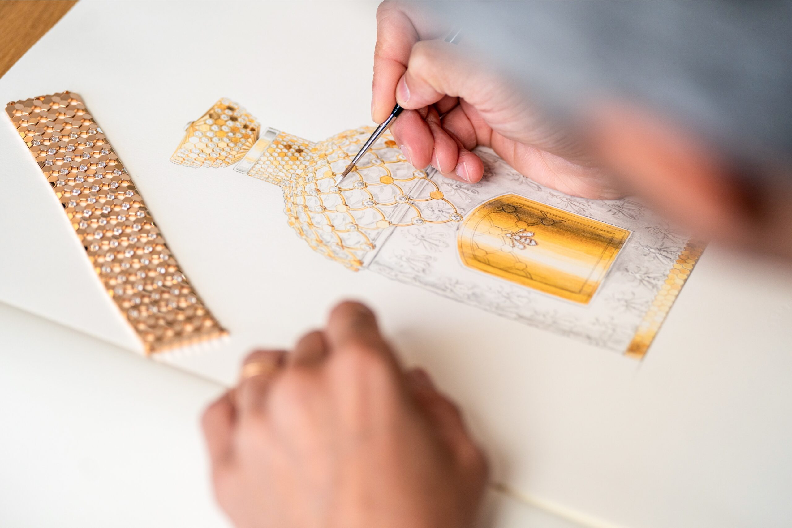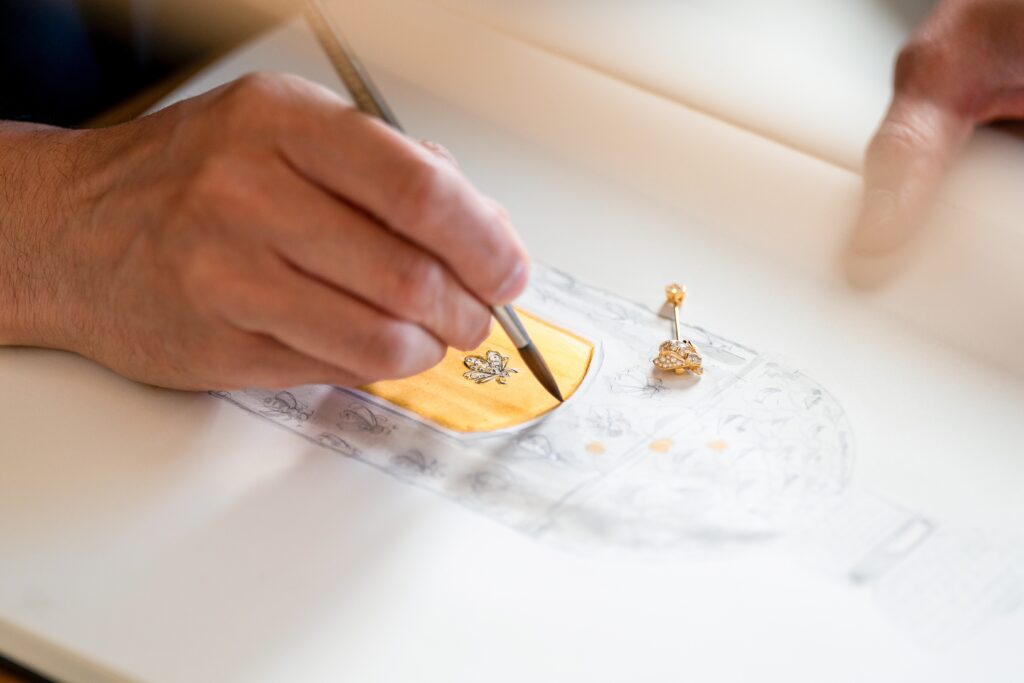 L’abeille, cher aux deux maisons, est au cœur de cette création. C’est ce délicat insecte, symbole de royauté et de diligence, qui unit ces deux géants dans une célébration du luxe absolu. Dans cette œuvre unique, l’abeille est non seulement un symbole, mais aussi un acteur clé dans le design.