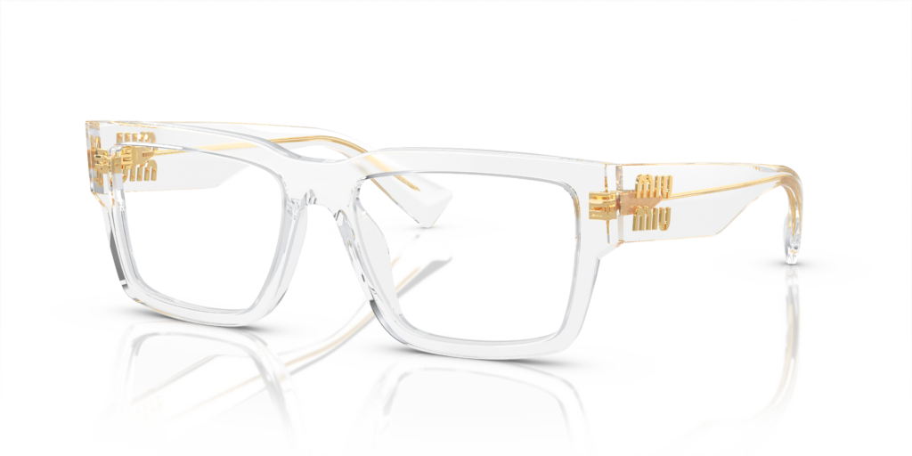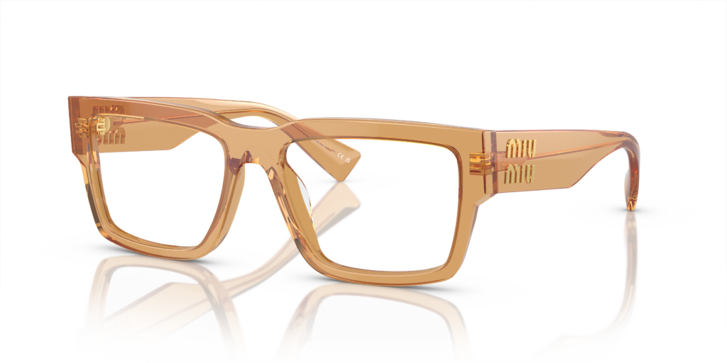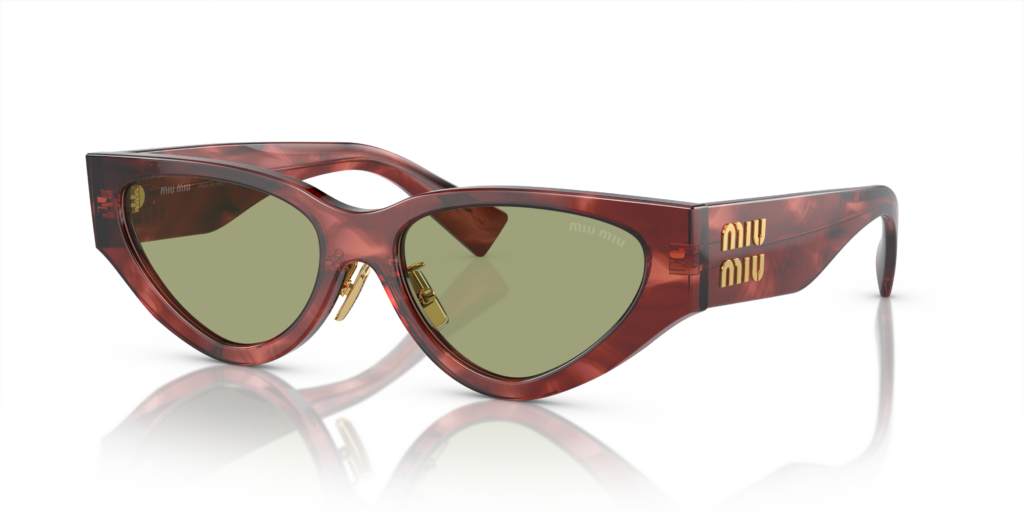Le dernier né, le modèle optique VMU02X, est une déclaration audacieuse. Il mêle des volumes amples à une esthétique géométrique, le tout siglé du logo vertical Miu Miu, subtilement réduit mais toujours aussi iconique. Les options de couleur, dont le Cristal Amarante et le Cristal Nèfle, témoignent de la volonté de la marque de s’aventurer en dehors des sentiers battus.