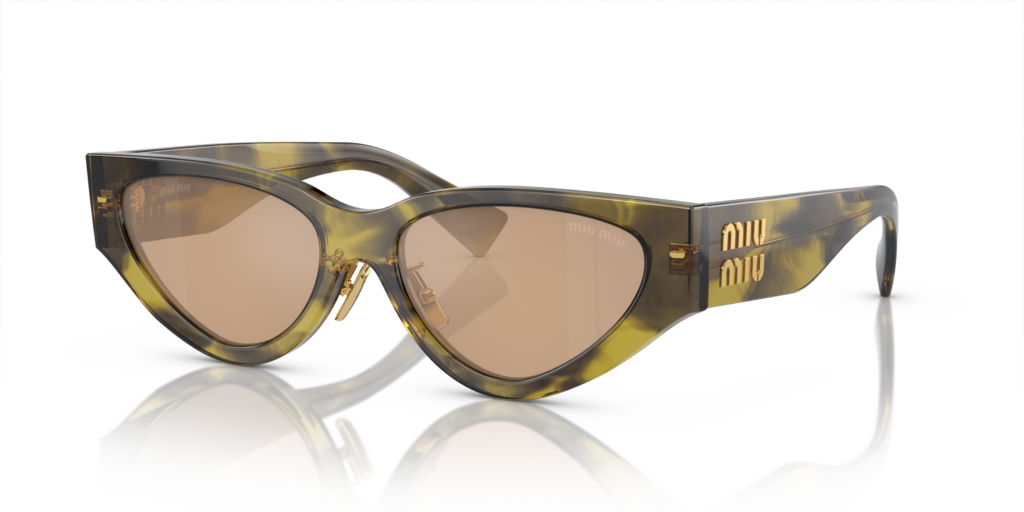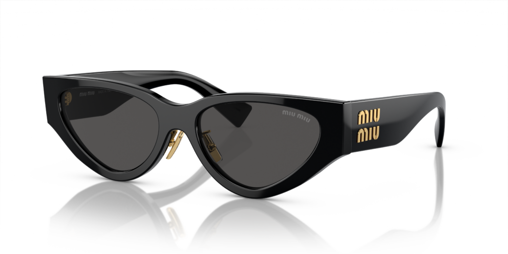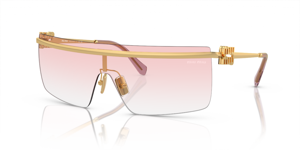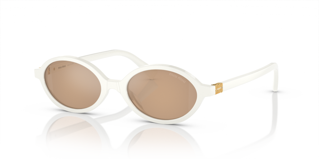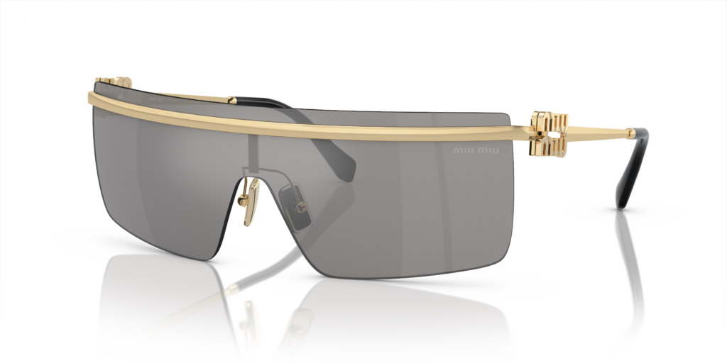 Dans la collection solaire, le modèle SMU50Z parvient à capturer la quintessence de la féminité moderne avec une monture enveloppante. Les verres percés sont rehaussés par une barre métallique nette, en parfaite harmonie avec les fines branches ornées du logo vertical Miu Miu. Disponible en diverses teintes métalliques comme l’Or, l’Or Pâle et l’Argent, ce modèle offre un éventail de choix pour les amatrices de glamour.
