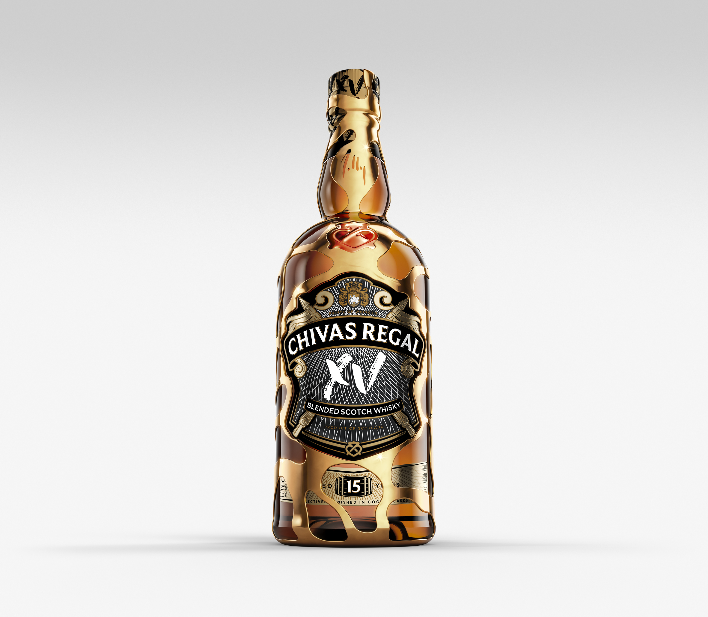 Dolly Cohen, renommée pour ses créations joaillières audacieuses, prête son talent artistique pour concevoir un écrin doré pour la bouteille Chivas XV. Inspirée par le blend sophistiqué de Chivas, ses formes organiques incarnent une fusion entre tradition et modernité, un hommage au savoir-faire et à l’innovation.