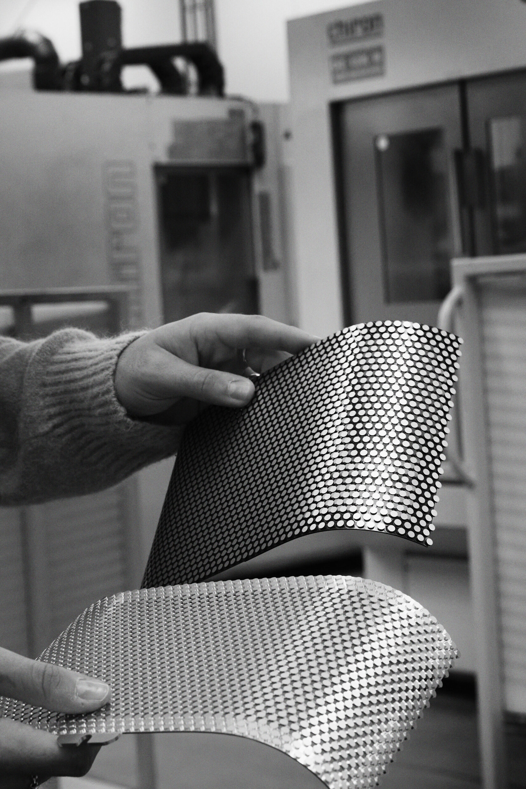 Imaginée et conçue au sein de la « Factory 5 » de Struer, au Danemark, la grille de la Beosound A5 Spaced Aluminium est une œuvre d’art en elle-même. La pièce, façonnée et peaufinée à la main, est composée de plus de 3 500 disques d’aluminium soigneusement agencés pour créer une façade qui semble flotter. « Depuis de nombreuses années, nous travaillons avec différents motifs circulaires pour les grilles de nos enceintes. C’est devenu une signature. Ici, nous déployons un nouveau style », déclare Michael Henriksson, Vice-président du marketing produit.