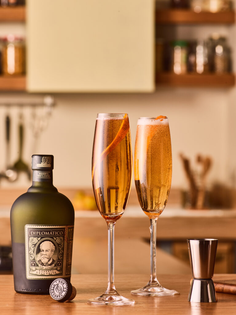 Pour célébrer les fêtes de fin d’année, Diplomatico propose une interprétation du Champagne Cocktail où le Reserva Exclusiva s’allie au champagne, au pineau des Charentes, à l’orange et aux épices pour une expérience inédite.