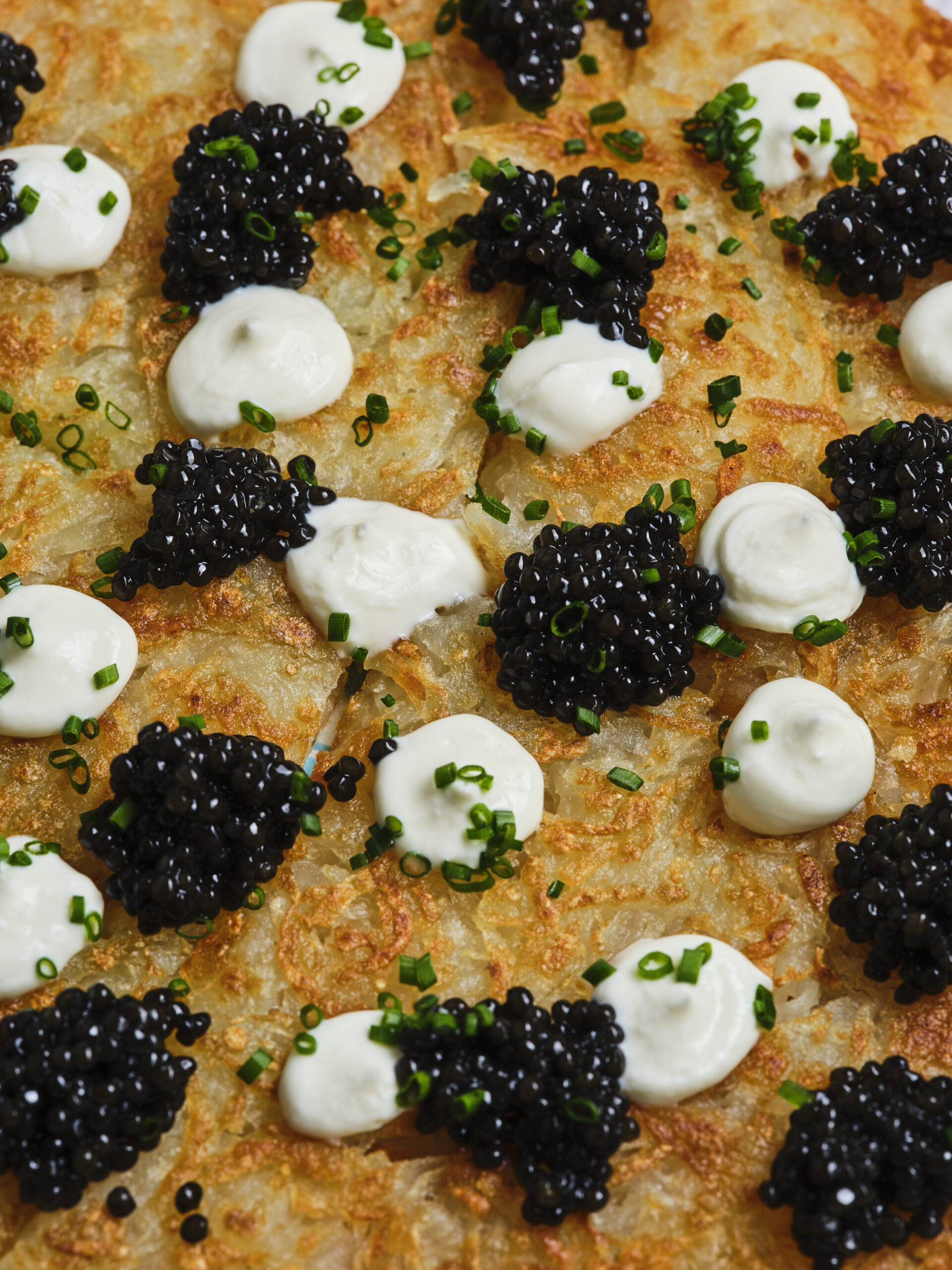 Cette œuvre culinaire est conçue pour éblouir les sens et combler les palais les plus exigeants. Chaque bouchée est une symphonie de saveurs, où la douceur de la crème fraîche rencontre la richesse délicate du caviar. Une expérience si exquise qu’elle mérite d’être accompagnée de champagne ou de vodka, ajoutant une note festive à chaque dégustation.