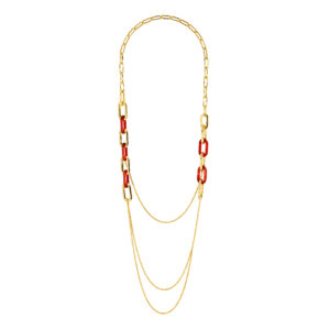 La collection festive de Lalique brille par son élégance et son originalité. Parmi les pièces maîtresses, le sautoir Empreinte Animale se distingue. Ce bijou, mélange harmonieux de cristal rouge géométrique écailleux et de laiton plaqué or jaune 18 carats, offre une allure à la fois moderne et intemporelle. Disponible pour 1 990 €, ce sautoir est une expression de luxe contemporain, mêlant tradition et innovation.