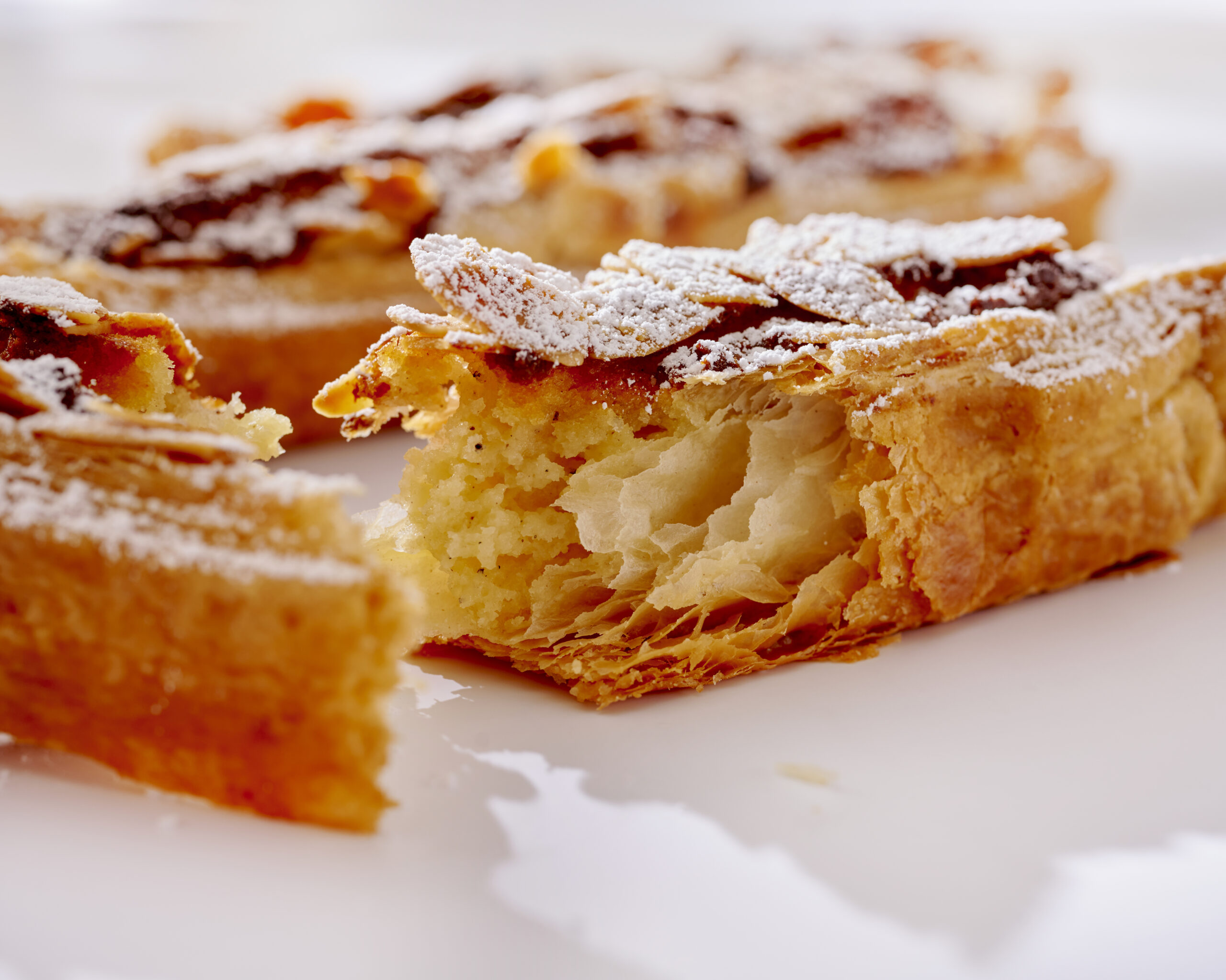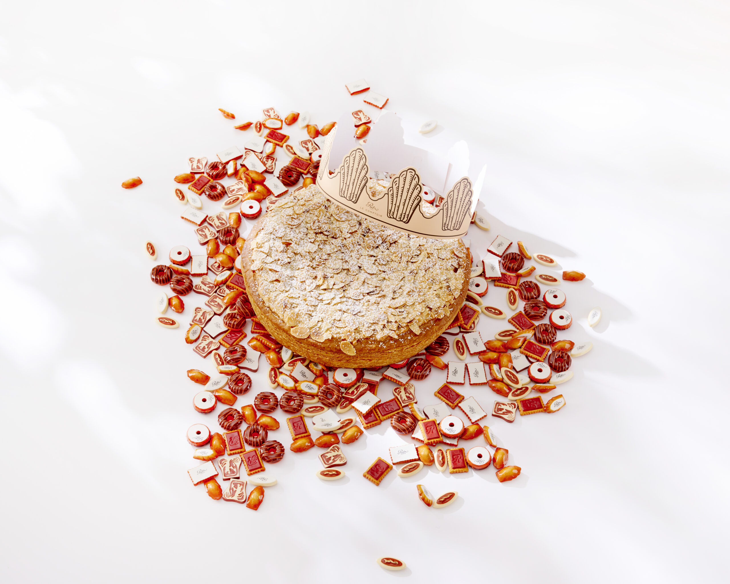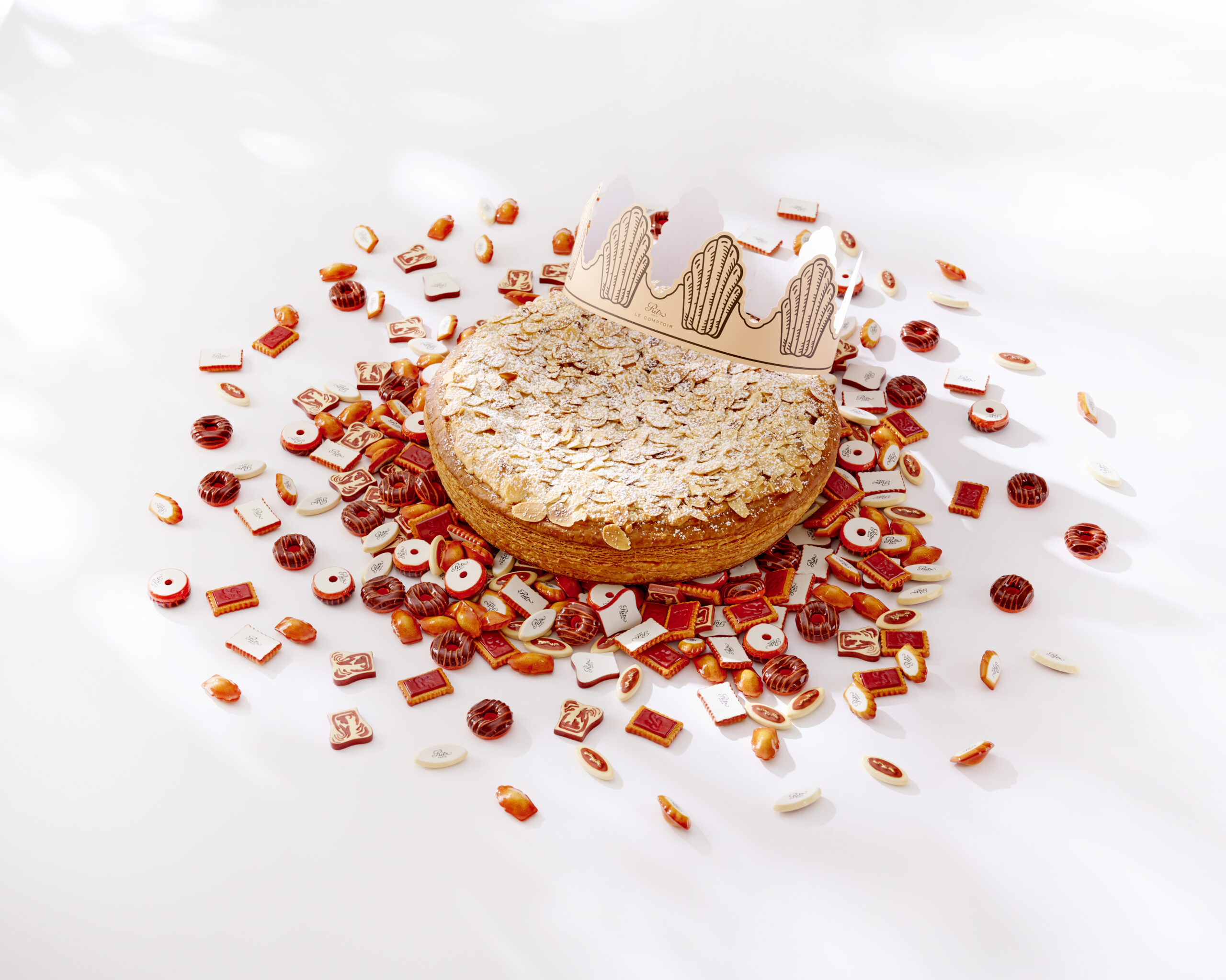 La Galette des Rois du Ritz Paris Le Comptoir, une création de François Perret, célèbre la tradition de l’Épiphanie avec une touche de modernité et d’innovation. Cette galette, conçue avec un feuilletage inversé au beurre d’Etrez, offre une expérience gustative unique grâce à sa texture à la fois croustillante et fondante. La frangipane à l’amande, généreuse et riche, est le cœur de cette création, révélant la profondeur et la délicatesse de ce fruit sec. Couronnée d’une macaronade délicate, elle est sublimée par des amandes effilées toastées qui ajoutent une touche croquante et dorée.