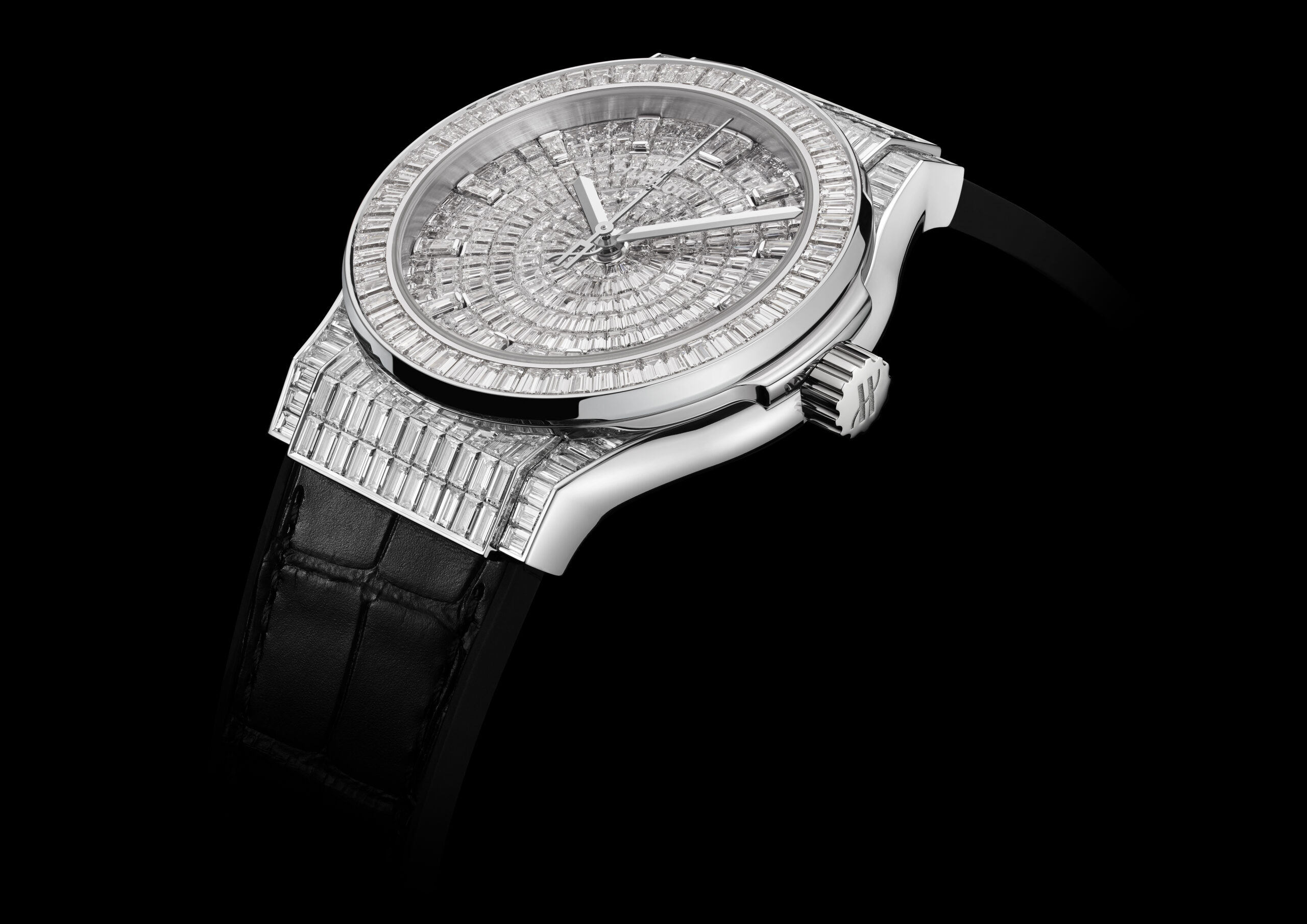 « Un travail dans lequel la création artistique joaillère et notre savoir-faire horloger s’entrelacent pour donner naissance à une œuvre d’art prenant la forme d’une montre bijou ». Ces paroles résument non seulement la Classic Fusion High Jewellery 2023 mais aussi la philosophie de Hublot, qui a toujours été à la croisée des mondes, fusionnant tradition et innovation.
