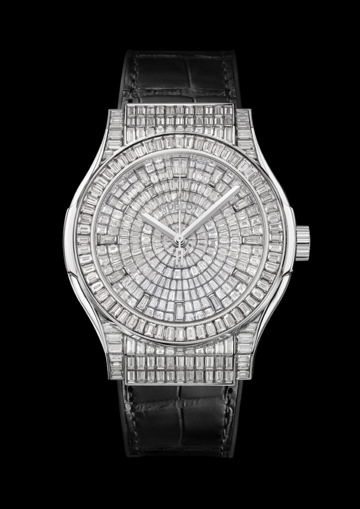 Chaque montre est une déclaration, et lorsqu’il s’agit de haute joaillerie, cette déclaration est grandiose. La maison horlogère suisse Hublot, réputée pour ses innovations sans fin en matière de design et de technologie, présente sa dernière merveille: la Classic Fusion High Jewellery 42 mm. Dans cette création, la splendeur sertie de diamants s’harmonise avec la sophistication du métal précieux pour donner naissance à une montre qui transcende le temps.