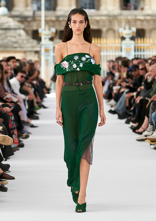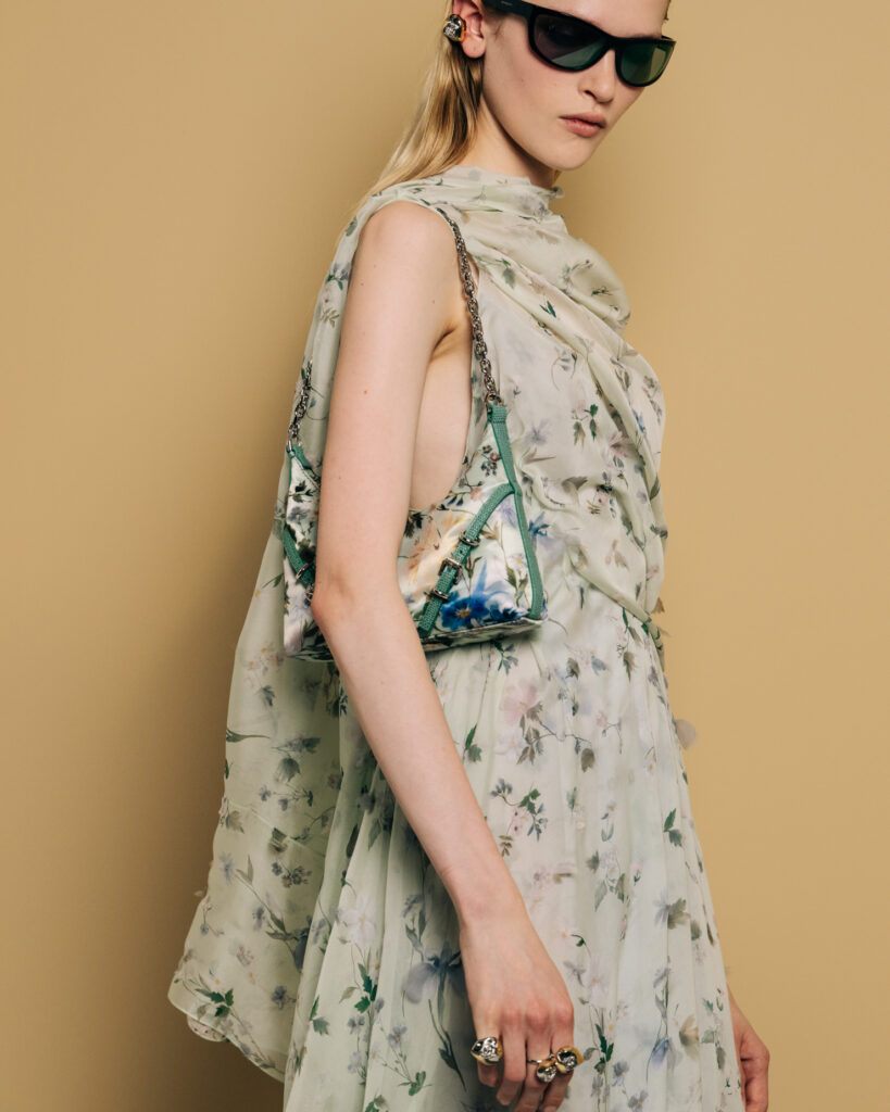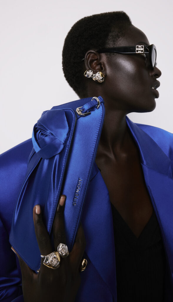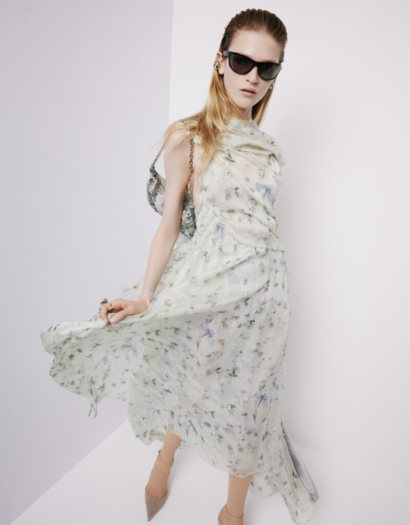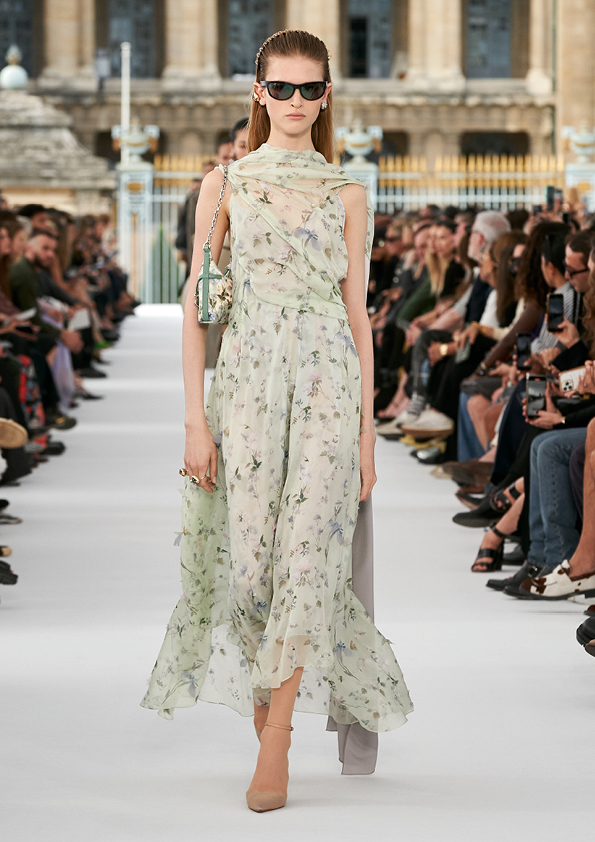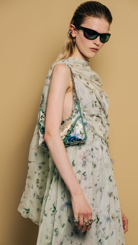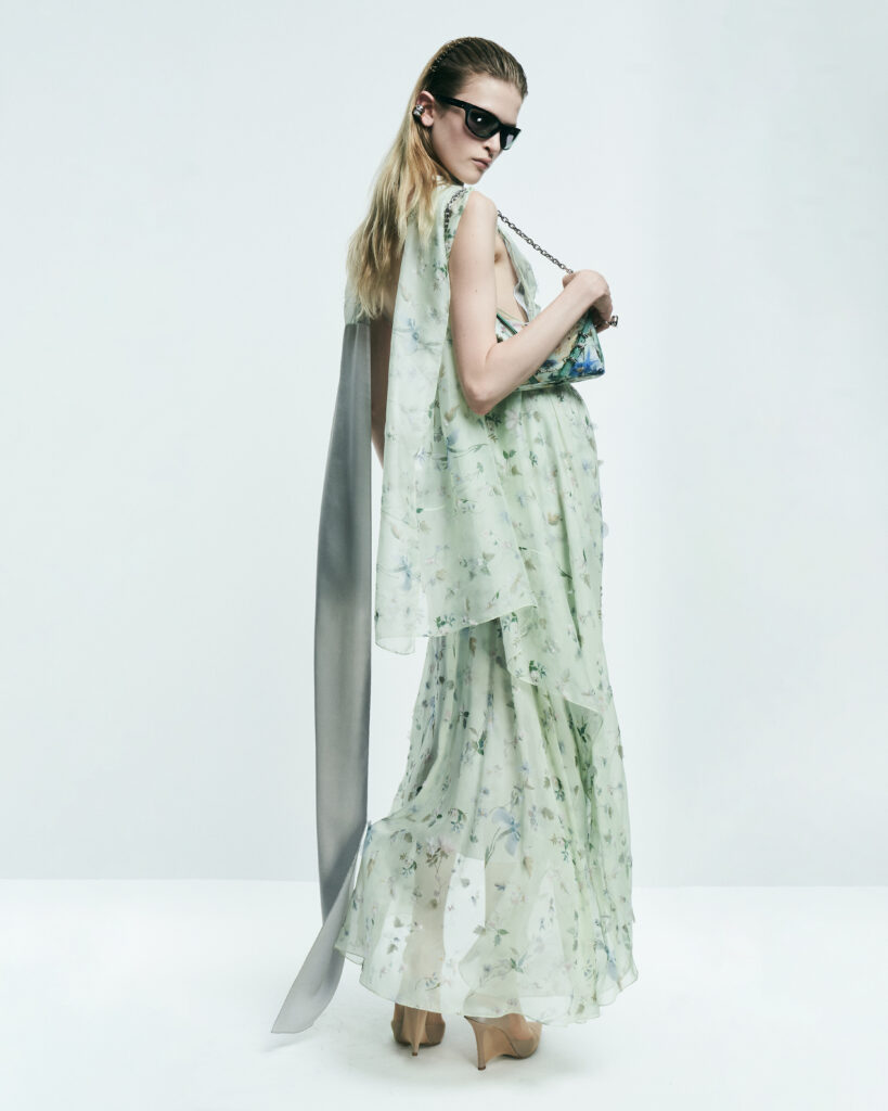 L’inspiration de Matthew M. Williams pour cette collection vient de la passion d’Hubert de Givenchy pour les jardins. Les fleurs sont un motif central, se matérialisant dans les broderies, les motifs peints à la main, les imprimés et les bijoux en métal sculpté.