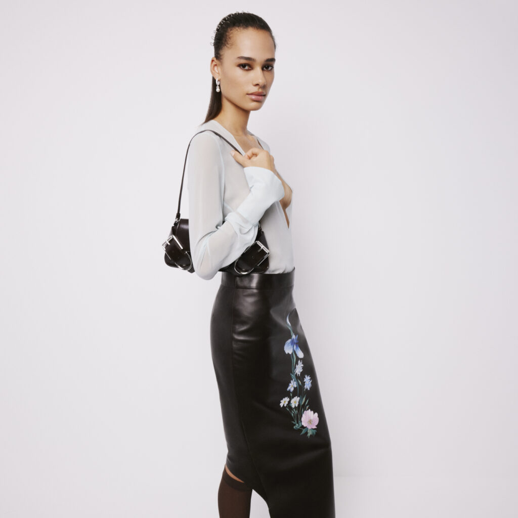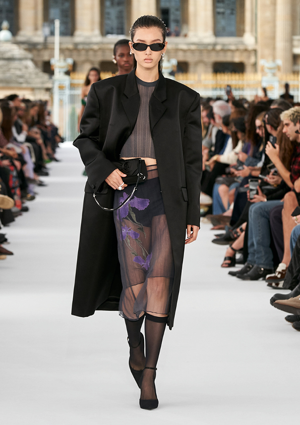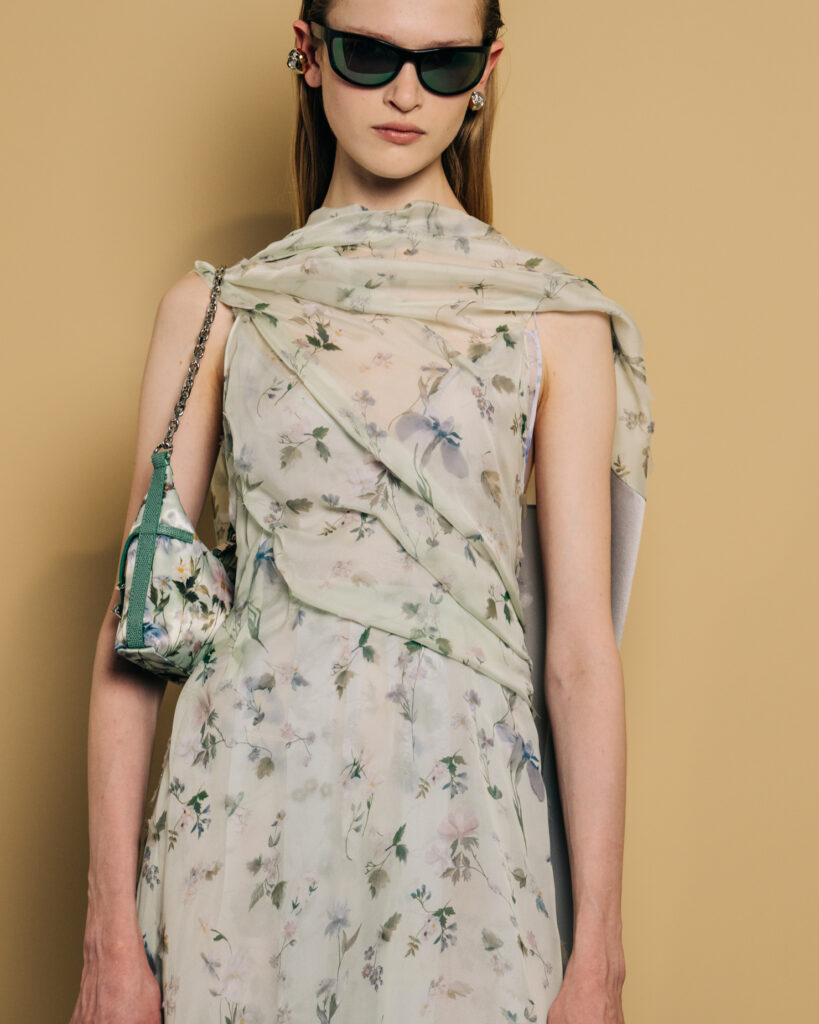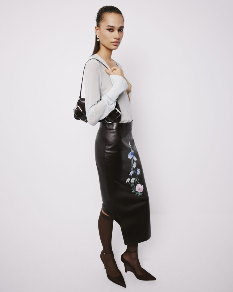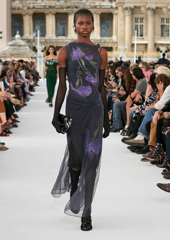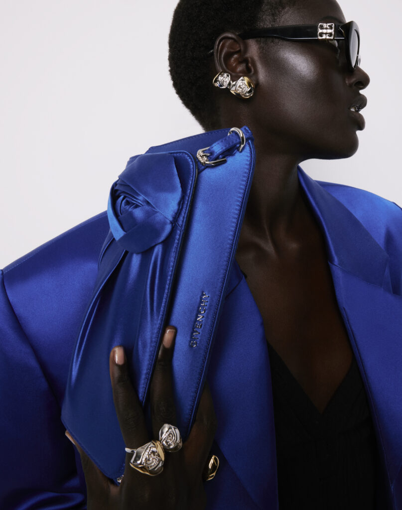 L’inspiration de Matthew M. Williams pour cette collection vient de la passion d’Hubert de Givenchy pour les jardins. Les fleurs sont un motif central, se matérialisant dans les broderies, les motifs peints à la main, les imprimés et les bijoux en métal sculpté.