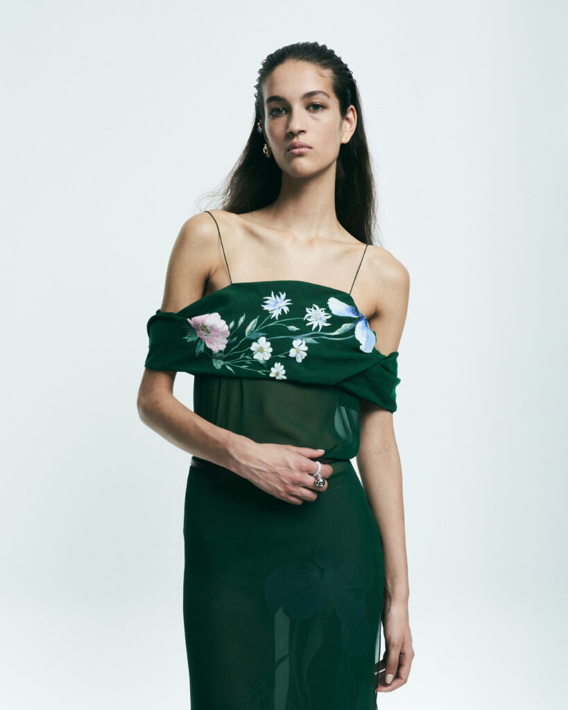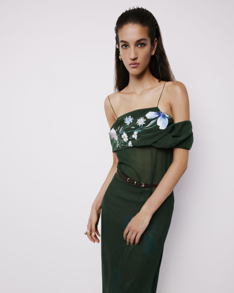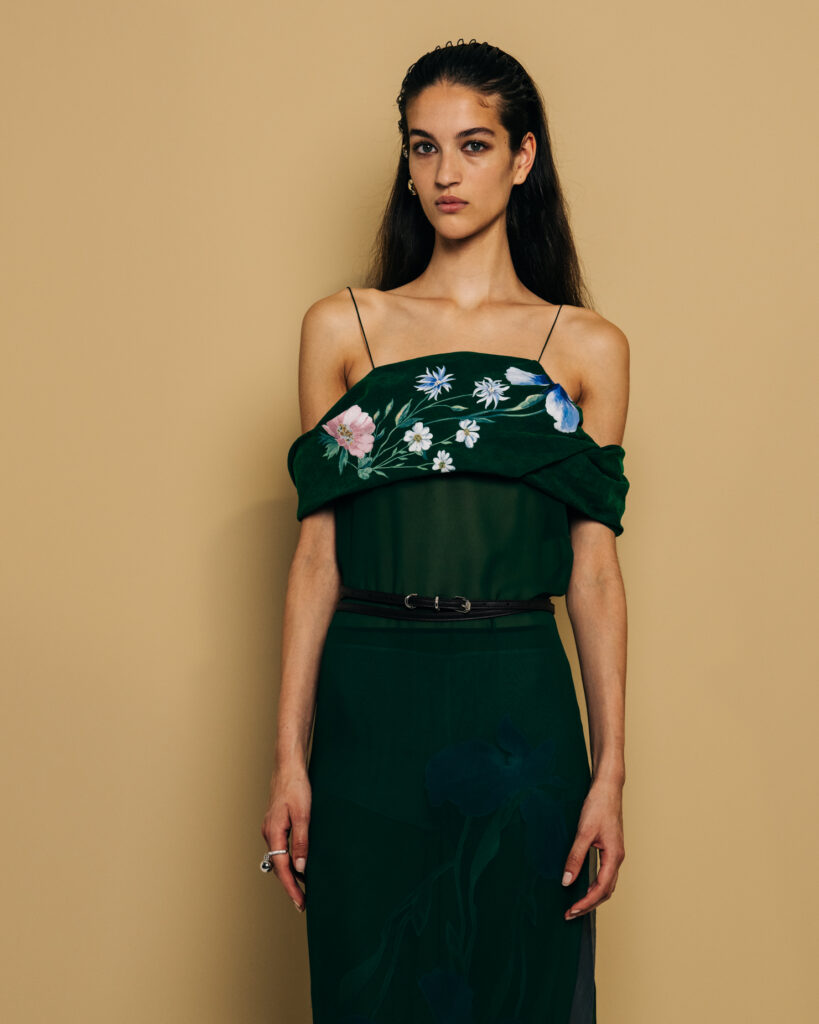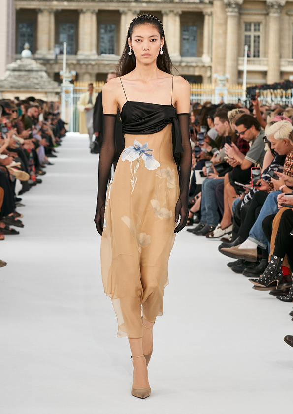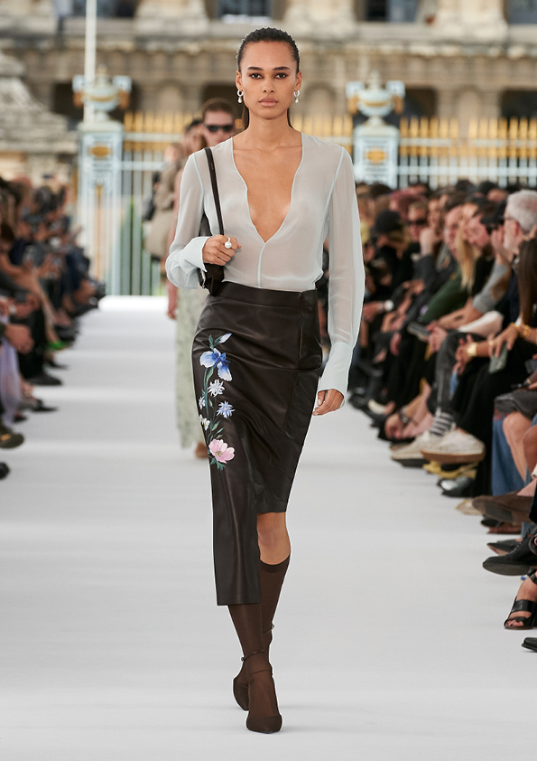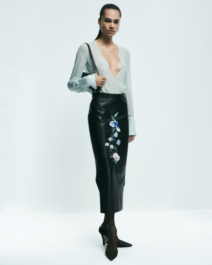 L’inspiration de Matthew M. Williams pour cette collection vient de la passion d’Hubert de Givenchy pour les jardins. Les fleurs sont un motif central, se matérialisant dans les broderies, les motifs peints à la main, les imprimés et les bijoux en métal sculpté.