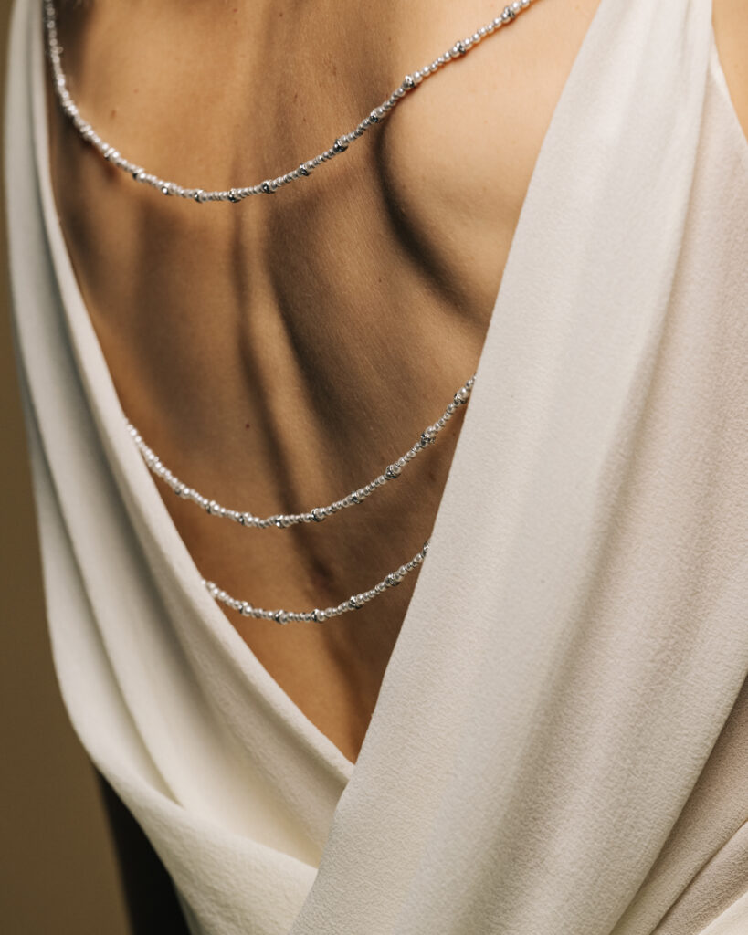 - Chokers en cristal, boucles d’oreilles, manchettes et bagues : Ornés de pendentifs de perles uniques.