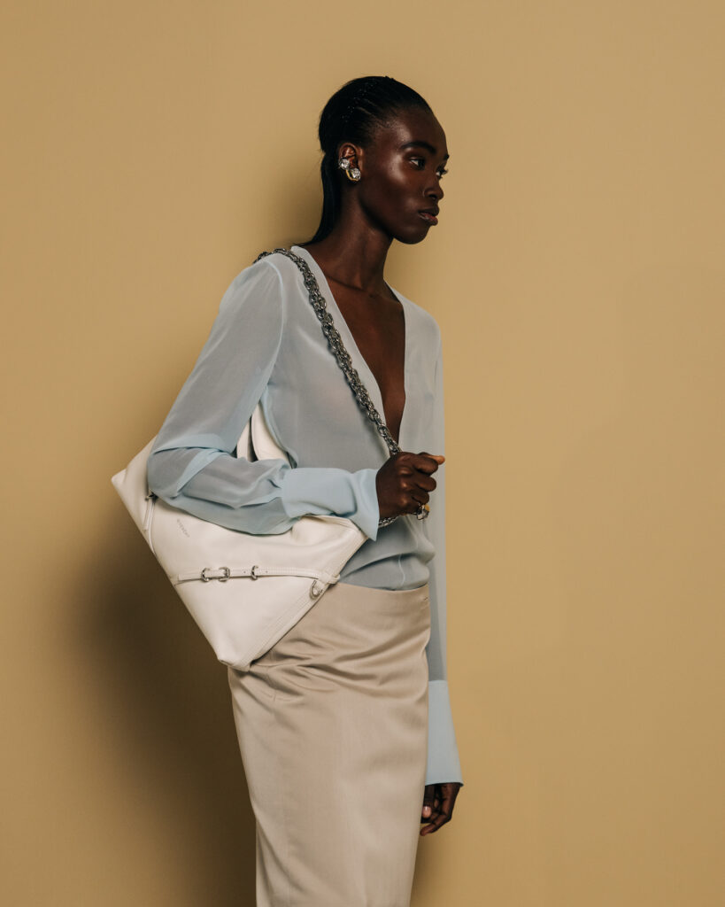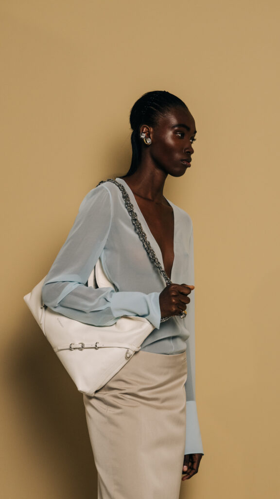 La collection, créée sous la direction artistique de Matthew M. Williams, est un hommage à l’élégance naturelle et instinctive. Fondée sur des codes séducteurs de sophistication, la collection évoque le drapé d’une robe en chiffon, la courbe d’un col sculpté, et la grâce d’une fleur peinte à la main.