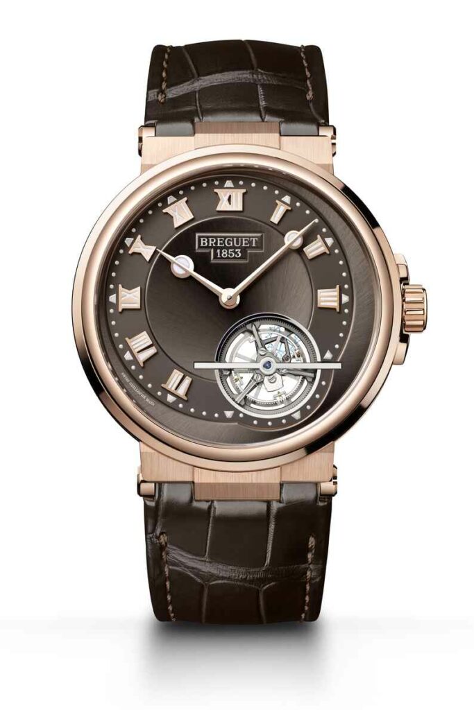 Mais la magie de Breguet ne se cantonne pas à la seule mécanique. L’esthétisme de la montre est tout aussi impressionnant. Avec son cadran soleillé arborant les teintes ardoise ou bleu marine selon le modèle, chaque détail a été pensé pour mettre en valeur le Tourbillon qui, fidèle à son héritage, continue de défier la gravité et le temps par sa rotation hypnotique d’une minute.