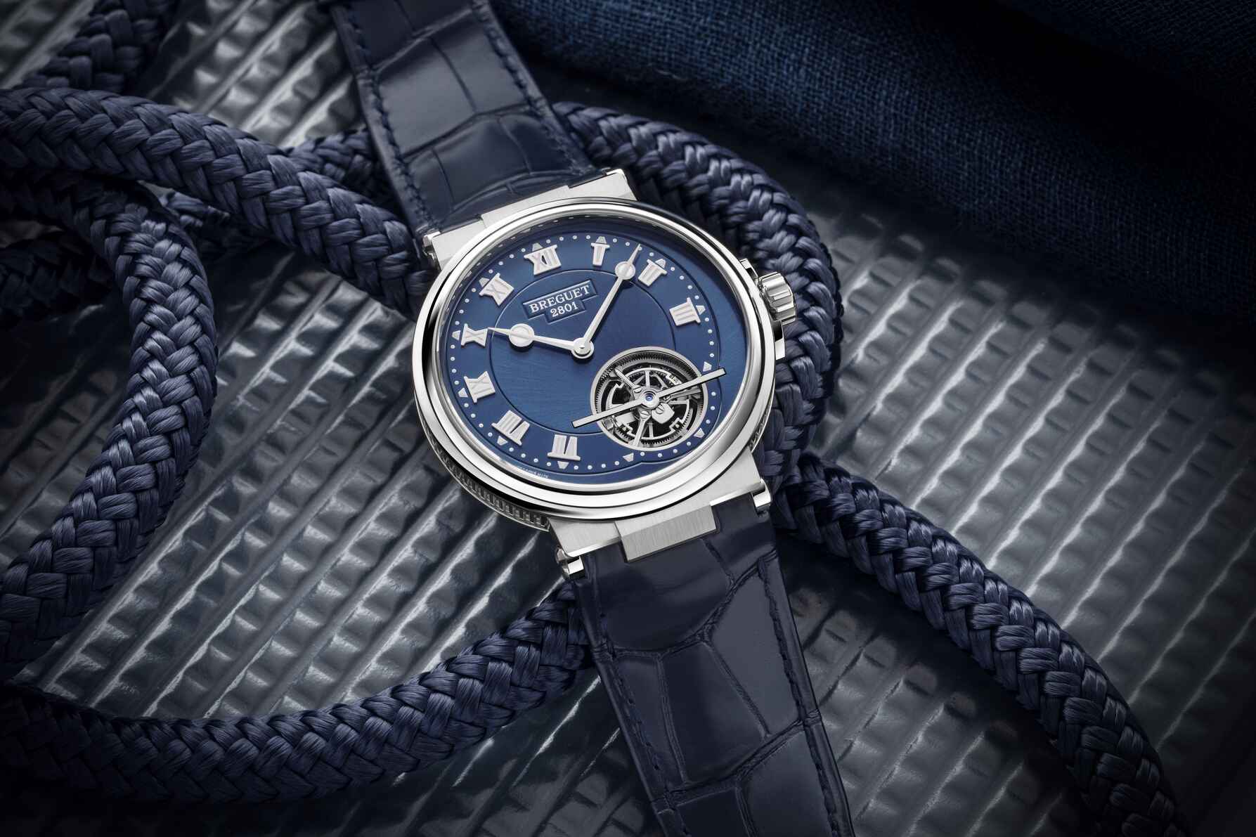 Mais la magie de Breguet ne se cantonne pas à la seule mécanique. L’esthétisme de la montre est tout aussi impressionnant. Avec son cadran soleillé arborant les teintes ardoise ou bleu marine selon le modèle, chaque détail a été pensé pour mettre en valeur le Tourbillon qui, fidèle à son héritage, continue de défier la gravité et le temps par sa rotation hypnotique d’une minute.