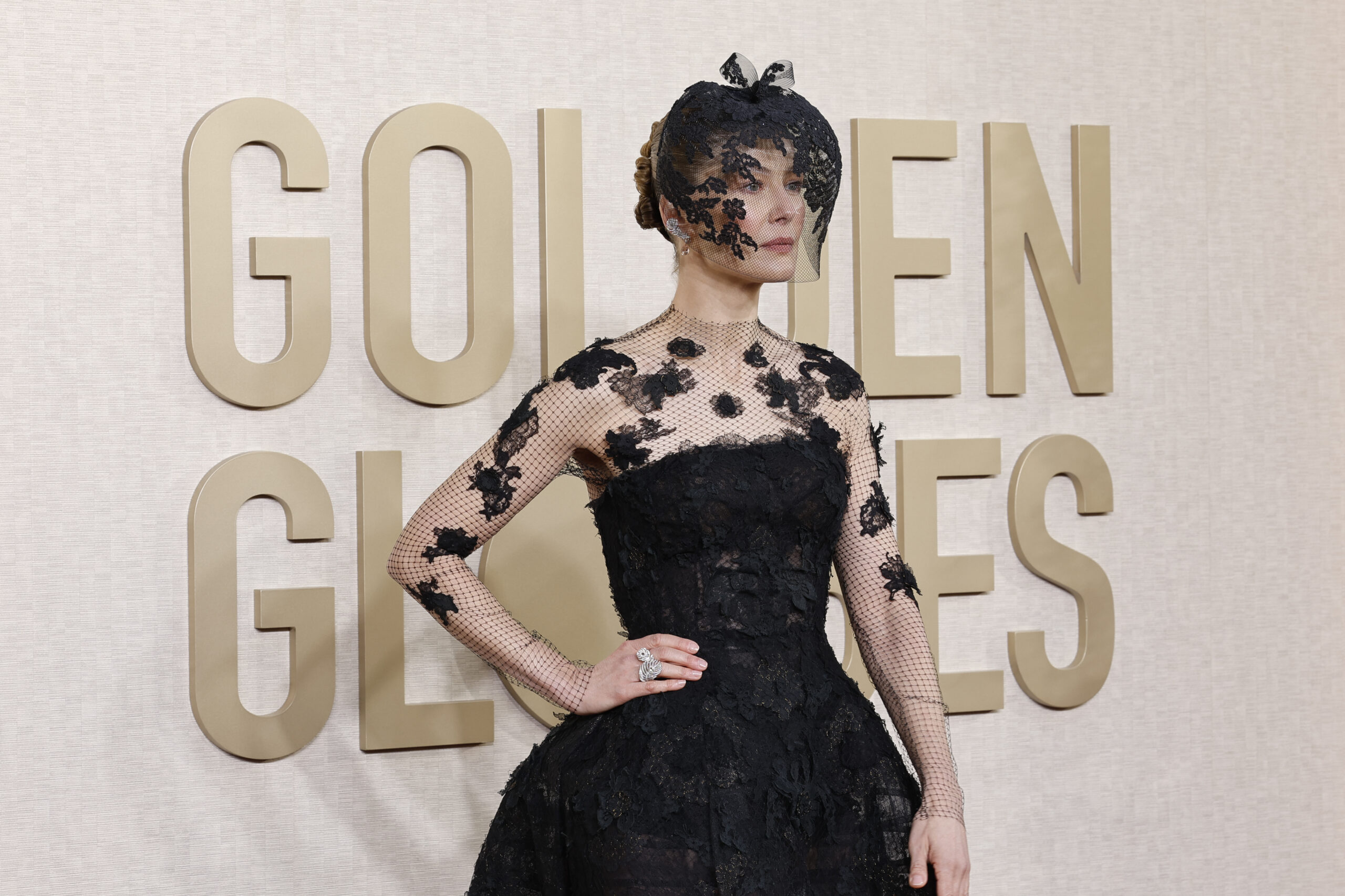 LOS ANGELES – JANUARY 7: Rosamund Pike at the 81st Golden Globe Awards held at the Beverly Hilton in Beverly Hills, California on Sunday, January 7, 2024.
