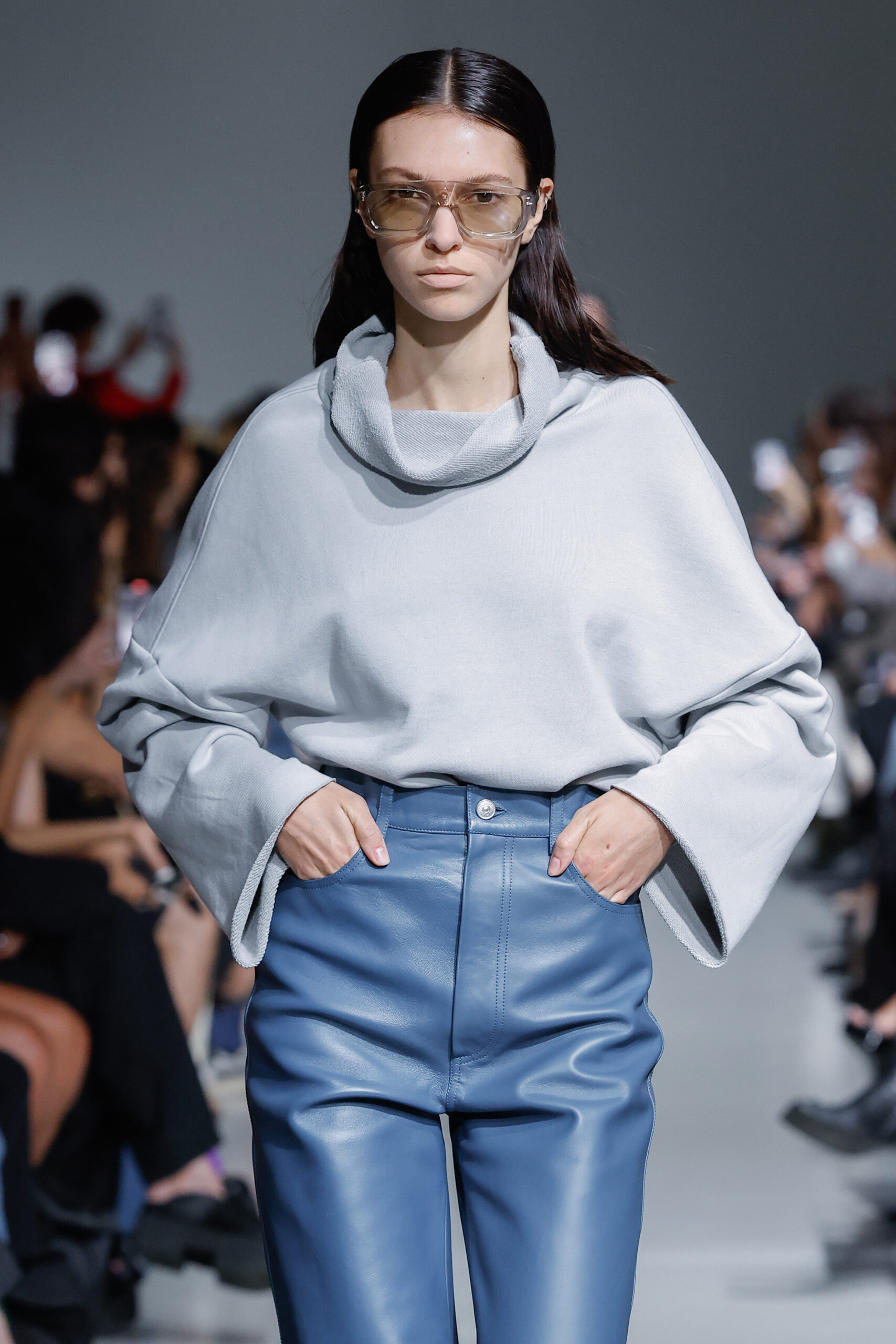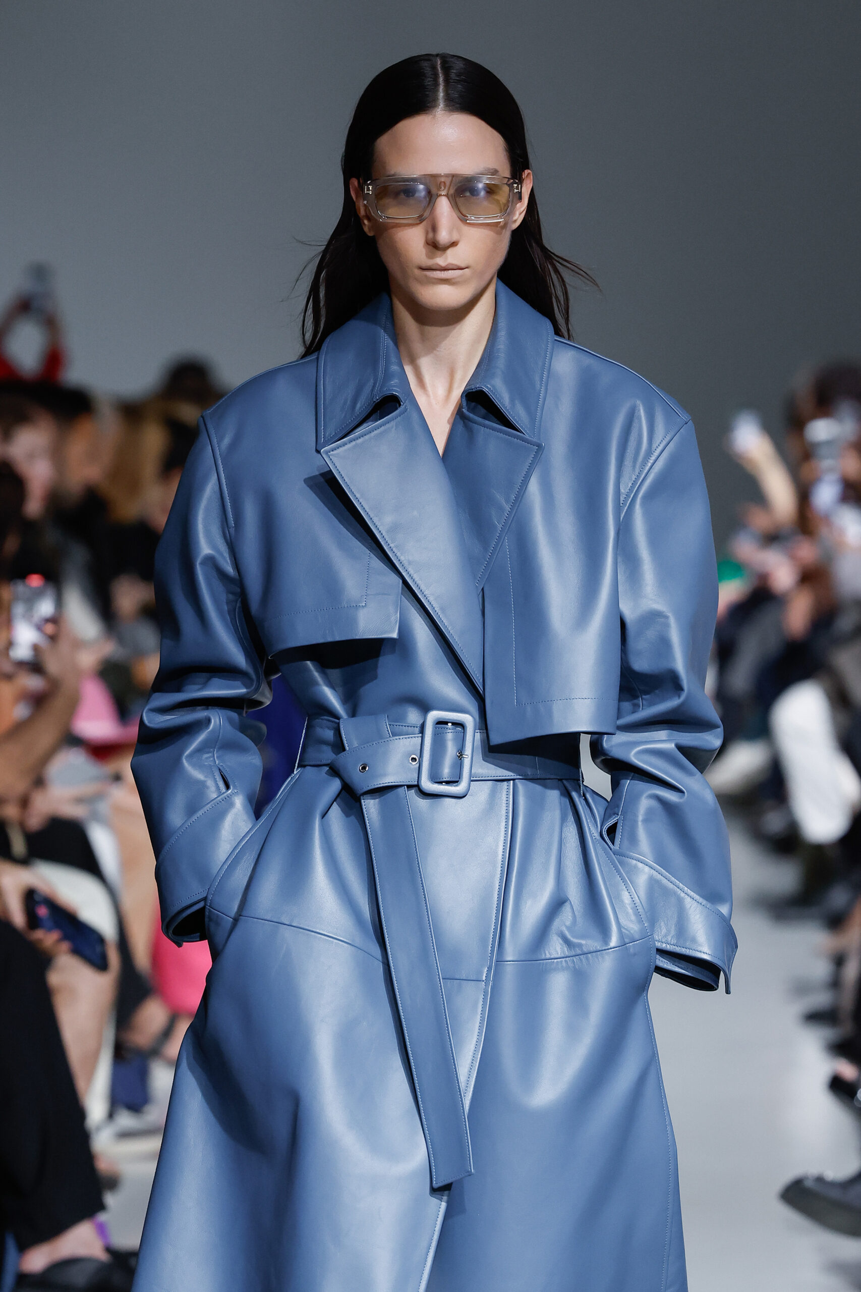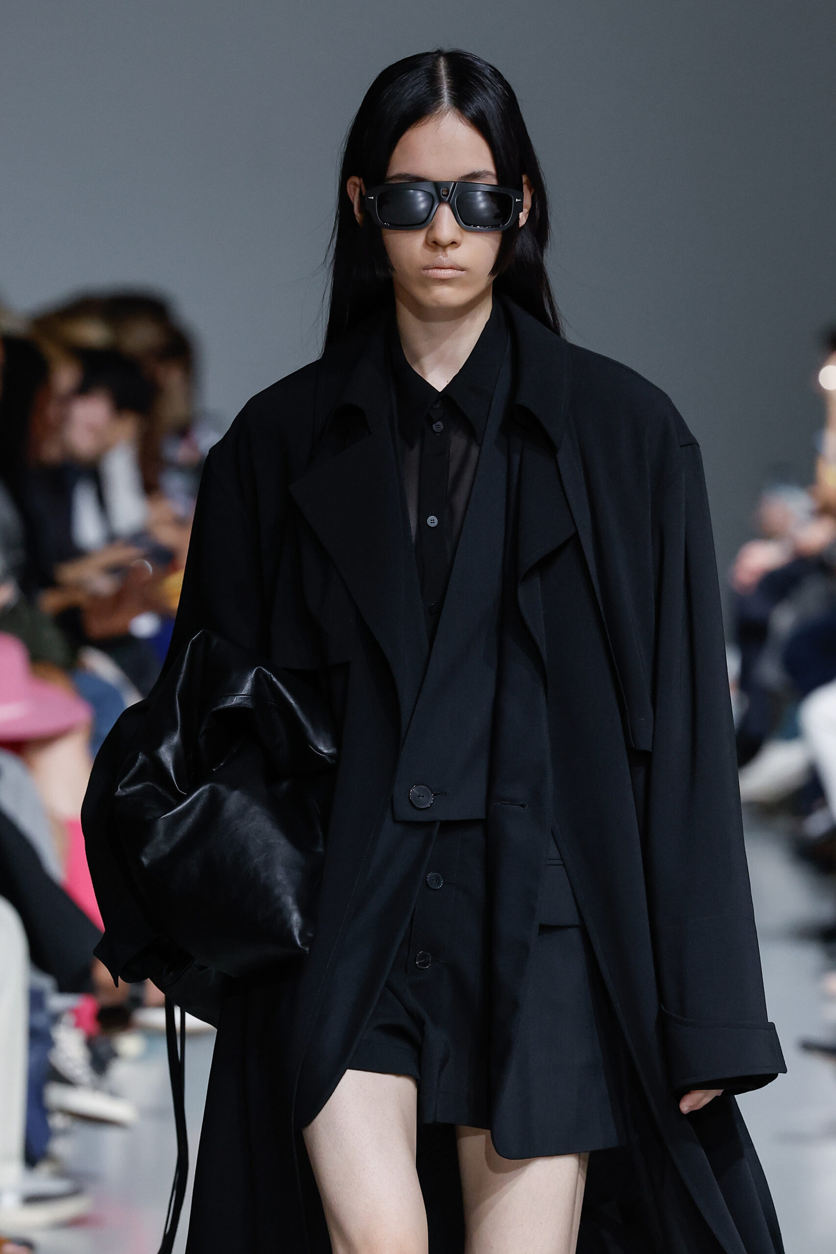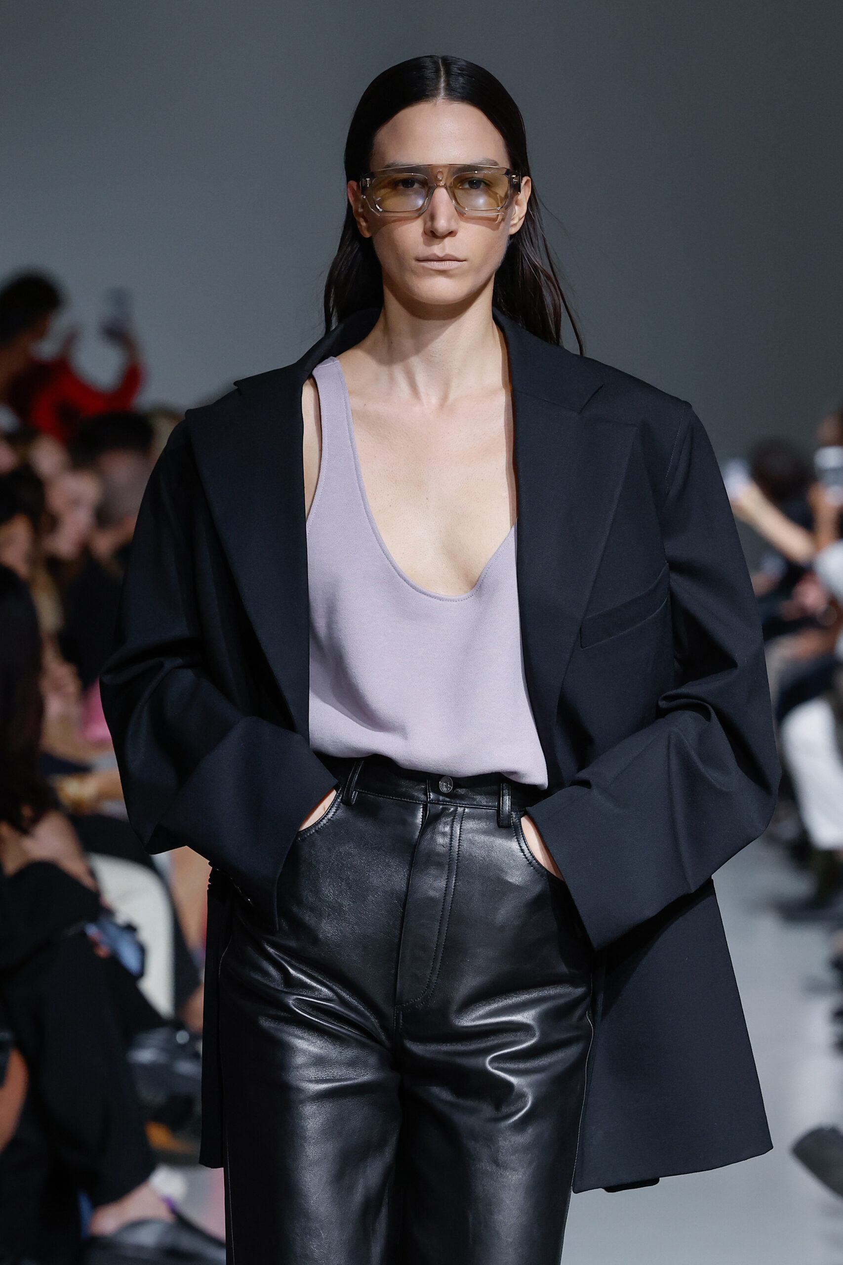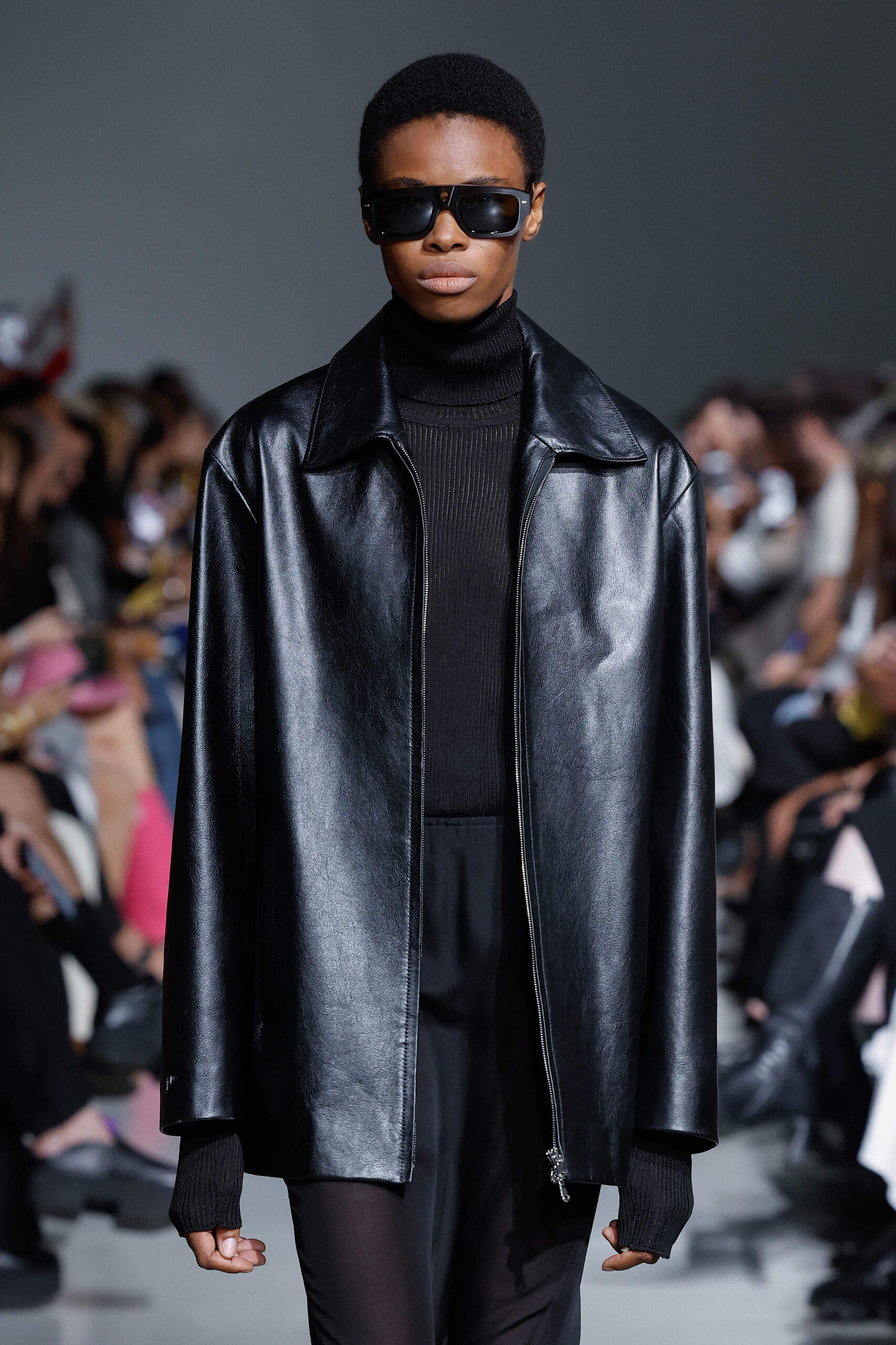 - Jeux de Matières : Un contraste entre la mousseline de soie transparente et le cuir opaque crée une dynamique intéressante au sein des silhouettes.