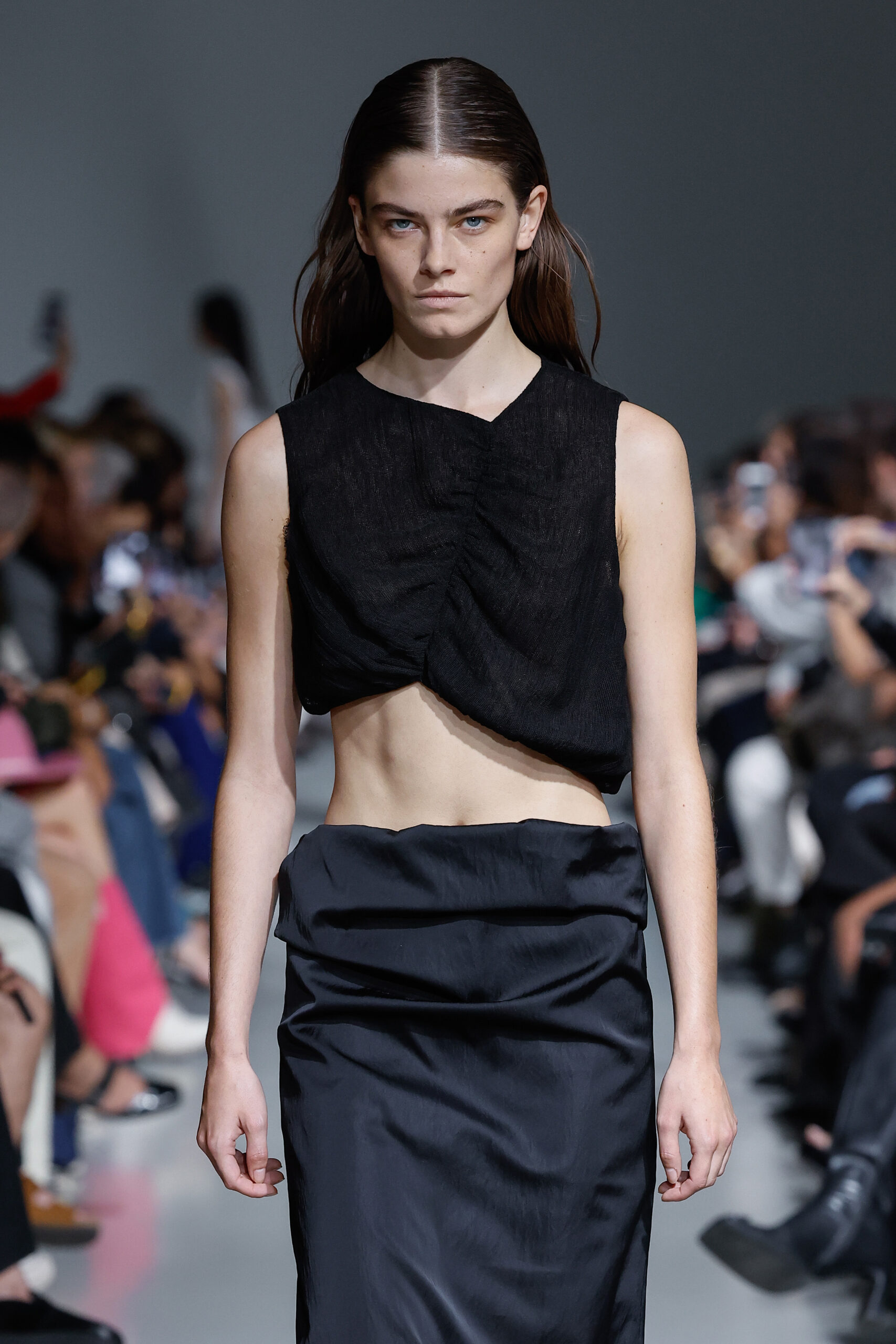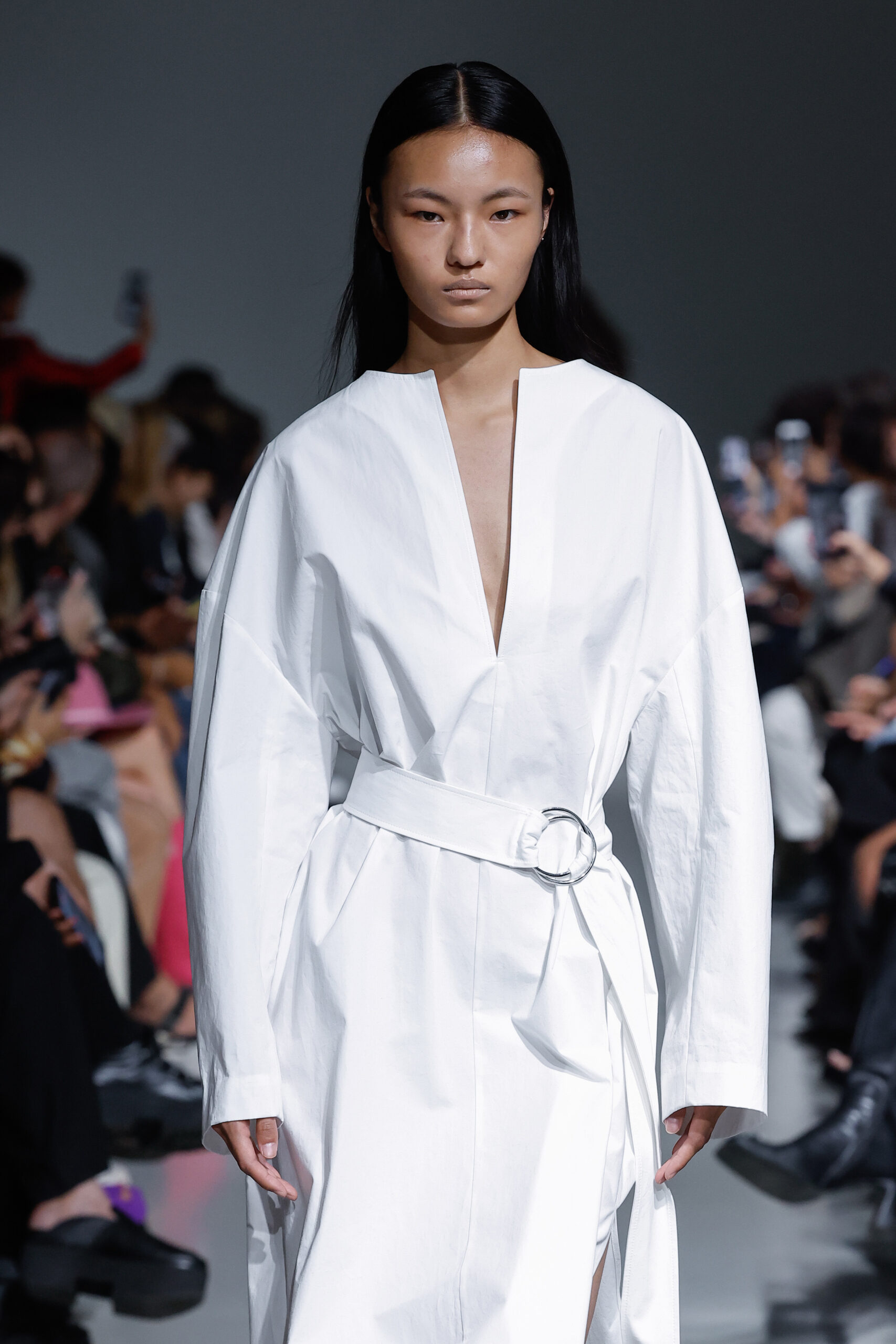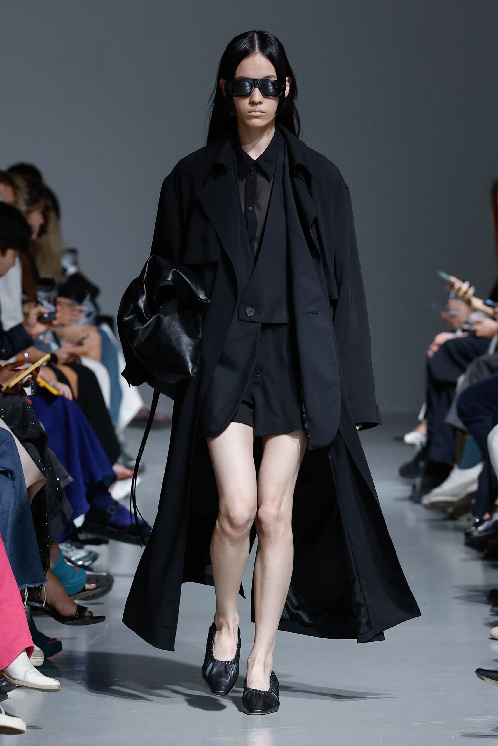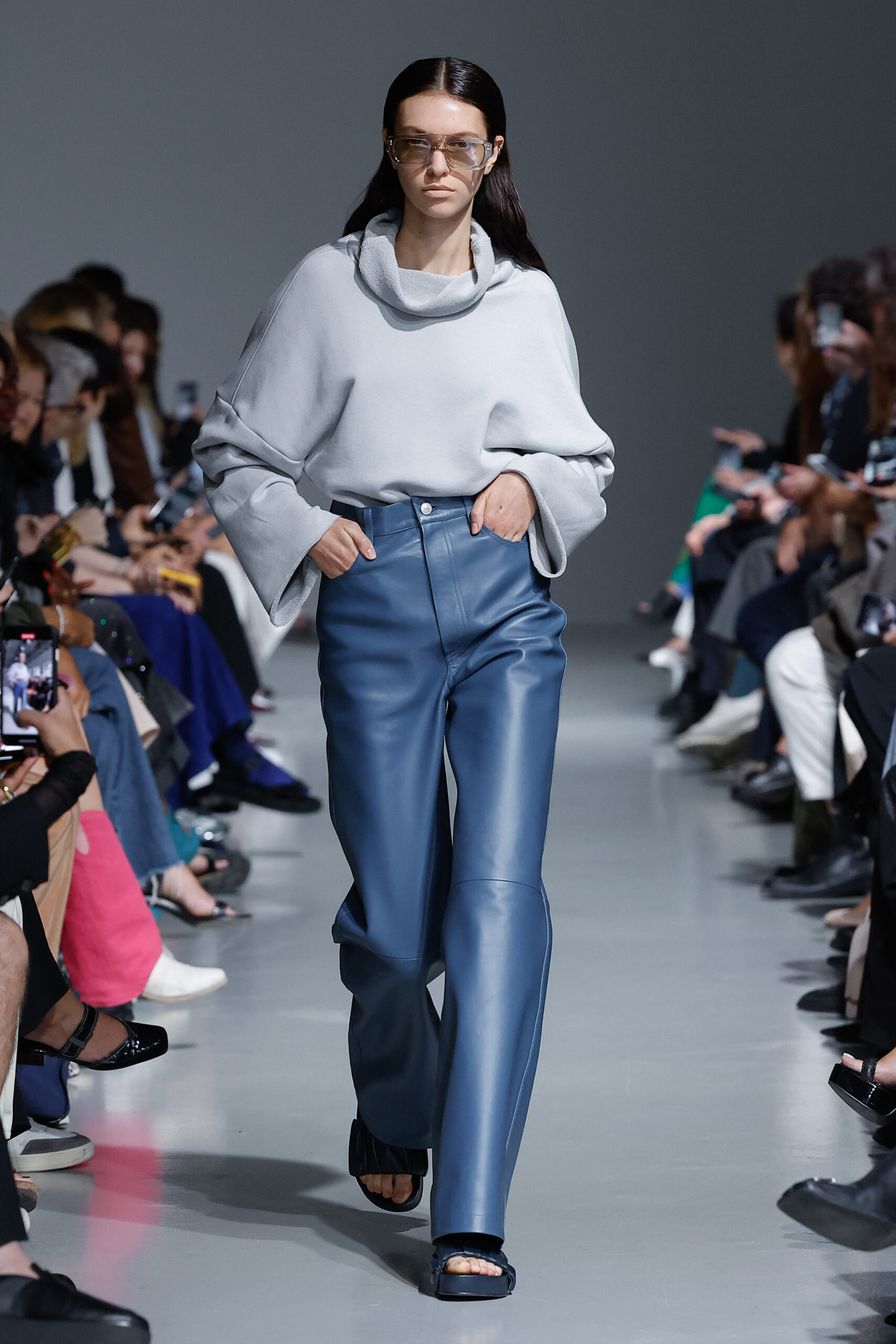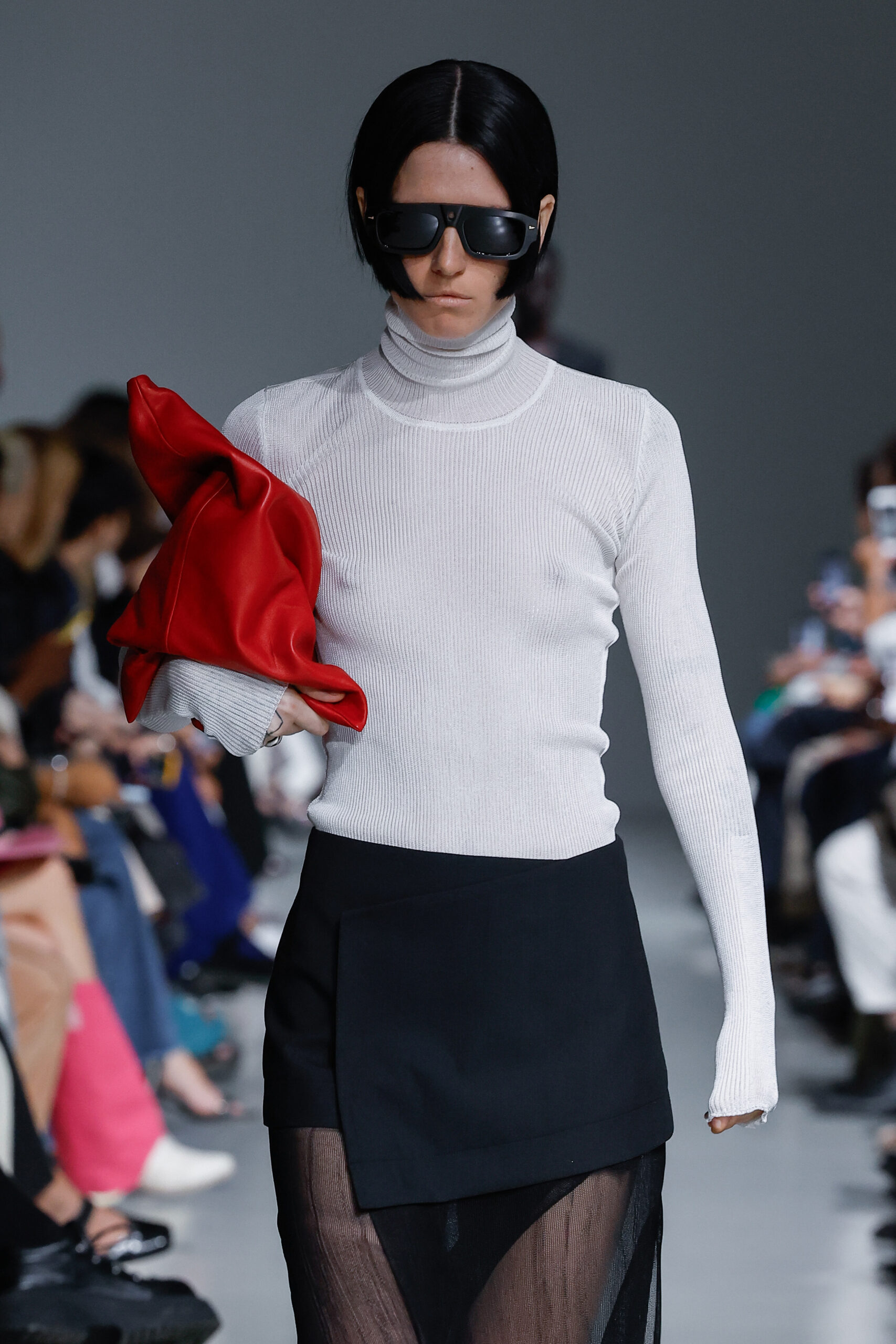 - Jeux de Matières : Un contraste entre la mousseline de soie transparente et le cuir opaque crée une dynamique intéressante au sein des silhouettes.