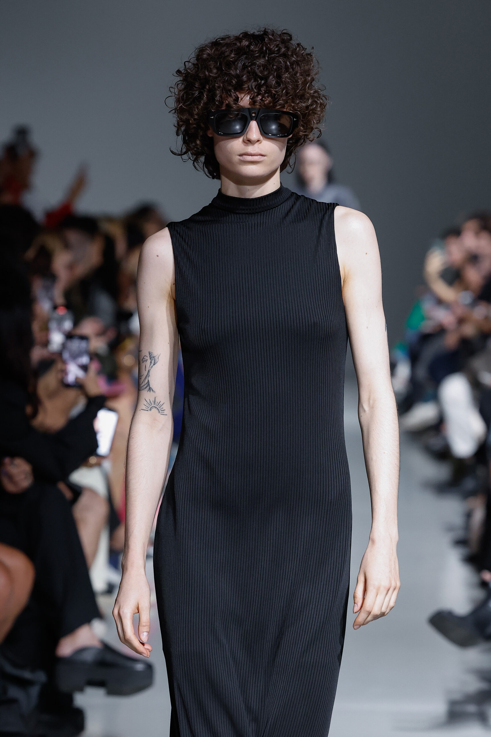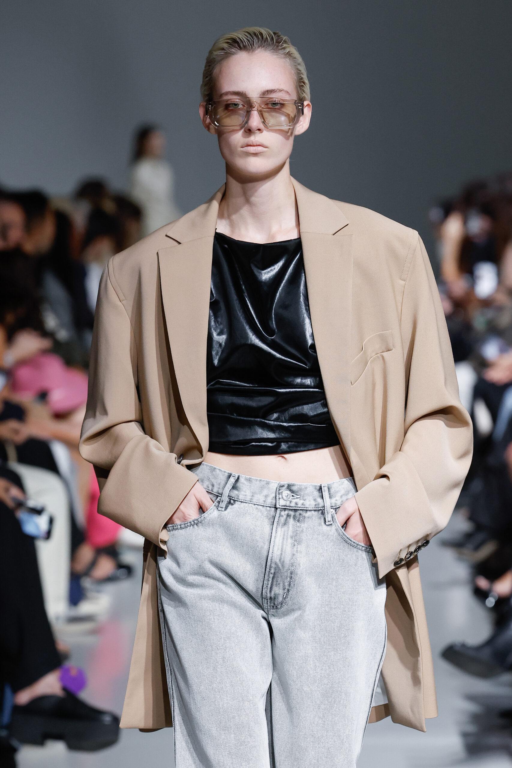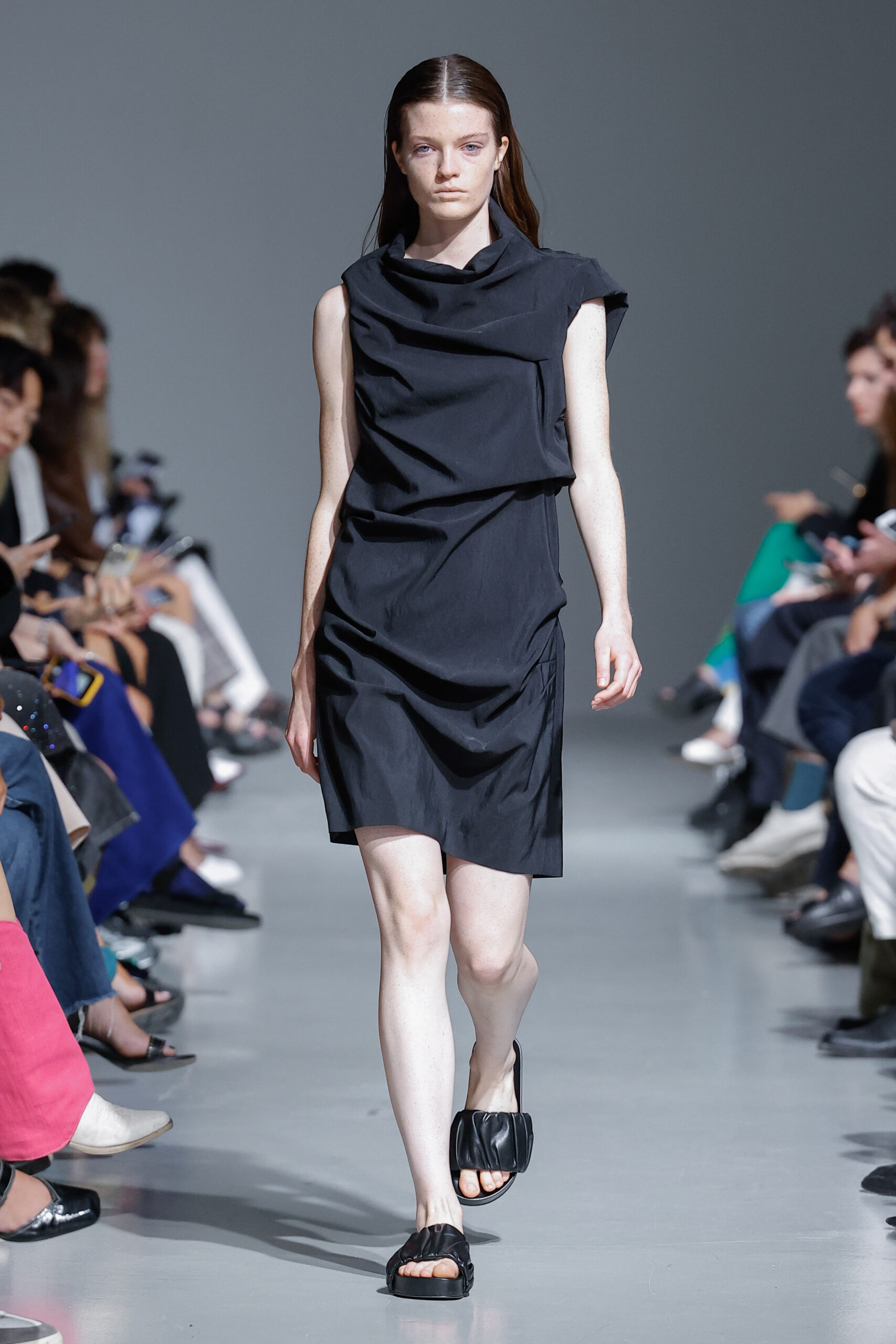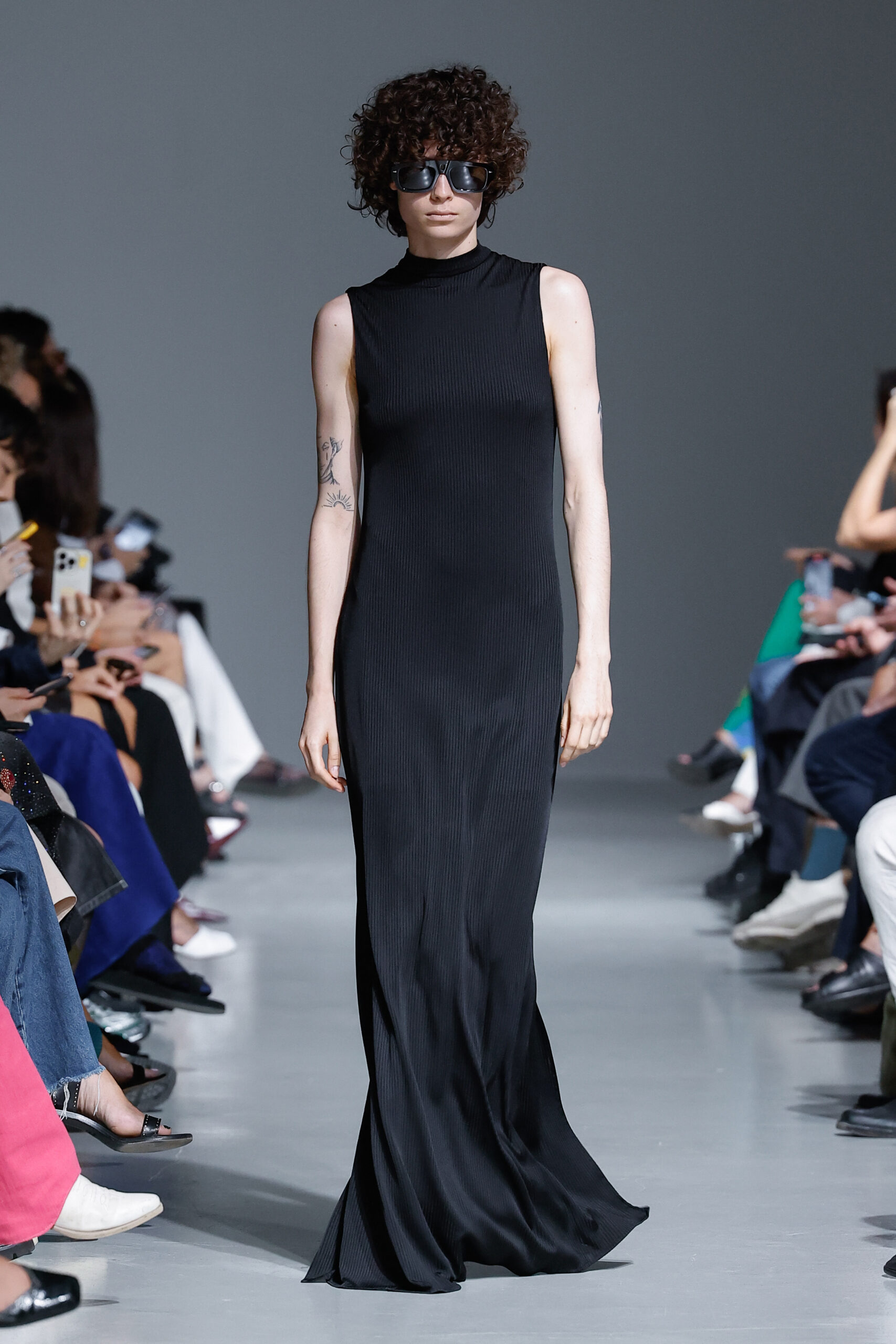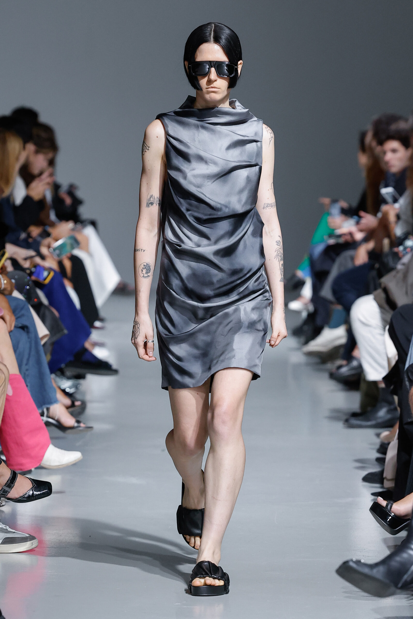 - Jeux de Matières : Un contraste entre la mousseline de soie transparente et le cuir opaque crée une dynamique intéressante au sein des silhouettes.